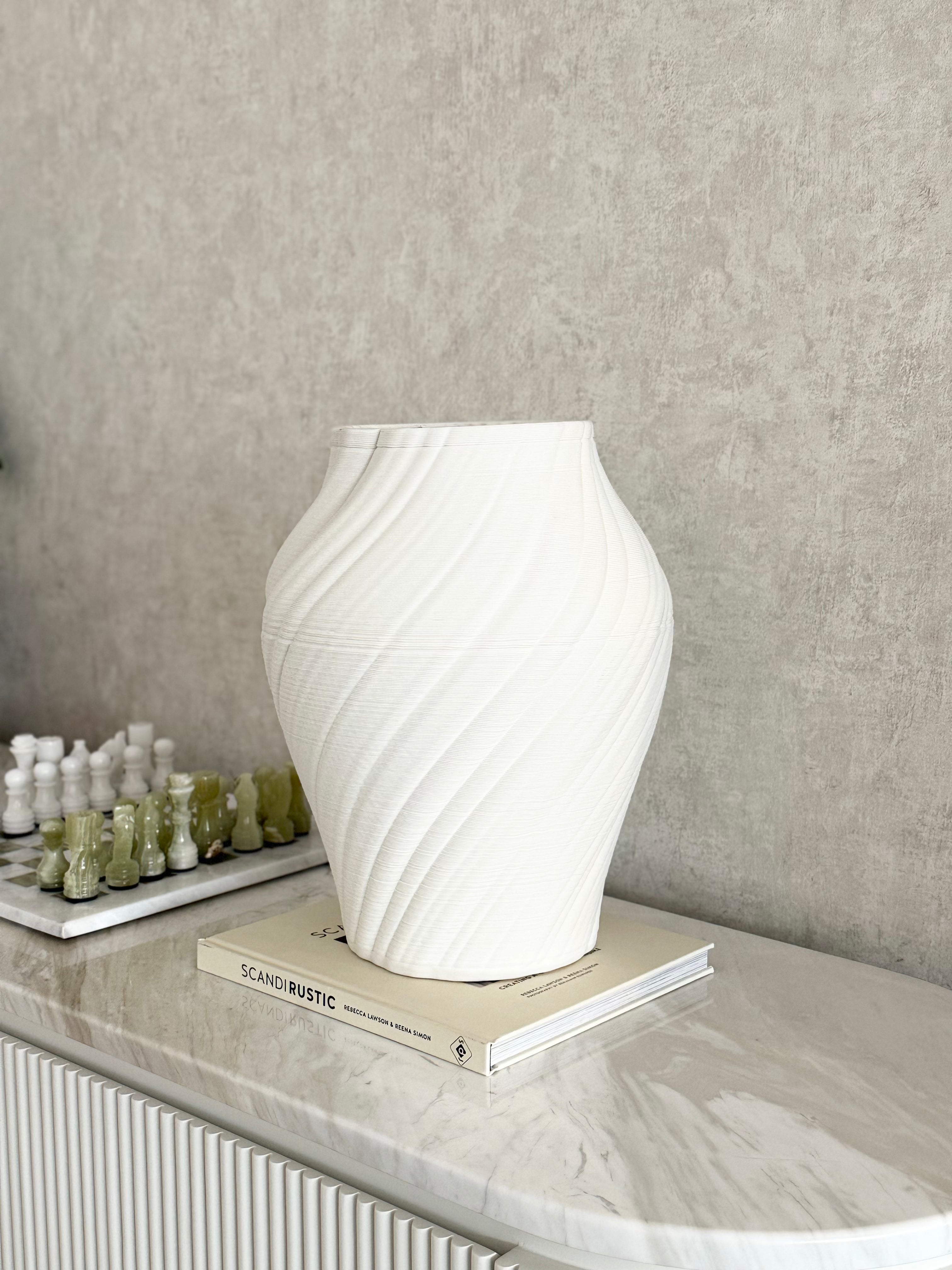 Crafted from the finest white ceramic, Andra vase exudes timeless luxury and refined elegance. Its pristine, textured surface and minimalist design make it a perfect statement piece, effortlessly complementing both luxury and classic interiors.