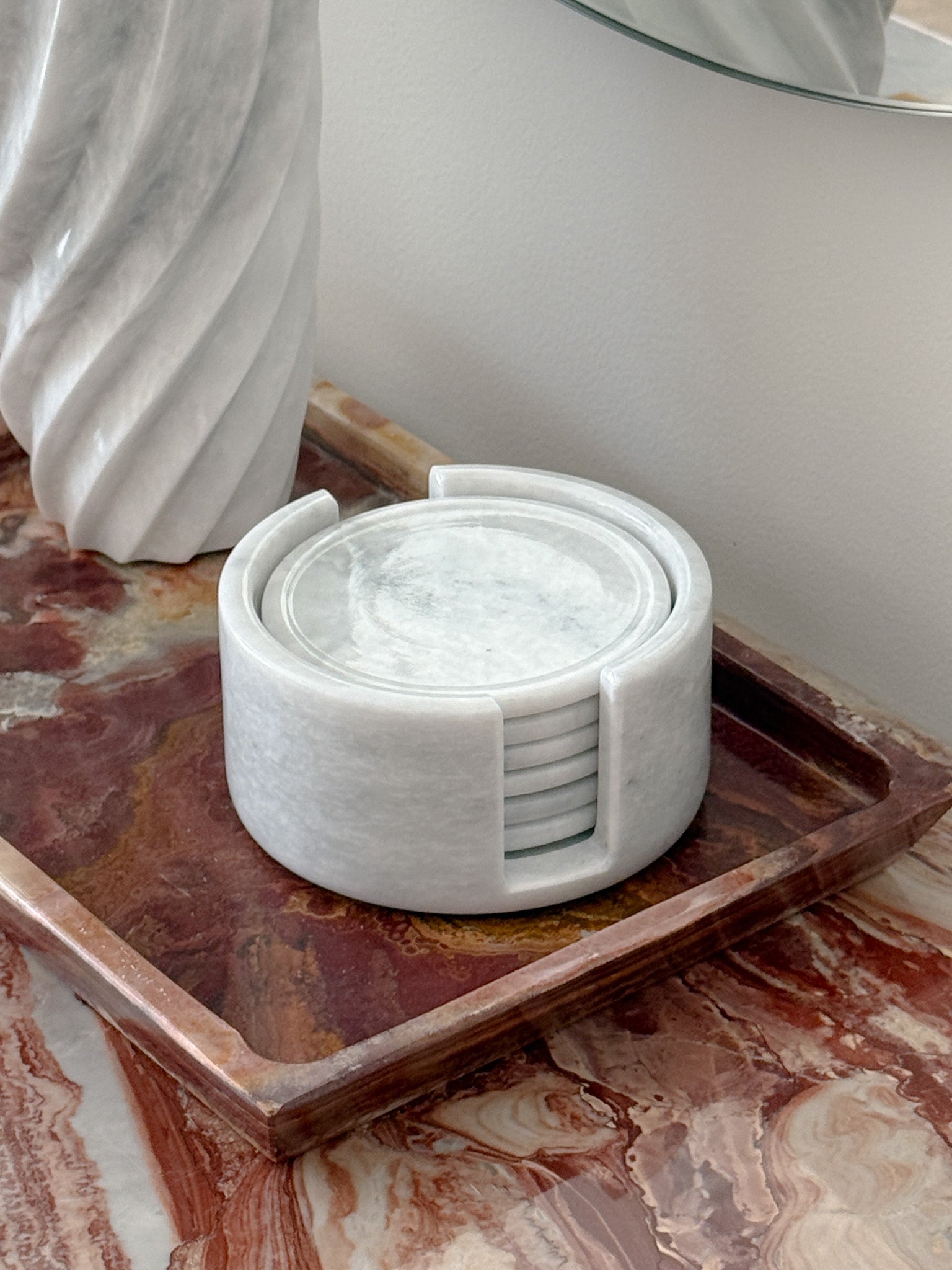 Angelica Round White Marble Coasters