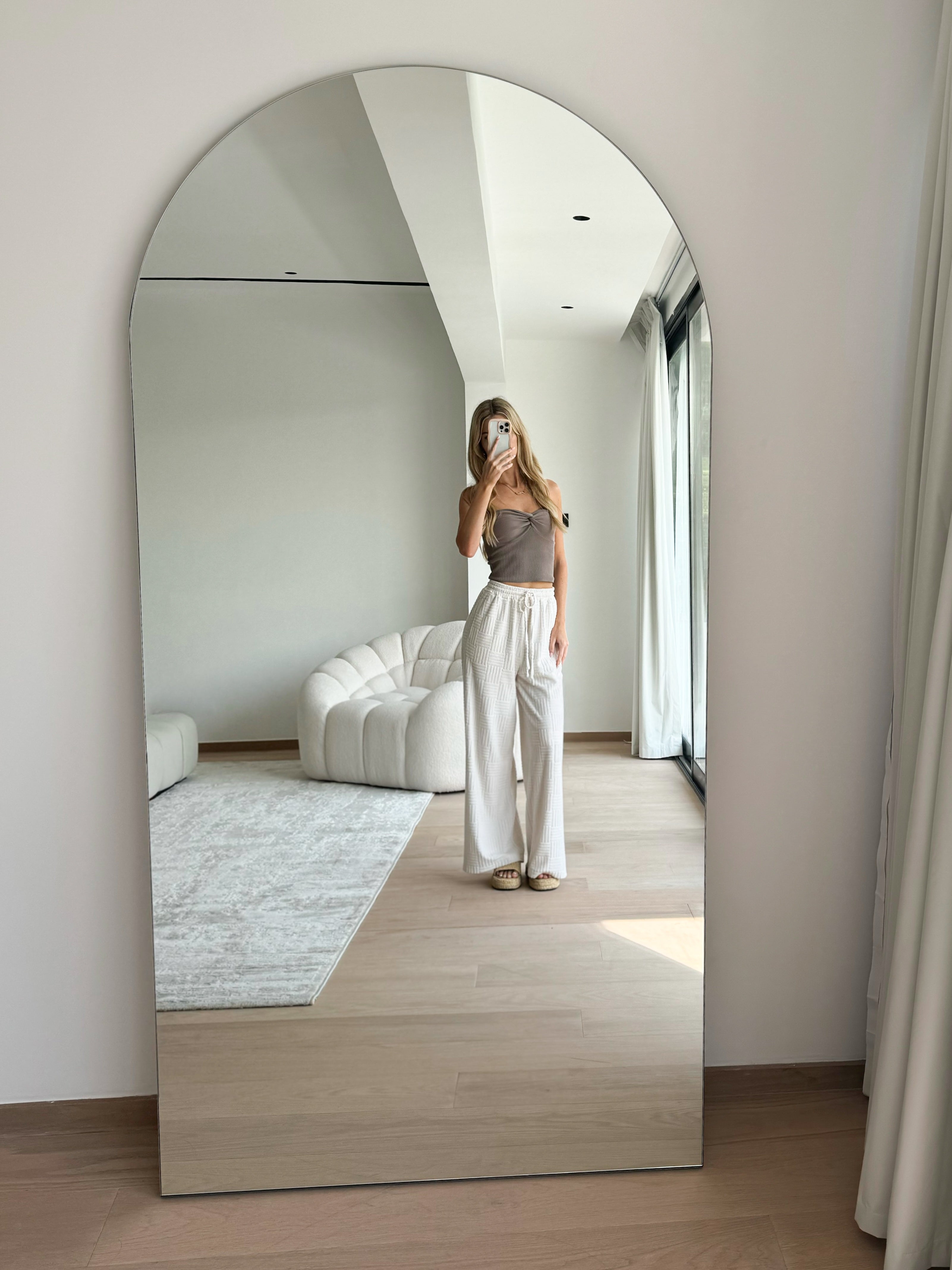 The Arabella Arch Mirror is a stunning blend of classic design and contemporary sophistication that adds a touch of sophistication and expand your room's visual appeal. It features a gracefully arched top that adds a touch of architectural interest to any room. Ideal for both practical use and decorative flair, its sleek frame, complements a variety of interior styles, from modern minimalism to traditional elegance.