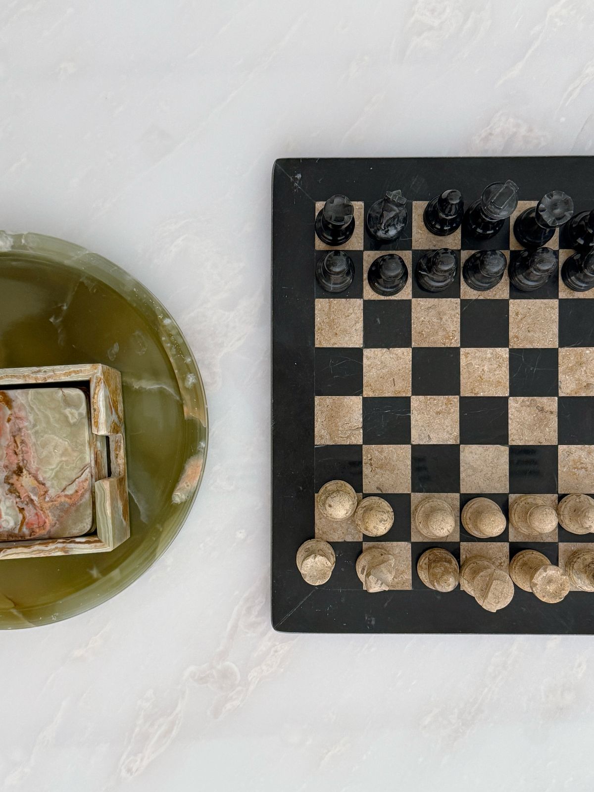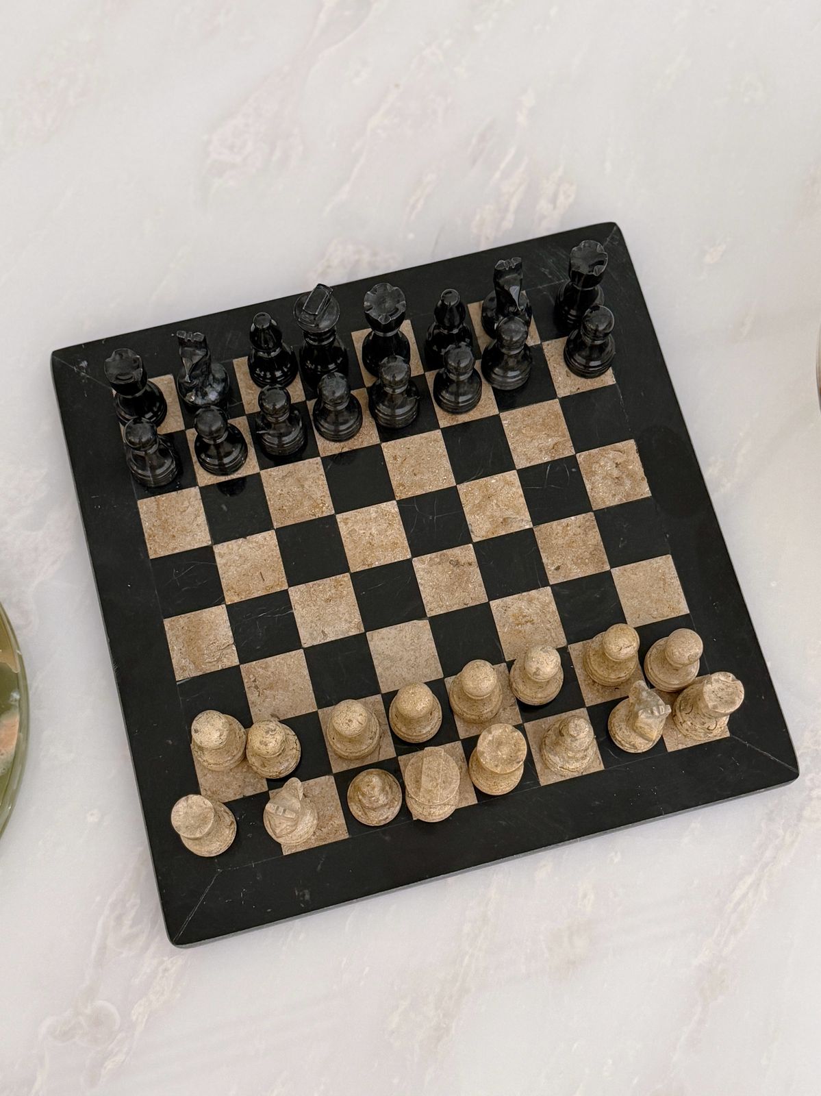 Enhance your home with our stunning black marble and coral antique chessboard. Meticulously crafted to combine the elegance of black marble and sandy hues of coral marble, making it a true work of art. This exquisite board not only offers a distinguished platform for chess enthusiasts but also serves as an opulent decor piece in any setting.