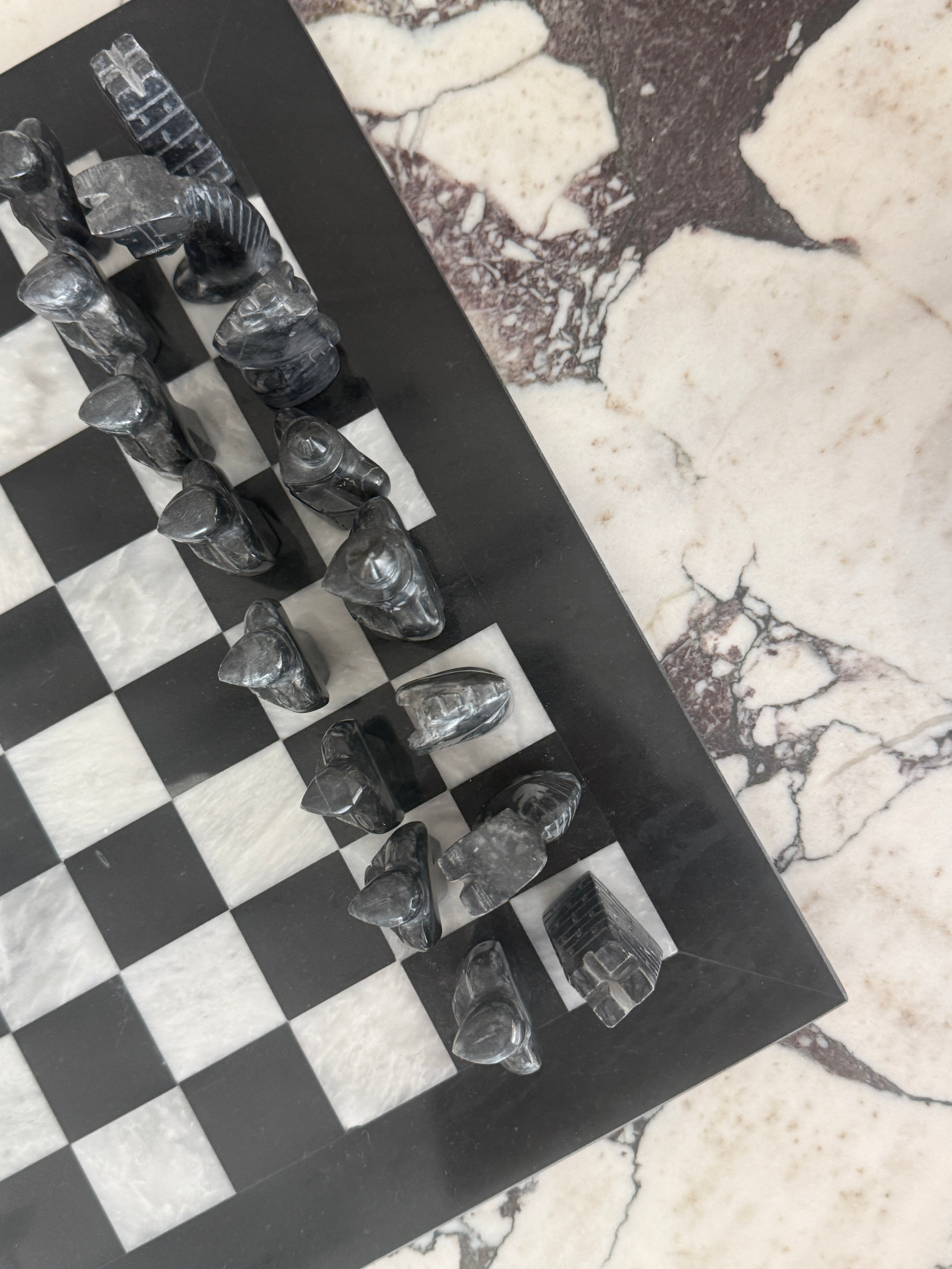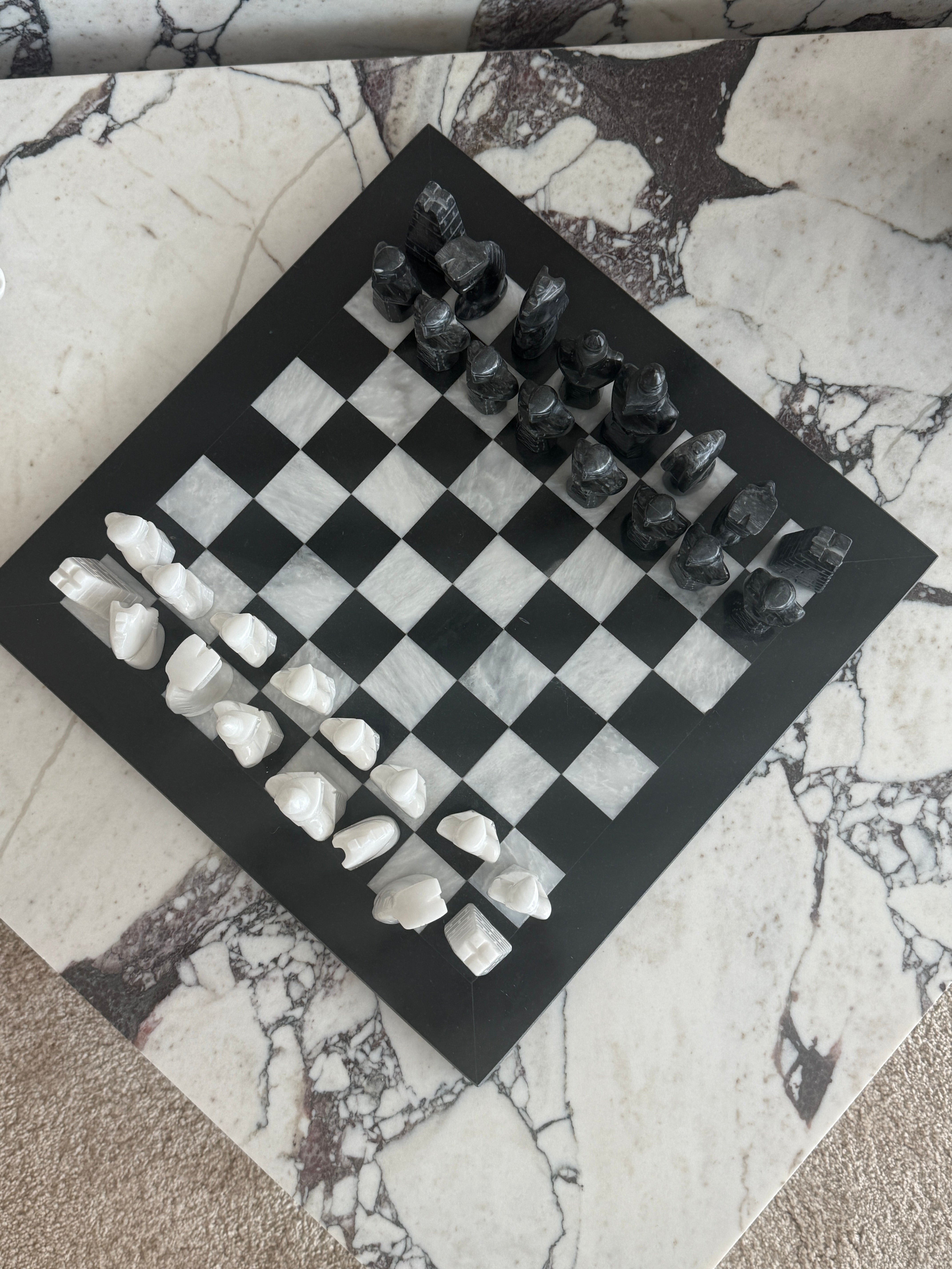 Experience the elegance and sophistication of a timeless classic with our balck & white marble chess board. Expertly crafted from marble, this exquisite chess board is a stunning addition to any home, combining functionality with unparalleled beauty. Adding depth and contrast with its juxtaposing tones. Perfect for chess enthusiasts and collectors alike, this board offers a luxurious playing experience.