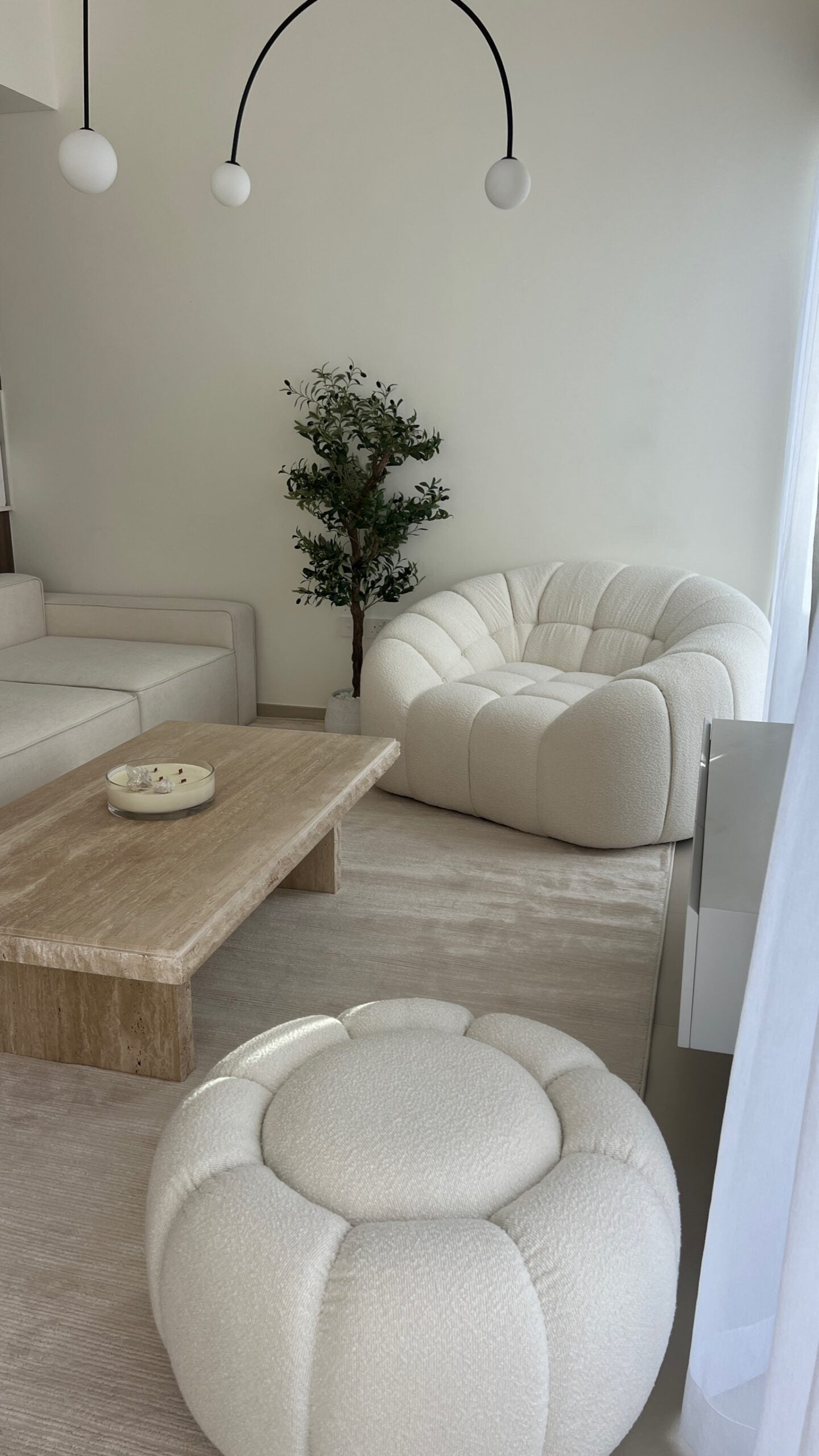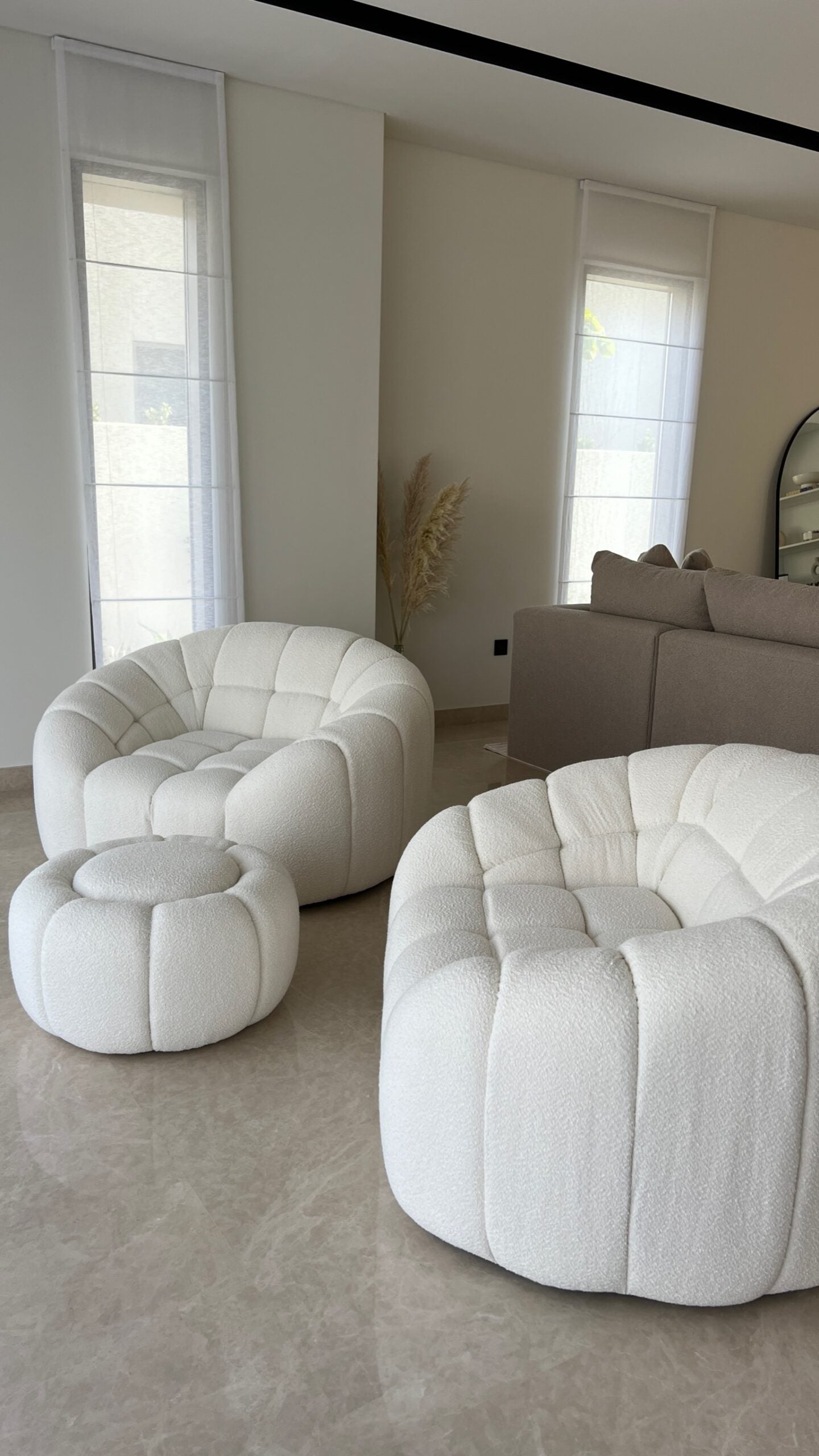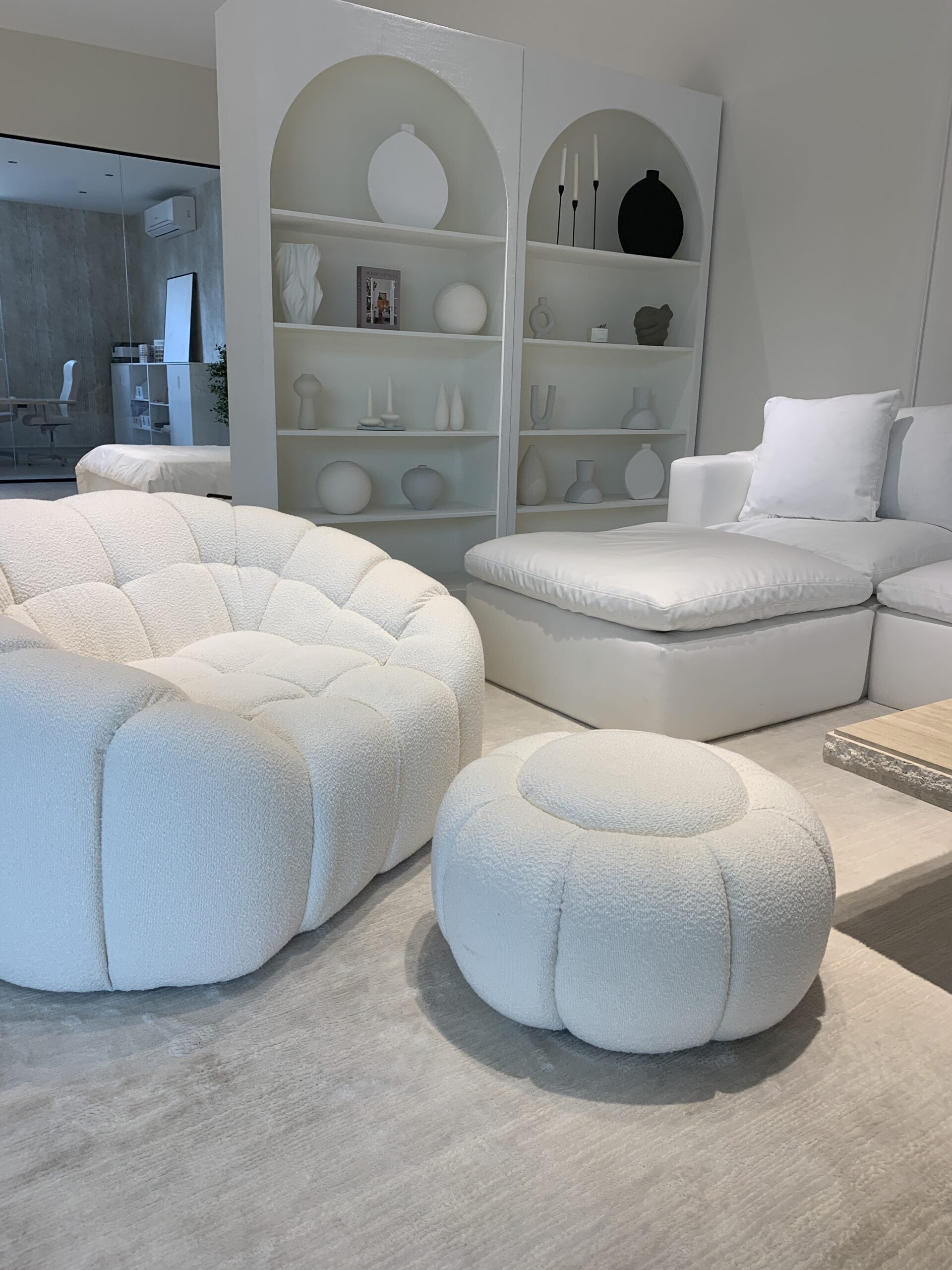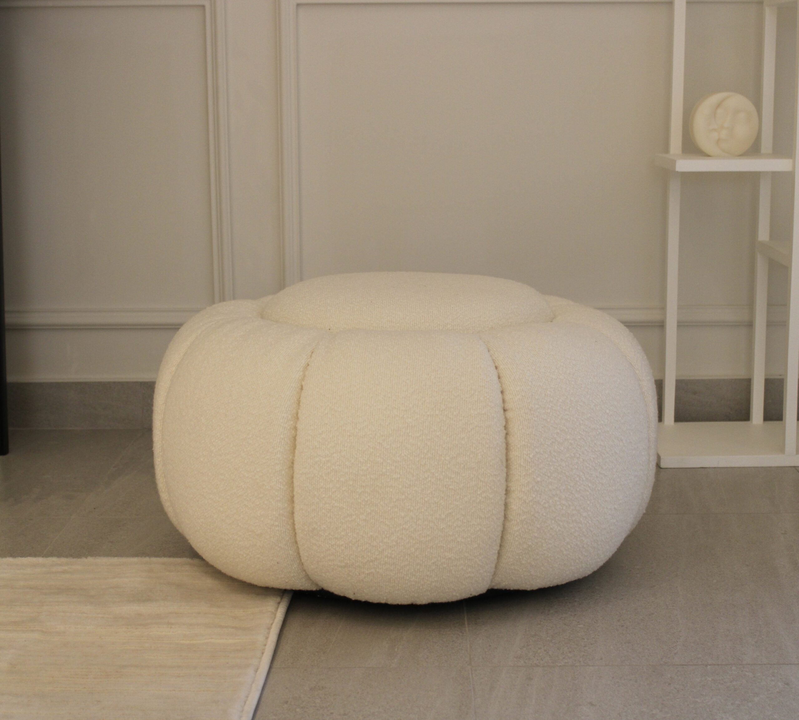 Carmen boucle footstool made from the cosiest bouclé fabric and available cream to match our gorgeous Ezme cloud chair