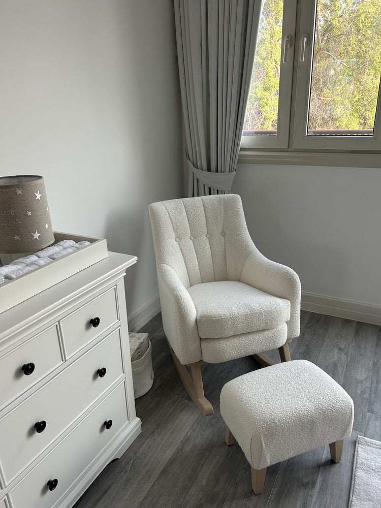 This beautiful boucle Chloe Rocking Chair and Footstool is designed for ultimate comfort and style. We know the importance of furniture which is practical in use and fits the aesthetic of your home.