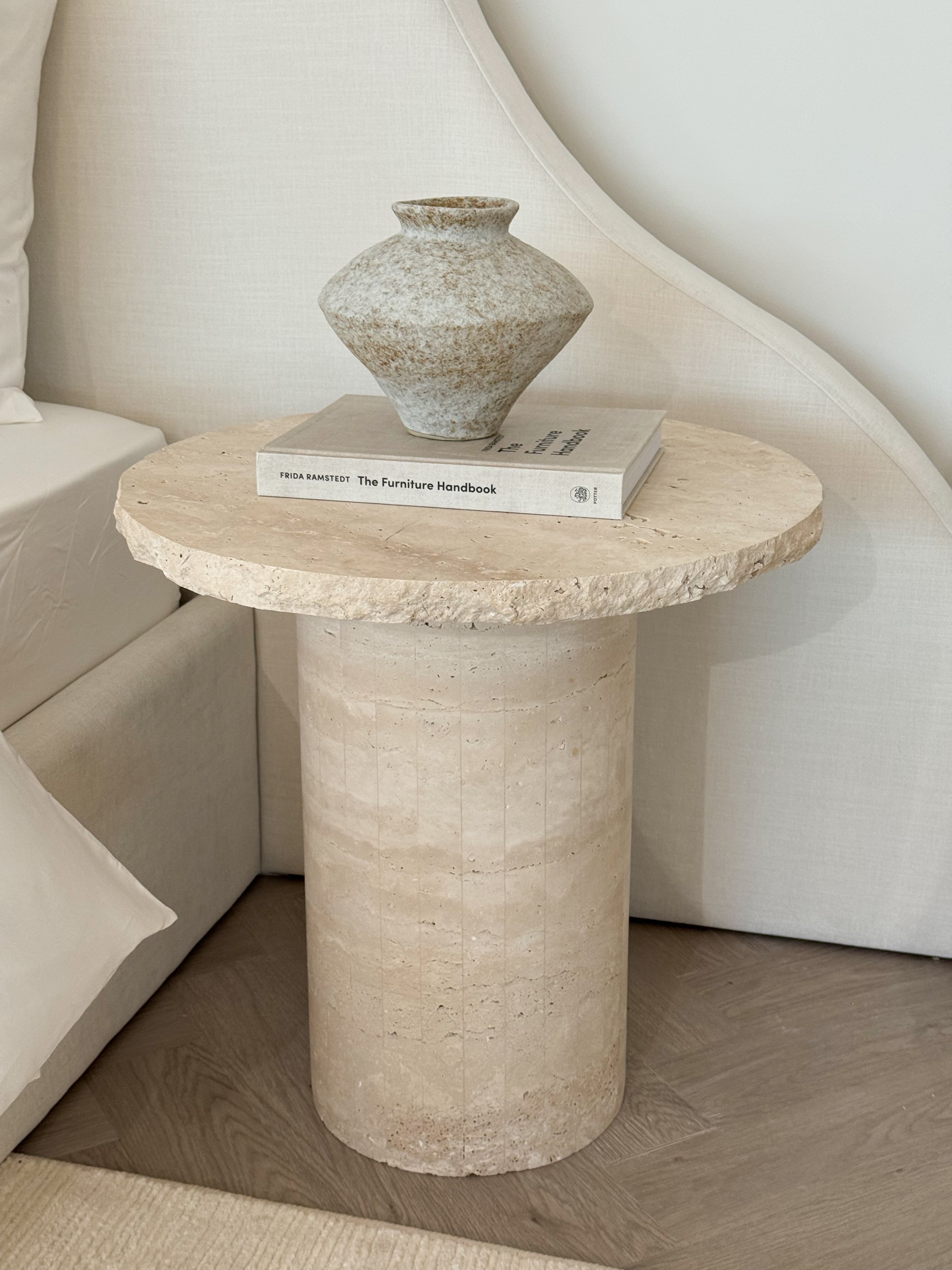 Made from travertine, with textured edges, our Coral Round Side Table will complement any decor.
