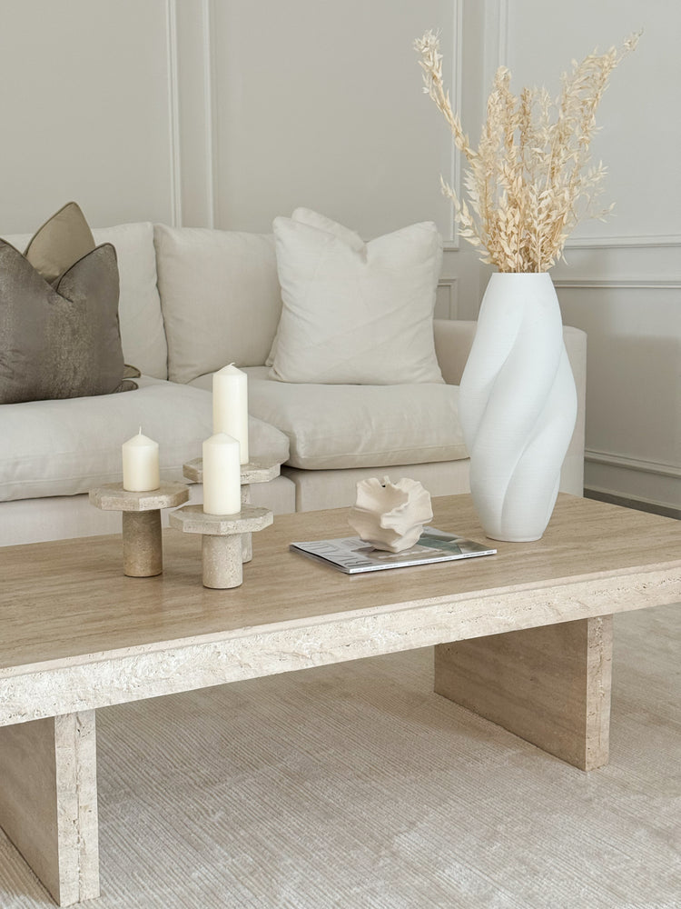 Our rustic masterpiece the Coral Travertine Rectangle Coffee Table. This hand carved travertine table is the perfect choice for any modern home to add a touch of luxury and finesse.