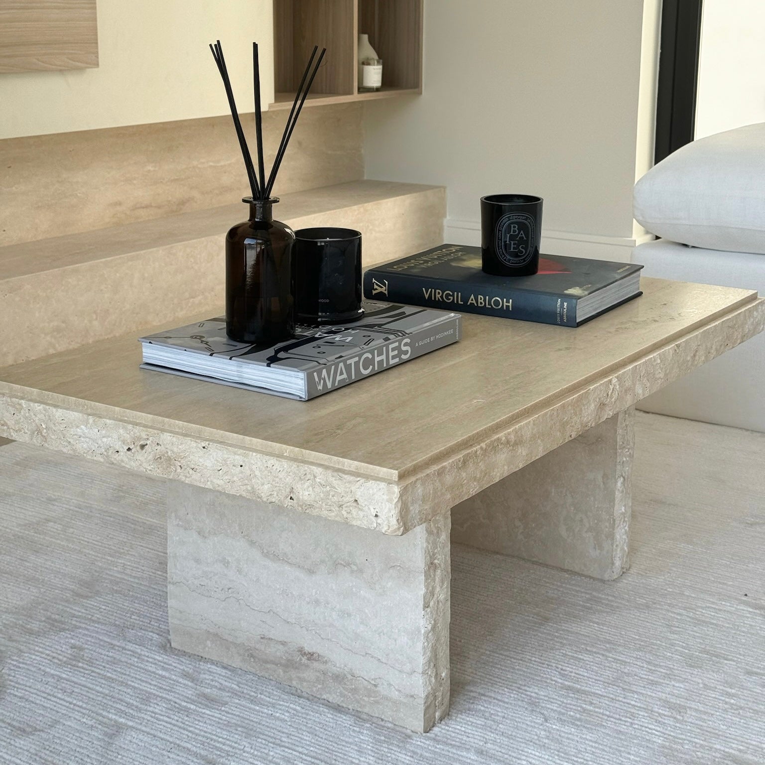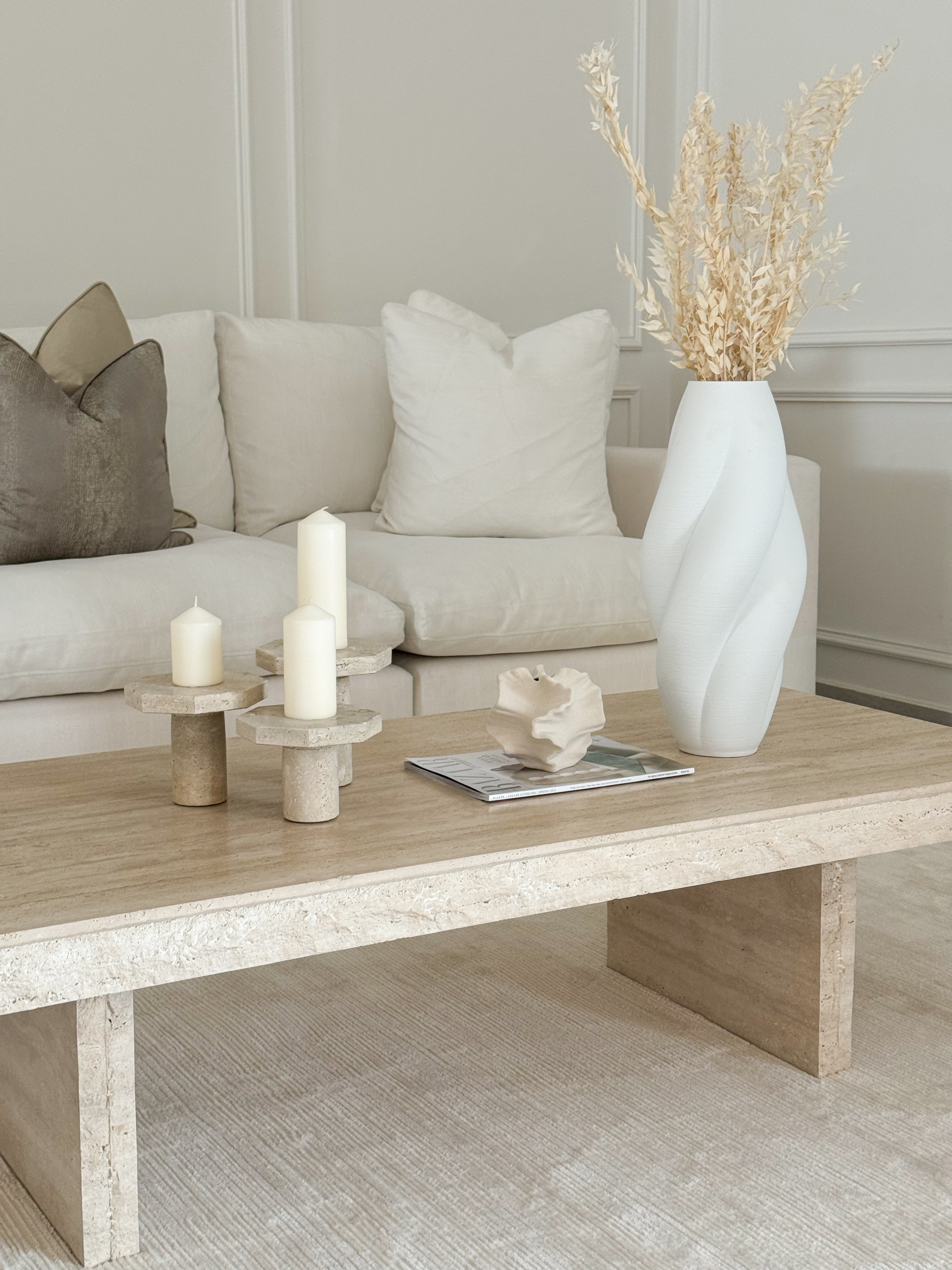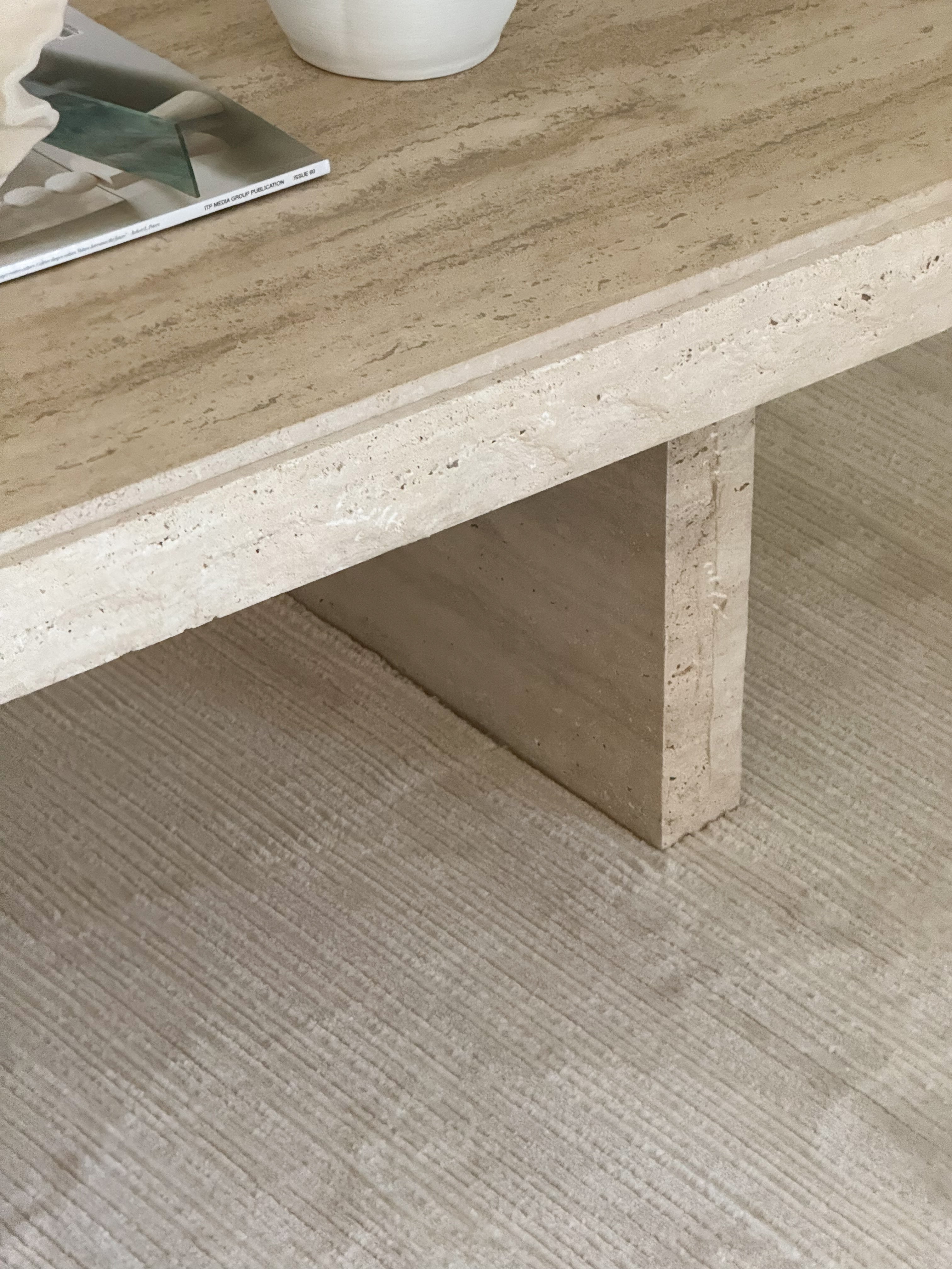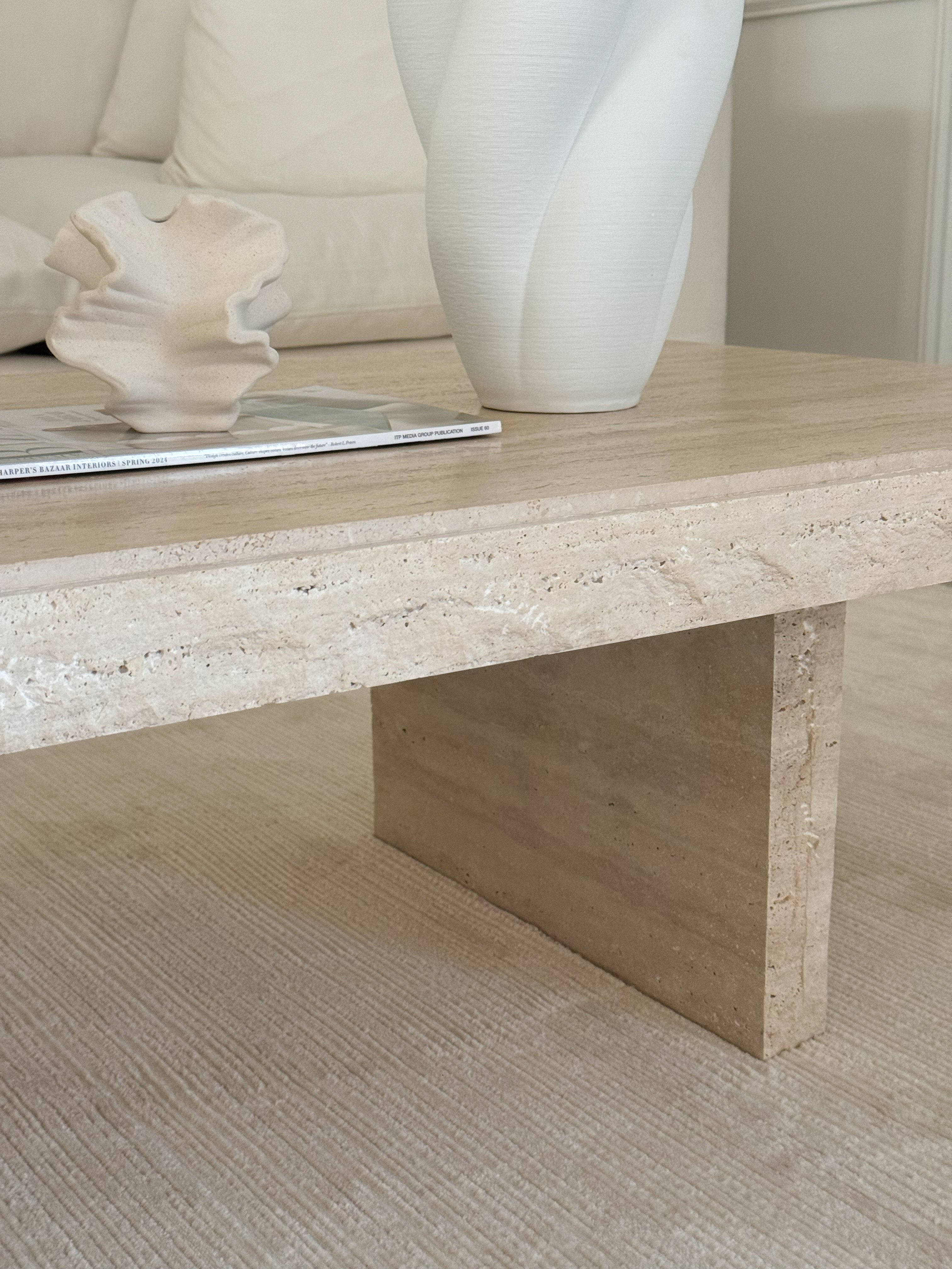 Our rustic masterpiece the Coral Travertine Rectangle Coffee Table. This hand carved travertine table is the perfect choice for any modern home to add a touch of luxury and finesse.