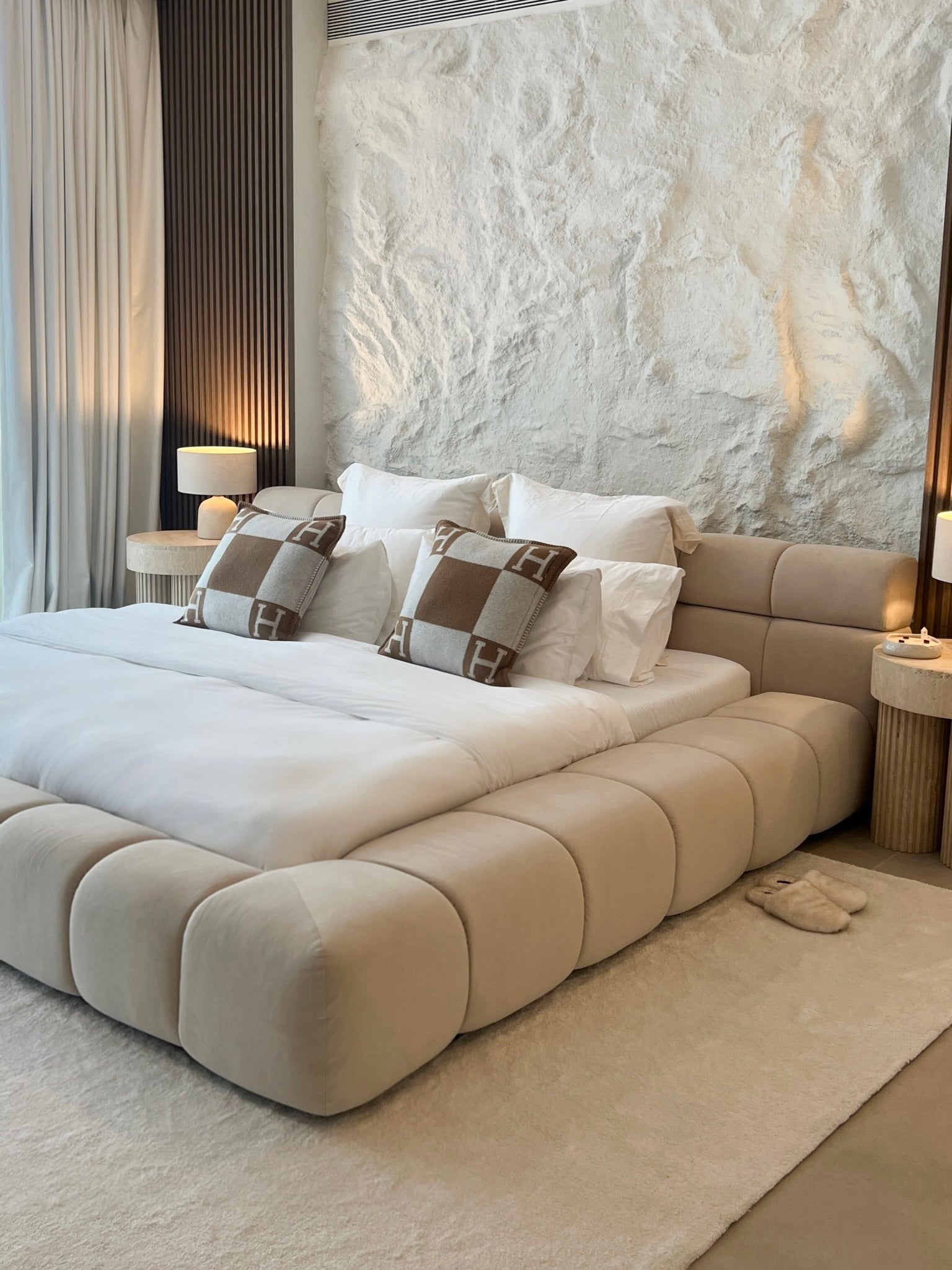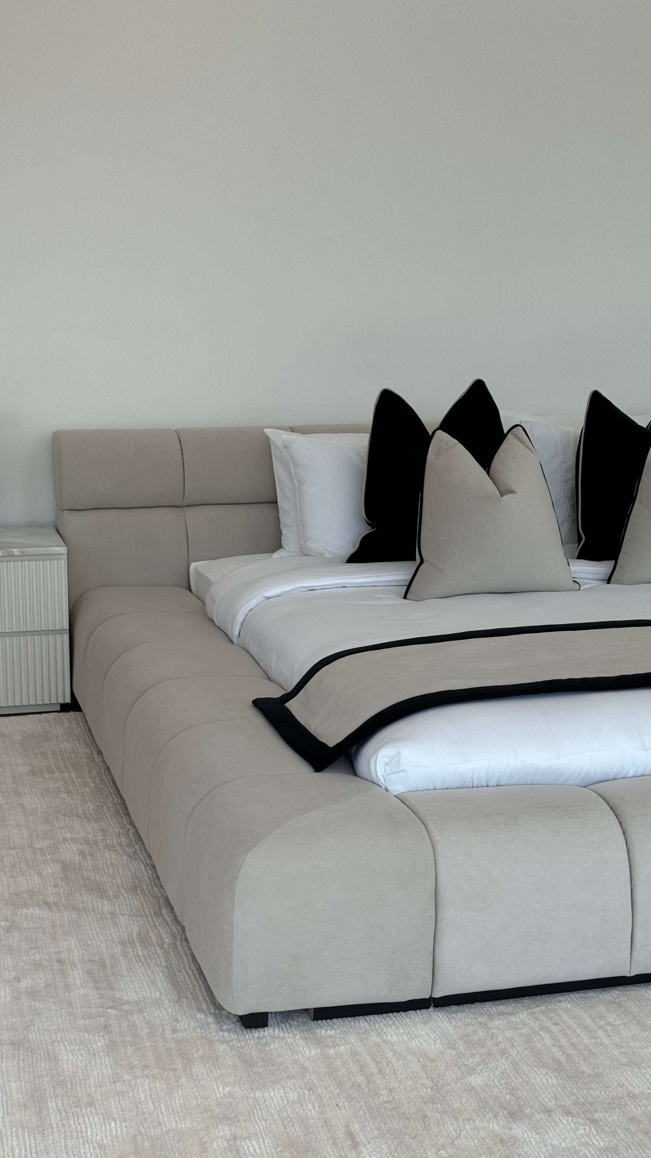 This signature Devon bed is also available in cream in just the same perfection. The same suede that looks just as good in a lighter minimal shade of cream. The Devon Bed is your missing formula to create the ultimate bedroom of dreams.