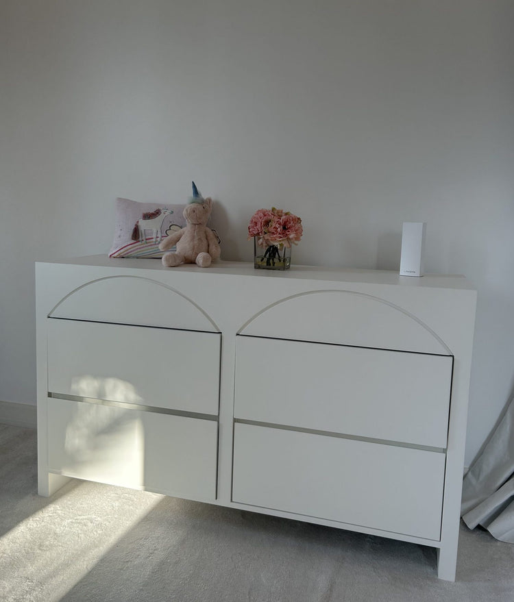 This beautiful chest of draws features a stunning yet simple arch detail design. This design is perfect for adding character to a children's room, while being simple enough to fit into a minimal aesthetic home.