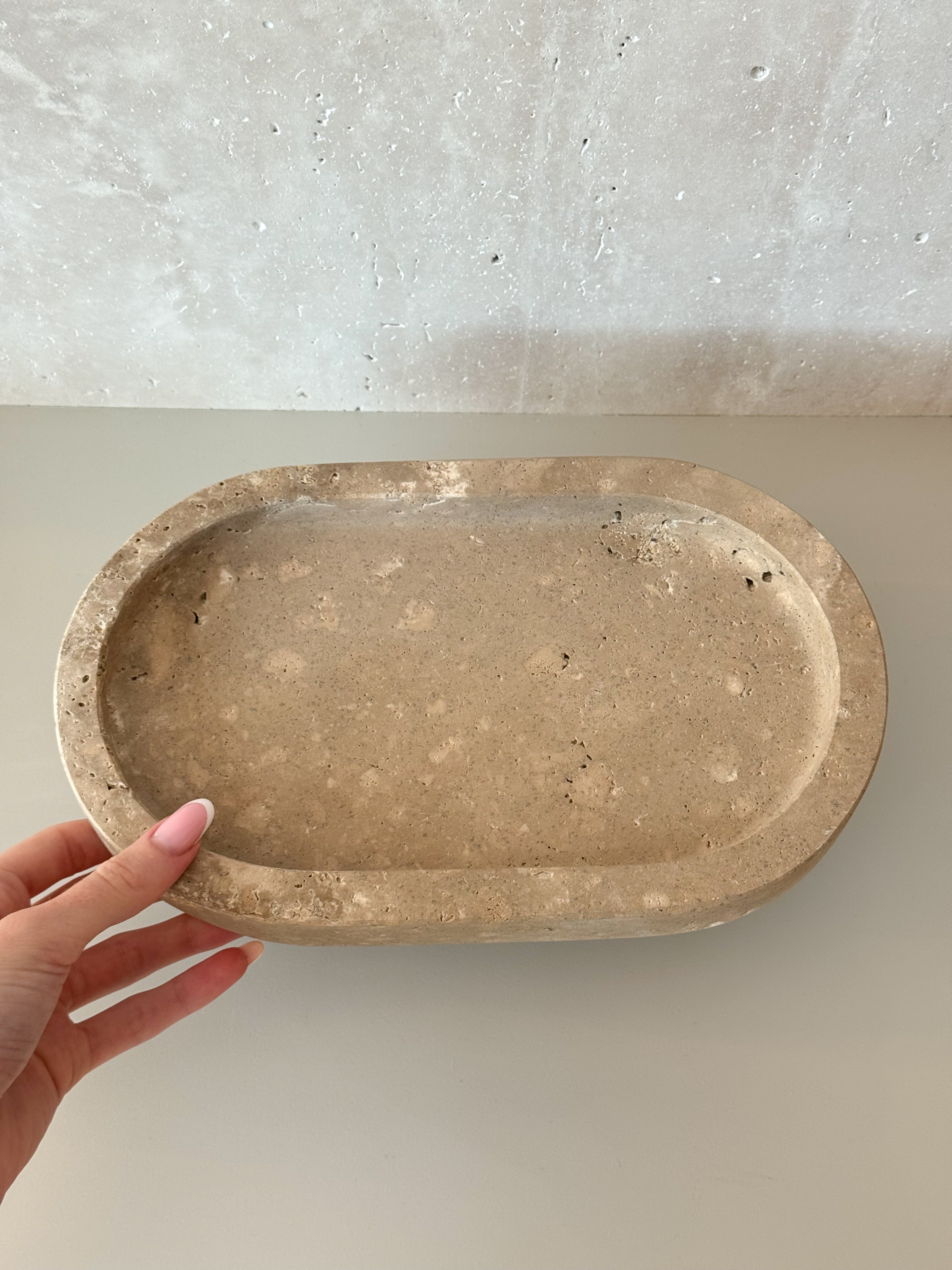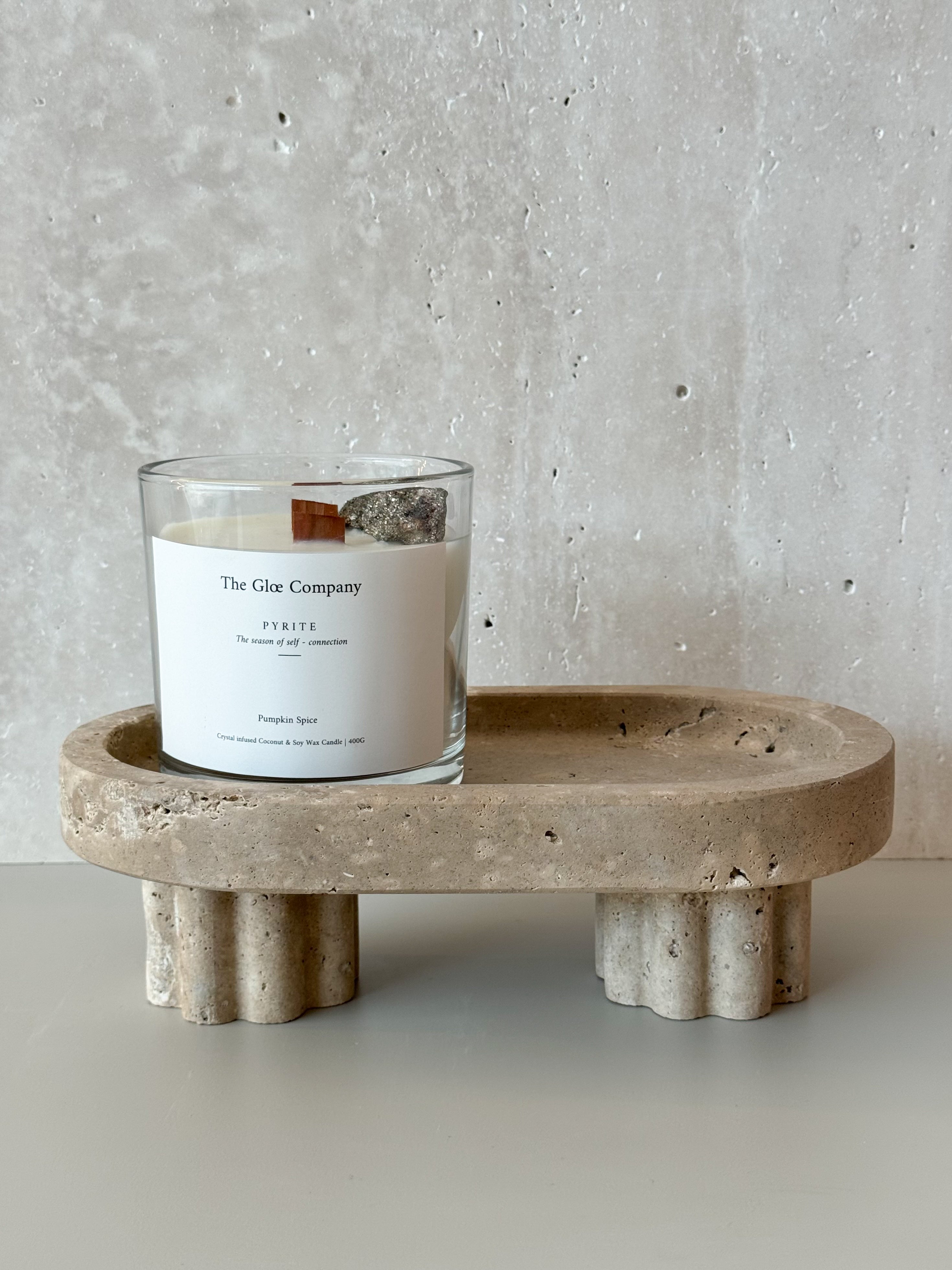 The Emma travertine tray is perfect for displaying candles, vases, or other decorative pieces. The textured legs add a touch of elegance while providing stability and raising the tray to an ideal height. Suitable for use on a coffee table, mantel, or entryway, this versatile piece blends practicality with classic elegance, making it the perfect addition to any space.