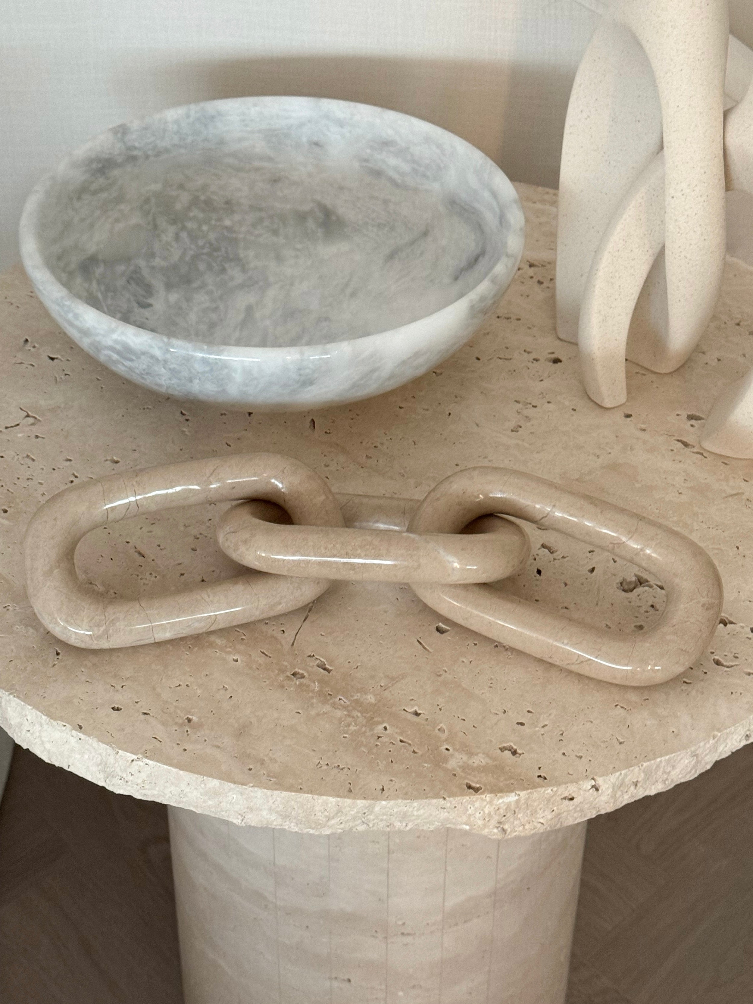 Elevate your home decor with the timeless elegance of our Fiona Beige Marble Chain. This stunning piece, meticulously handcrafted from marble, combines elegance and modern design, making it a perfect addition to any room. Each link in the chain is polished to perfection, highlighting the natural veining and unique patterns of the marble, ensuring that no two pieces are exactly alike.