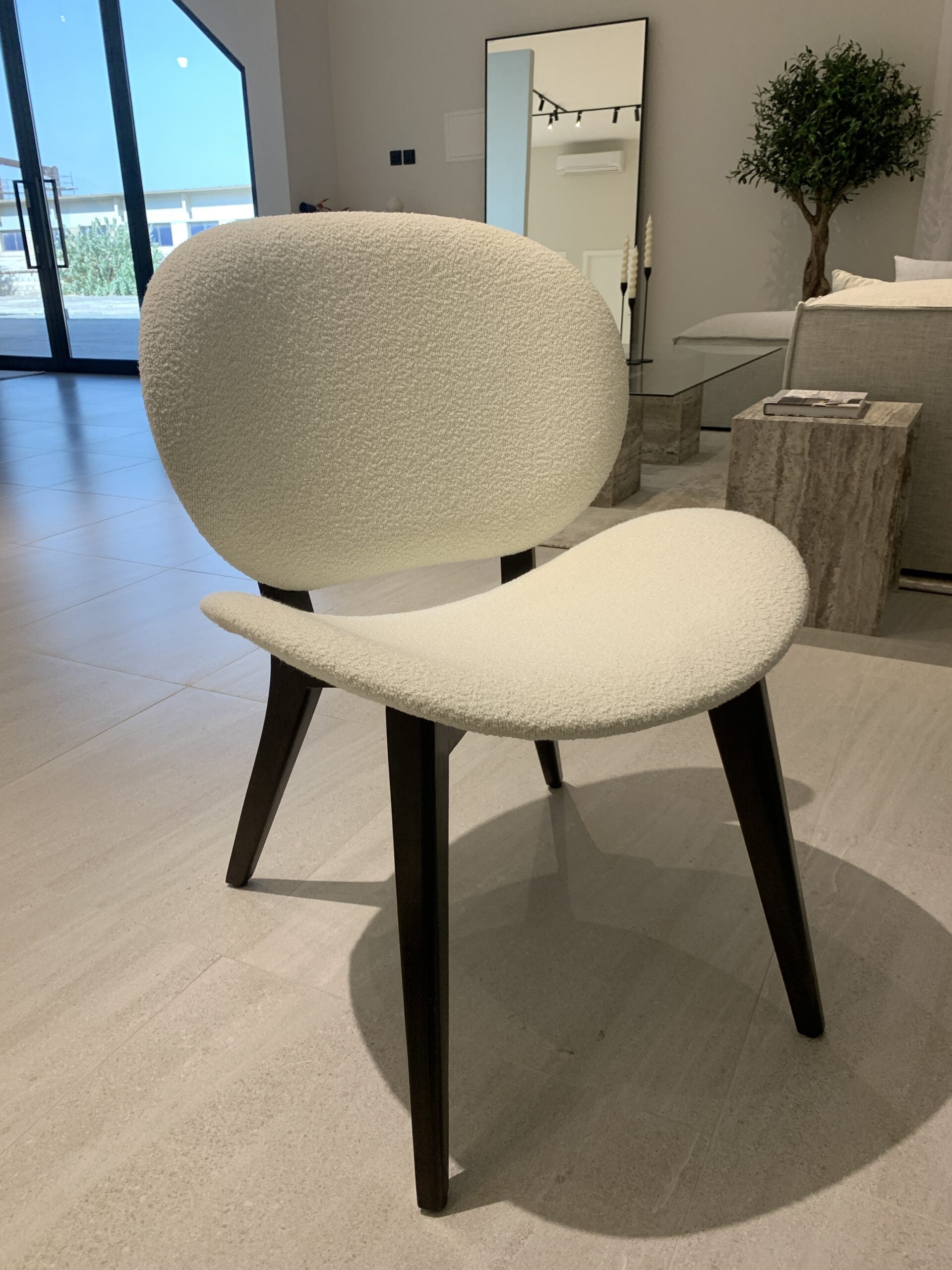 This gorgeous wood & boucle teddy effect statement chair is the perfect addition to a cosy corner of a bedroom or lounge, it's curves sit beautifully in any modern home and is just perfection.