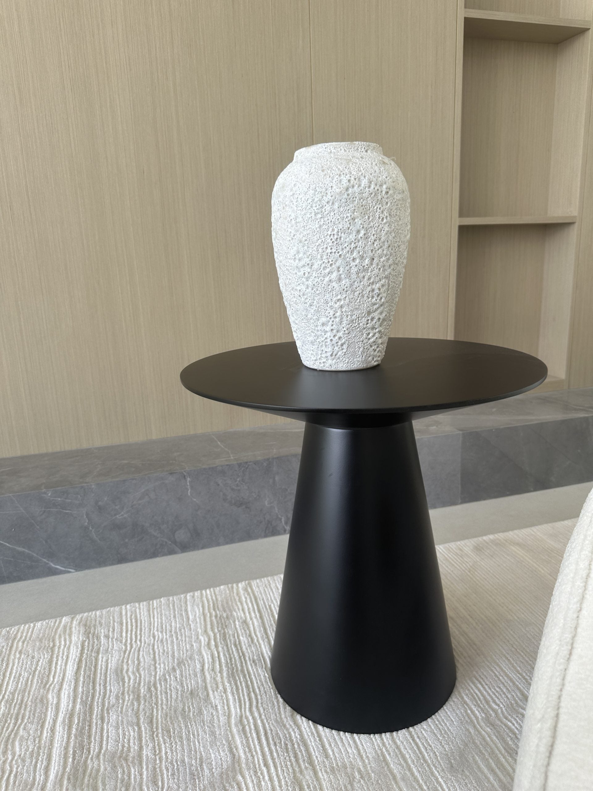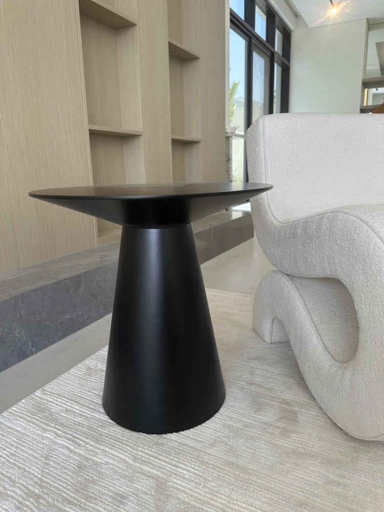 The Harry Round Side Table is a circular tabletop supported by a leg that flare outwards as they extend downward. The flared legs create a sense of visual interest and stability while adding a contemporary and sophisticated flair to the design.