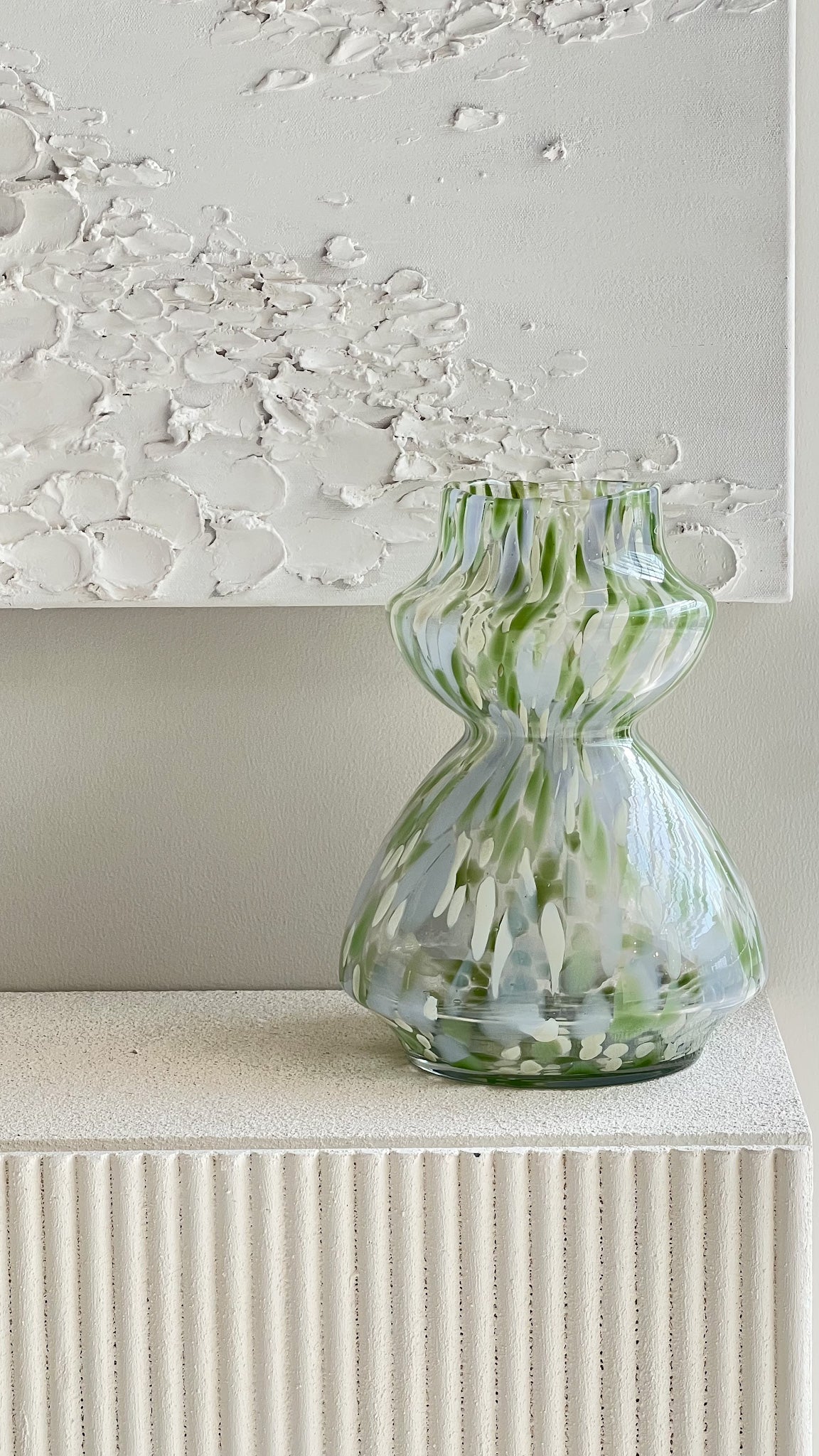 Discover the perfect blend of sophistication and artistry with our stunning glass vase, designed to elevate any space. This elegant piece features delicate green, lilac, and white watercolor effects, gracefully swirling across its silhouette shape. The soft, ethereal hues create a gentle pop of color, making it a timeless addition to your home decor. Crafted with the finest materials, its clean lines and refined design exude class and understated luxury, adding a touch of effortless beauty to any room. A true statement piece for those who appreciate artistry in the everyday.