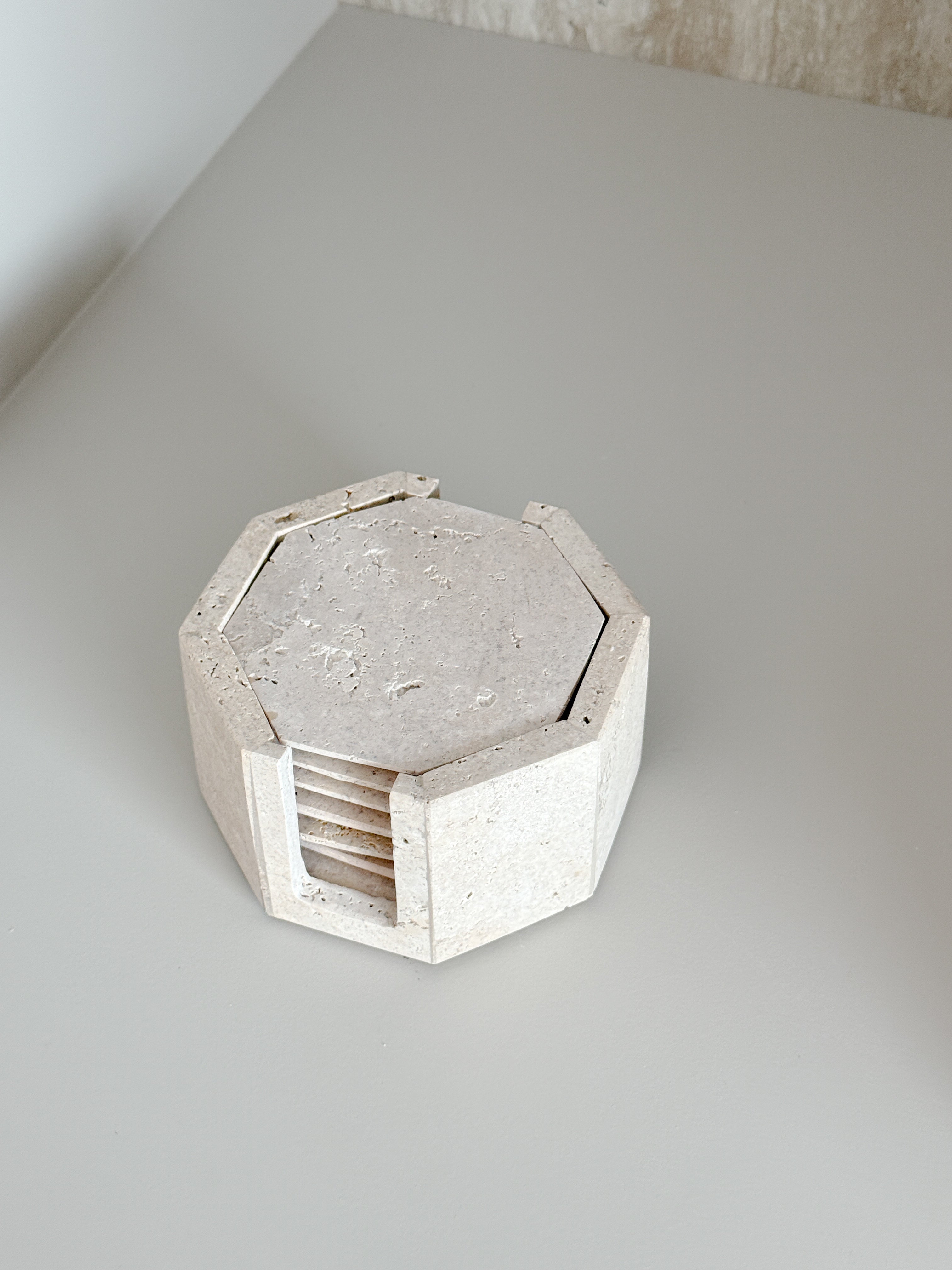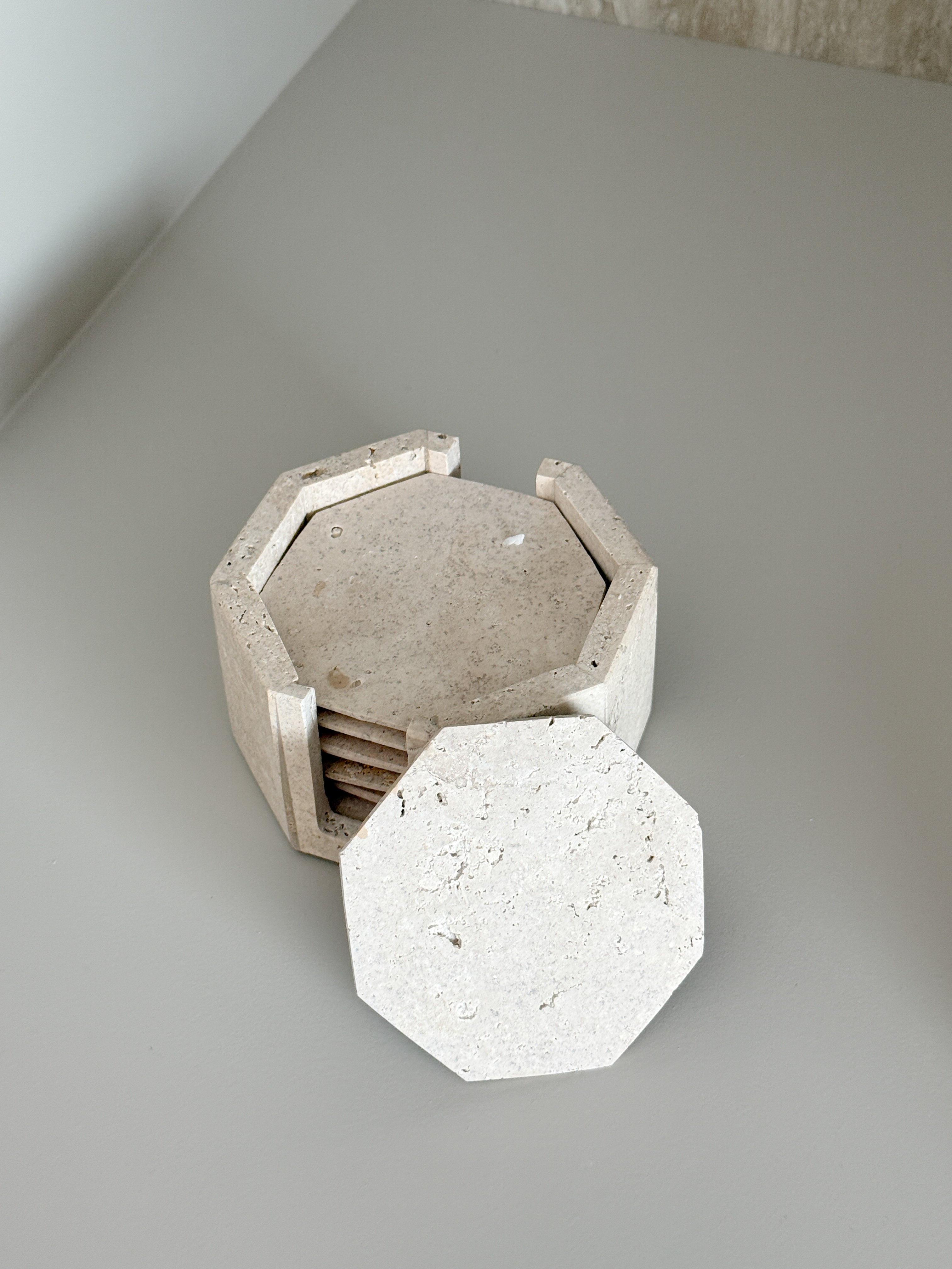 Add a luxurious touch of nature to your home with our Travertine Coasters. Each coaster is meticulously crafted from travertine marble, showcasing unique natural beauty of the stone. These coasters are designed to be both practical and stylish, providing a sophisticated accent to any table setting.