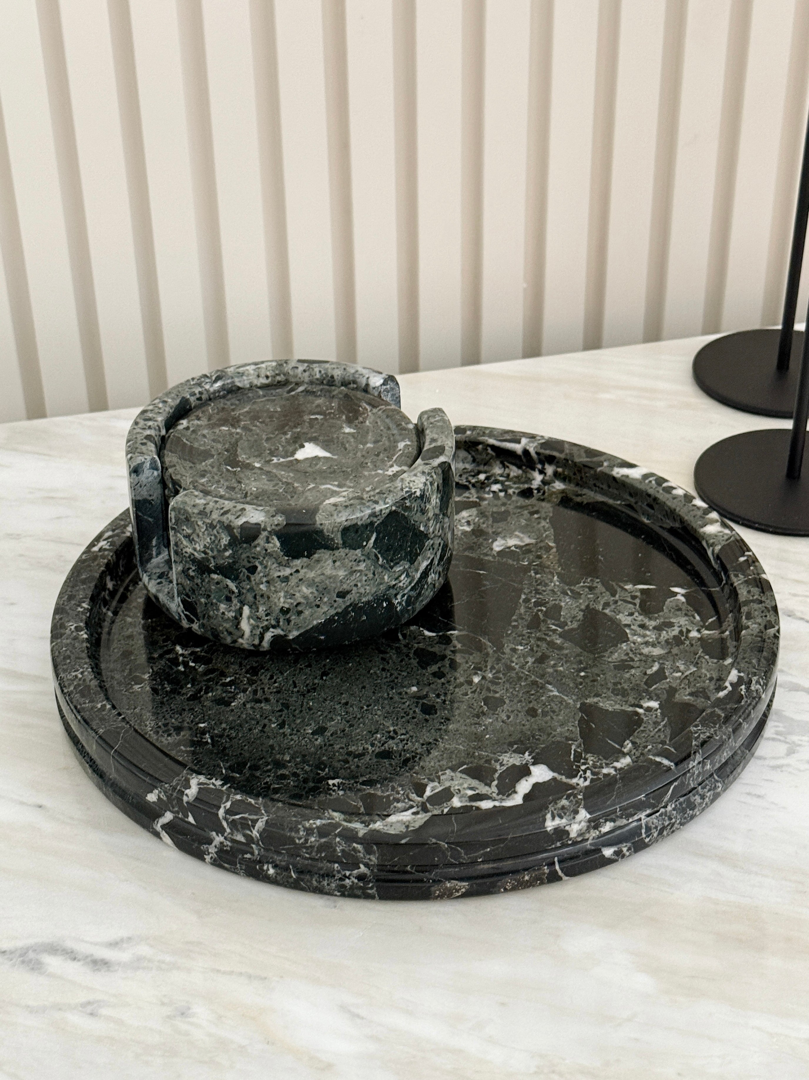 Introduce a blend of sophistication and natural beauty to your display with our Victor Round Tray. Meticulously crafted from victor black with distinctive veining patterns, this tray provides a luxurious resting place for your precious items. Perfect for organizing and showcasing your jewelry, this onyx tray is a statement of fine craftsmanship and timeless elegance.