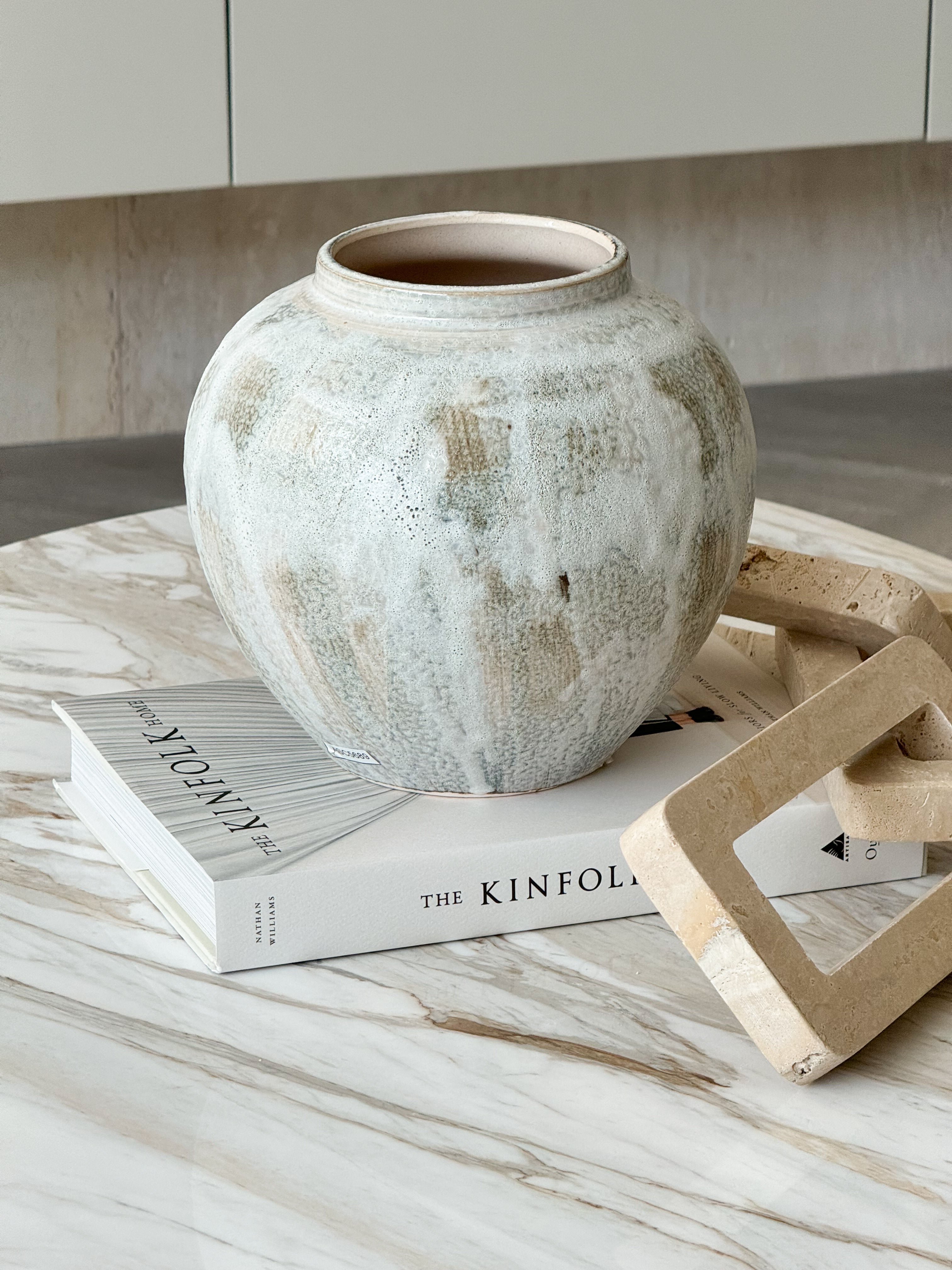 Experience refined elegance with our textured vase, a bold yet compact statement of modern luxury. Featuring a small, round frame with a rich, tactile surface, this vase showcases a sophisticated blend of neutral tones—soft turquoise, earthy browns, and warm neutrals. Expertly crafted to combine both strength and subtlety, it adds a sculptural quality to any space, effortlessly drawing the eye. Whether used as a striking centerpiece or a delicate accent, this unique design brings depth and character, offering the perfect balance of contemporary artistry and timeless style.
