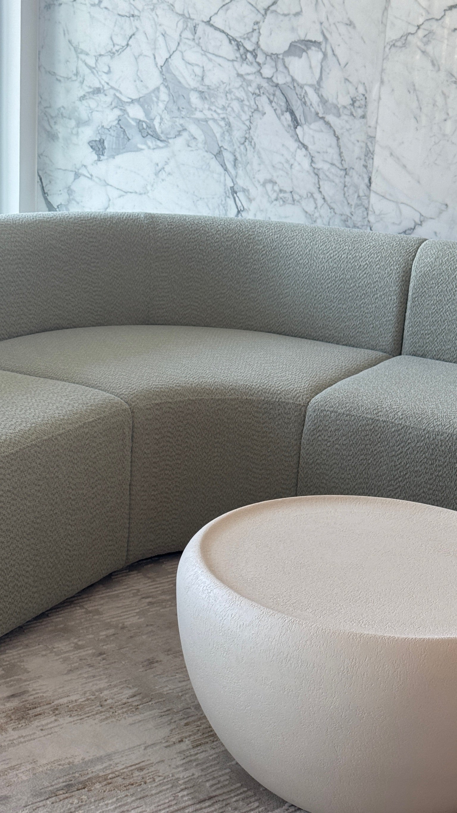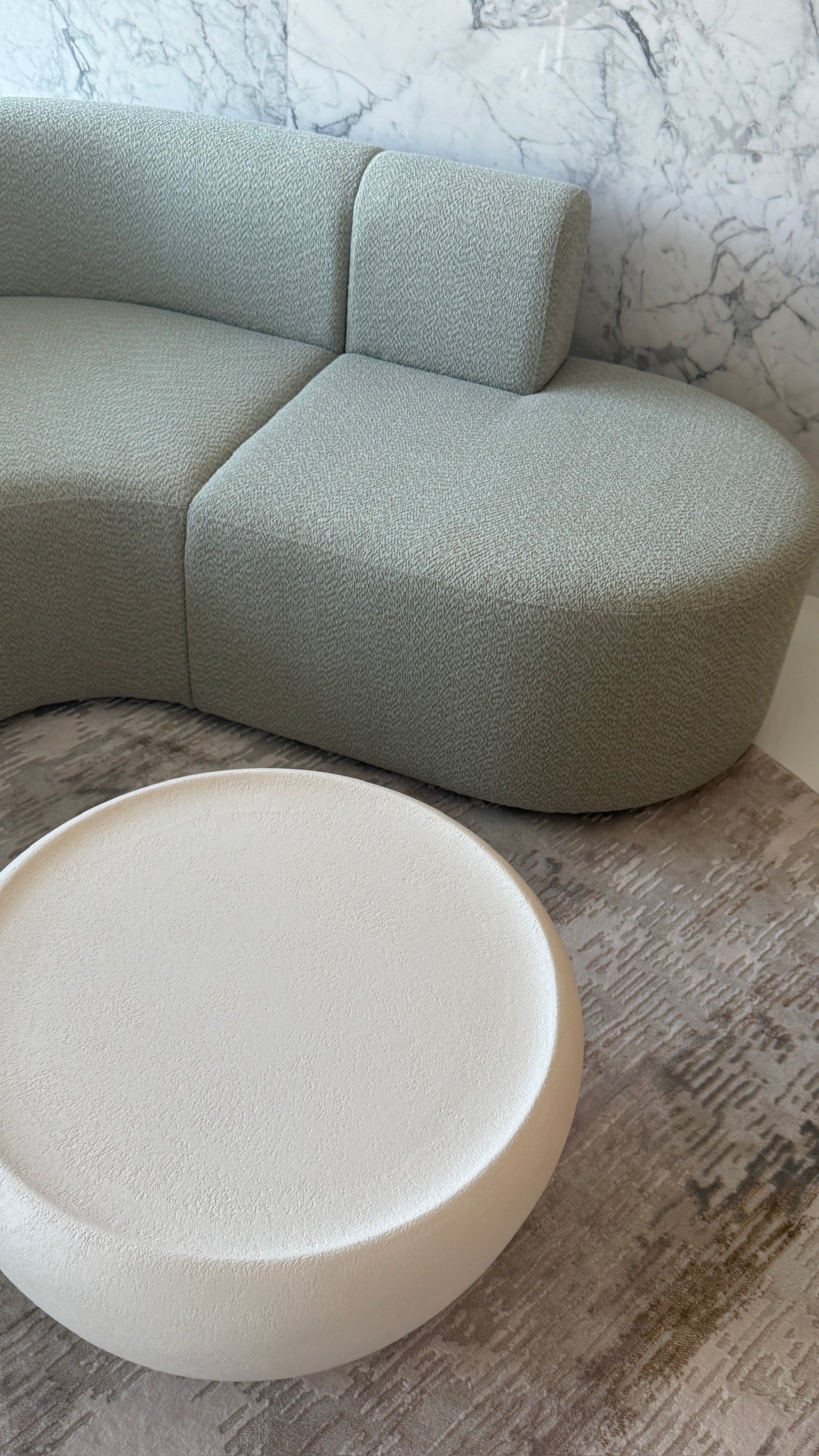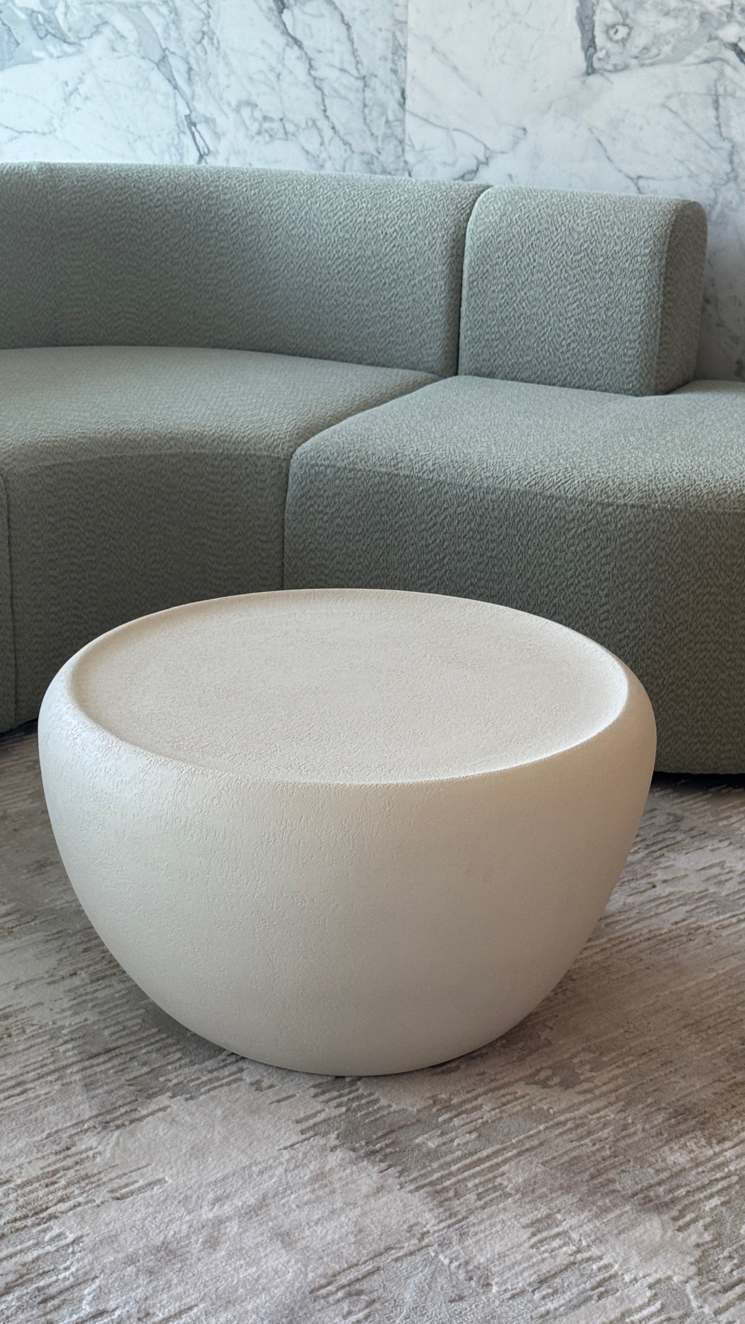 A stunning blend of contemporary design and functional luxury. Featuring a bold, sculptural form, this coffee table starts with a narrower base and gradually expands to a generous, wide surface top, creating a striking visual contrast that complements any modern interior. The textured white finish adds a refined, tactile quality, making it not only a practical piece for everyday use but also a standout statement of sophistication.