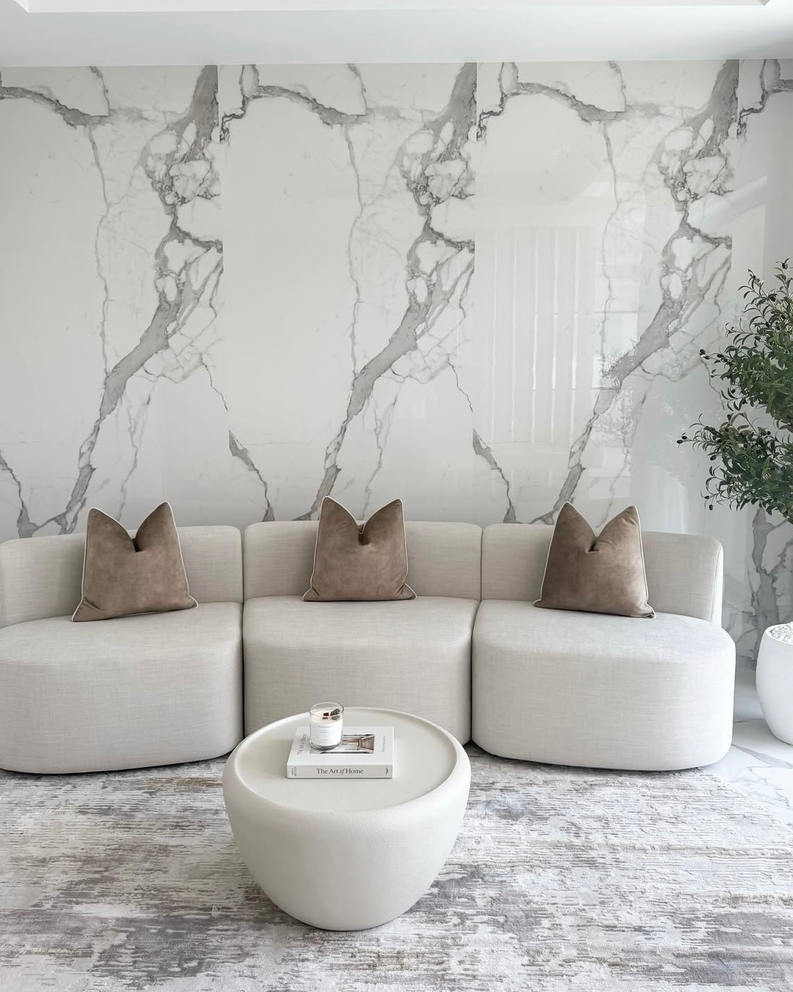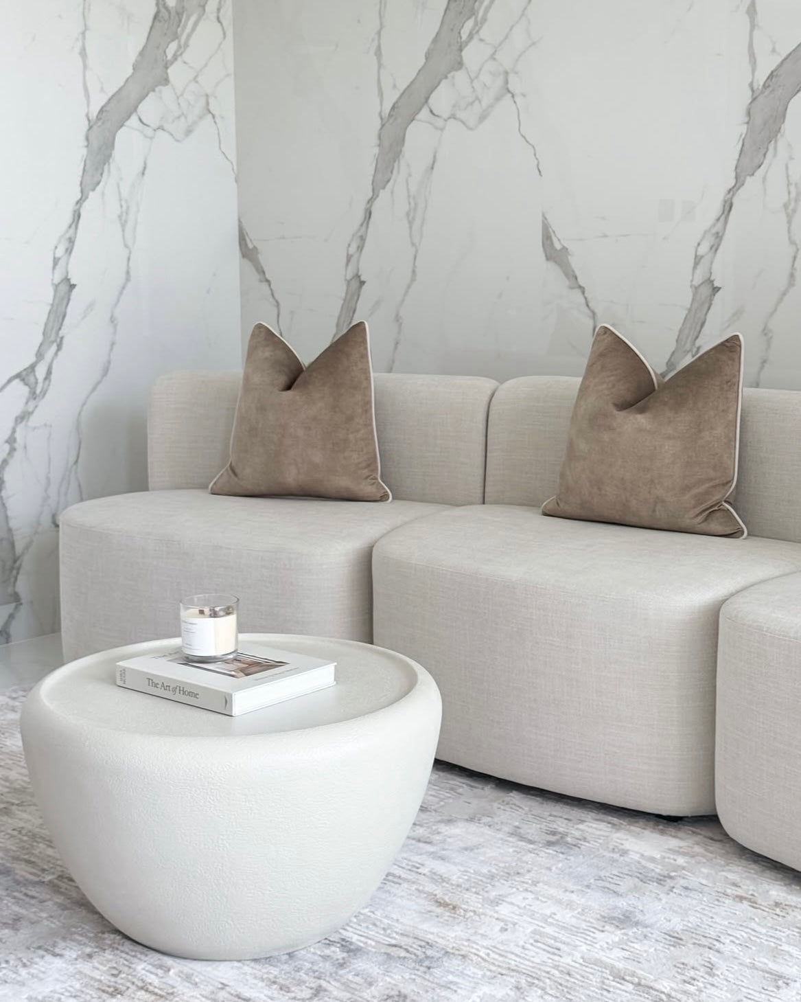 A stunning blend of contemporary design and functional luxury. Featuring a bold, sculptural form, this coffee table starts with a narrower base and gradually expands to a generous, wide surface top, creating a striking visual contrast that complements any modern interior. The textured white finish adds a refined, tactile quality, making it not only a practical piece for everyday use but also a standout statement of sophistication.