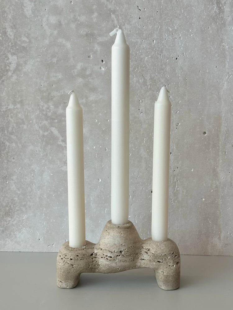 Crafted from travertine, our Lucy candle holder features a smooth, light beige finish that complements a range of interior styles. Its sleek, minimalist design ensures that the natural beauty of the stone takes center stage, while the trio of candle platforms offers a harmonious glow.