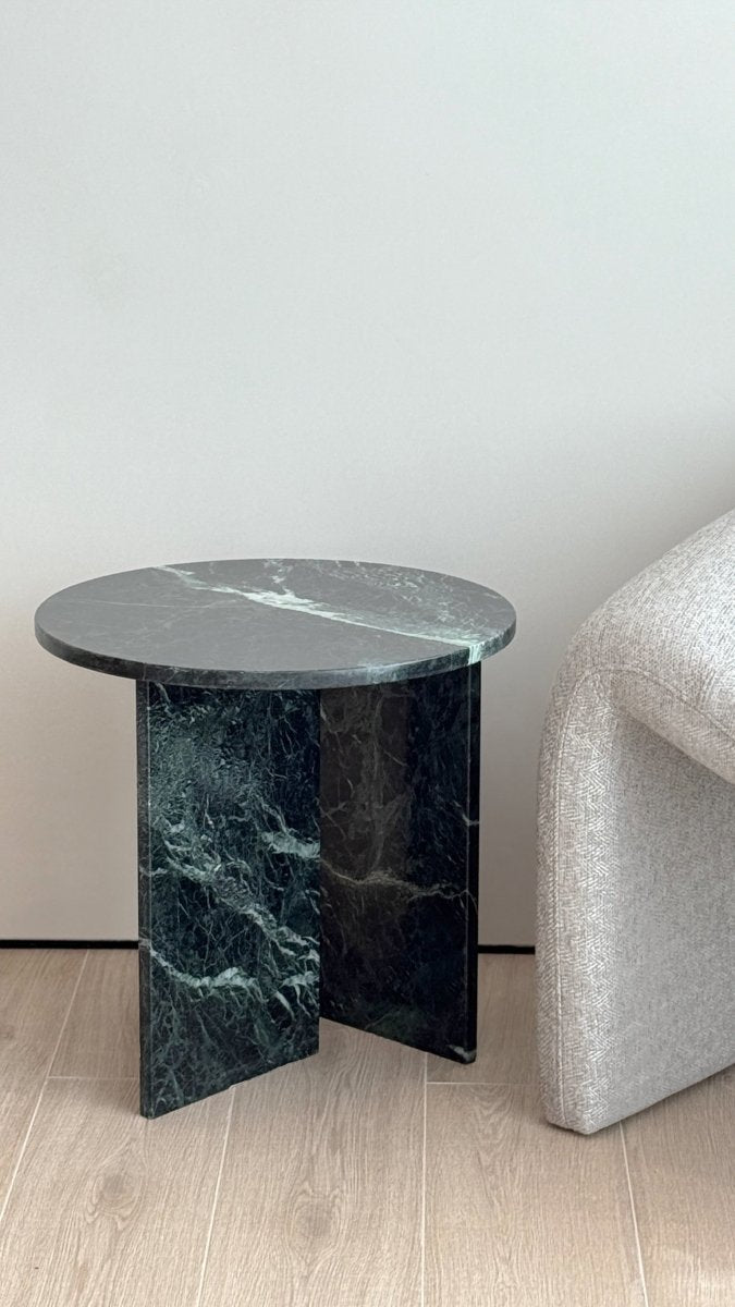 Sculptural elegance meets natural sophistication of Luiz side table. Crafted from richly veined green marble, this piece is a statement of timeless luxury. Its bold, architectural form offers both visual intrigue and structural harmony, making it the perfect accent beside a sofa, lounge chair, or in a curated corner. Whether styled solo or layered with decor, Luiz side table brings a grounded yet refined energy to any space.