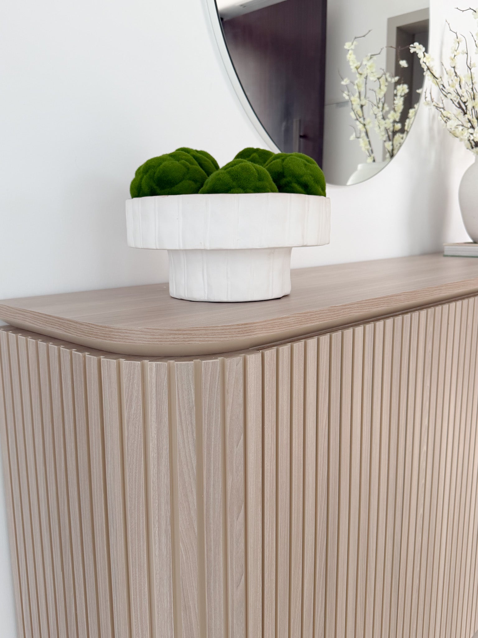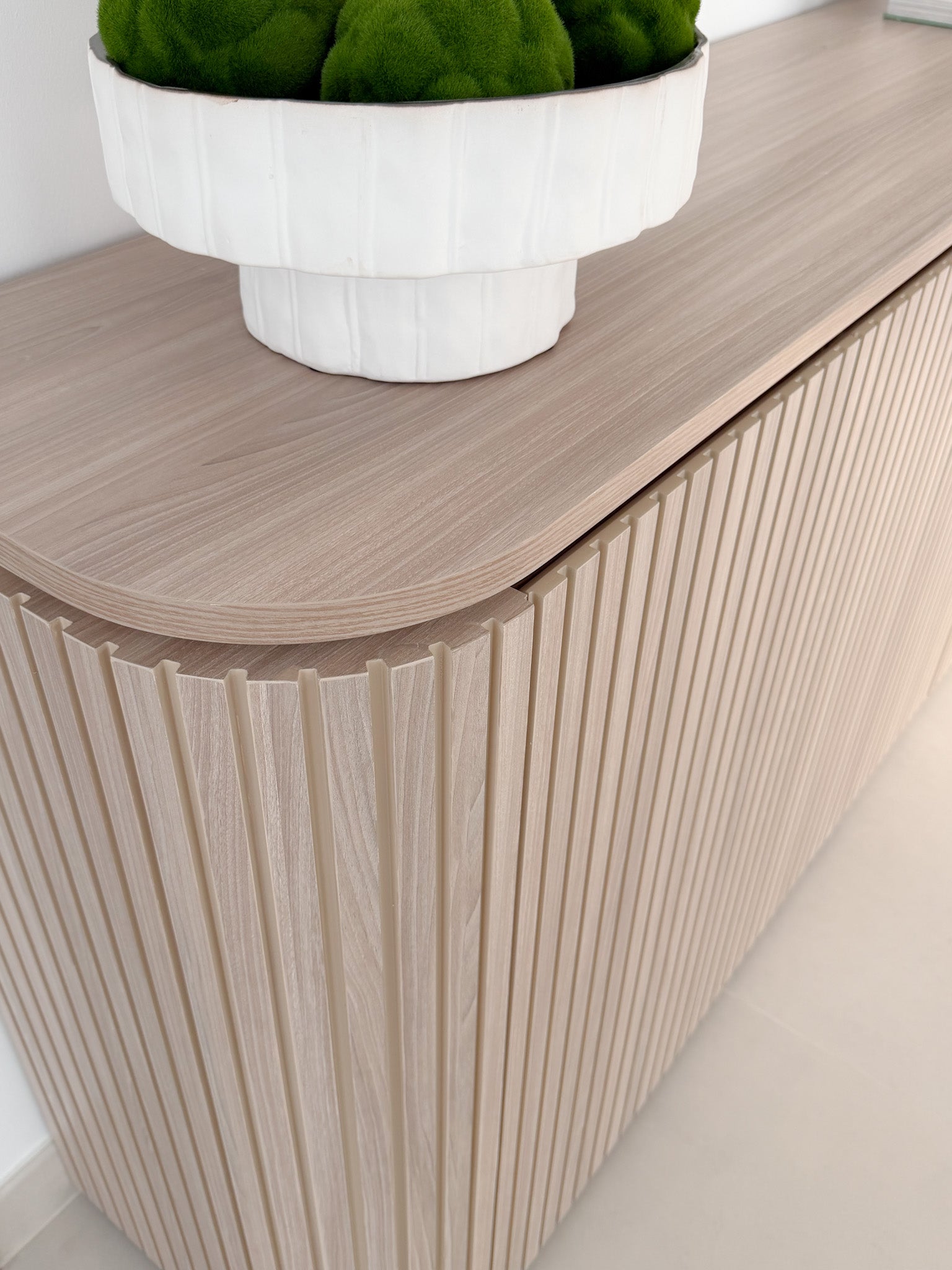 The Liliana Console is a masterclass in refined craftsmanship and contemporary elegance, designed to anchor luxury interiors with quiet confidence. Characterized by its softly curved silhouette and vertically fluted wood detailing, Liliana brings architectural rhythm and natural warmth to entryways, living spaces, and private corridors.