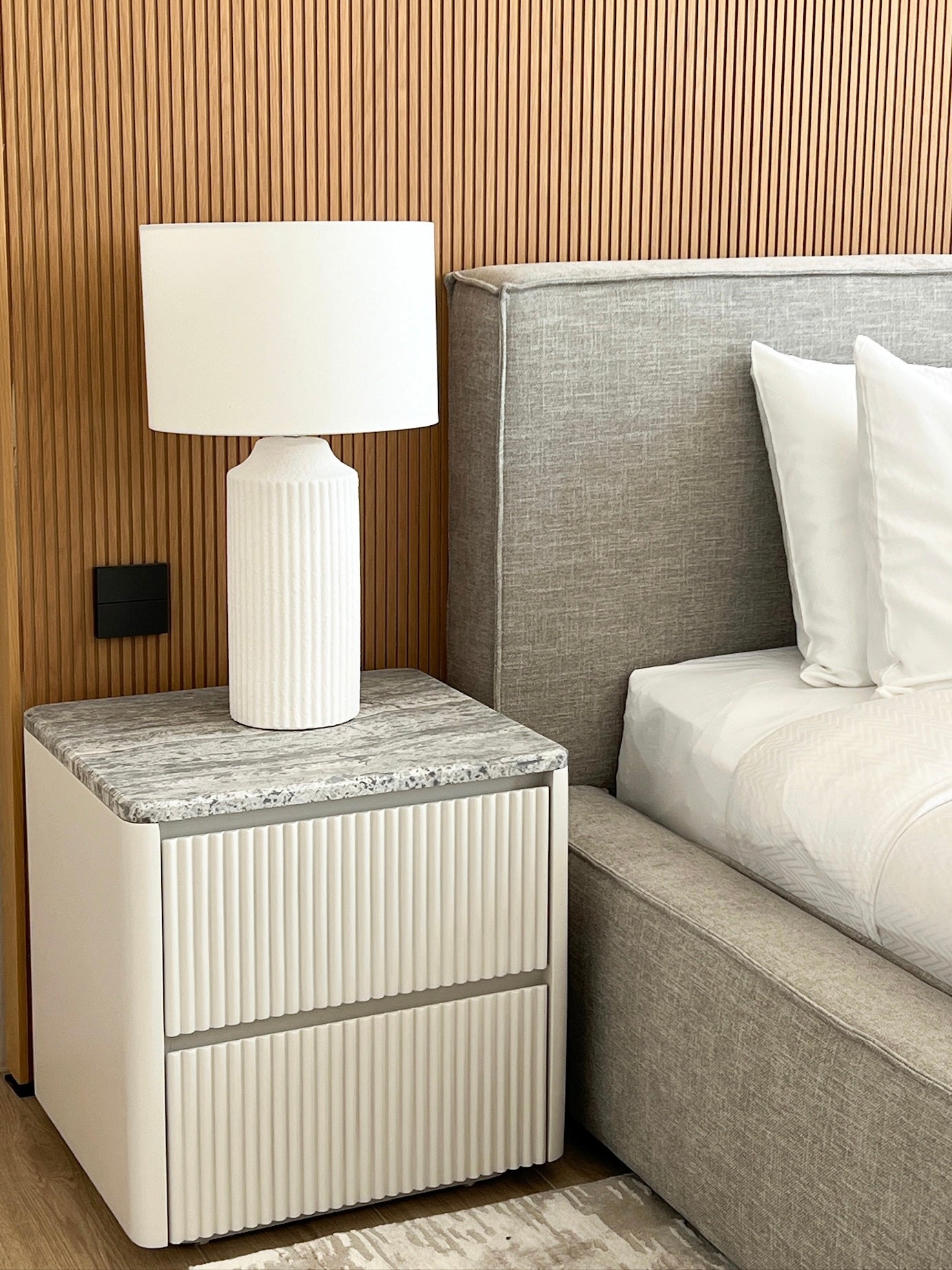 Marcus Side Table is the perfect blend of style and sophistication. Its gracefully rounded edges are designed to complement any bedside setup, adding a touch of luxury to your home. The rich marble top selection surface enhances its elegant appearance, making it a stunning and functional addition to your decor.