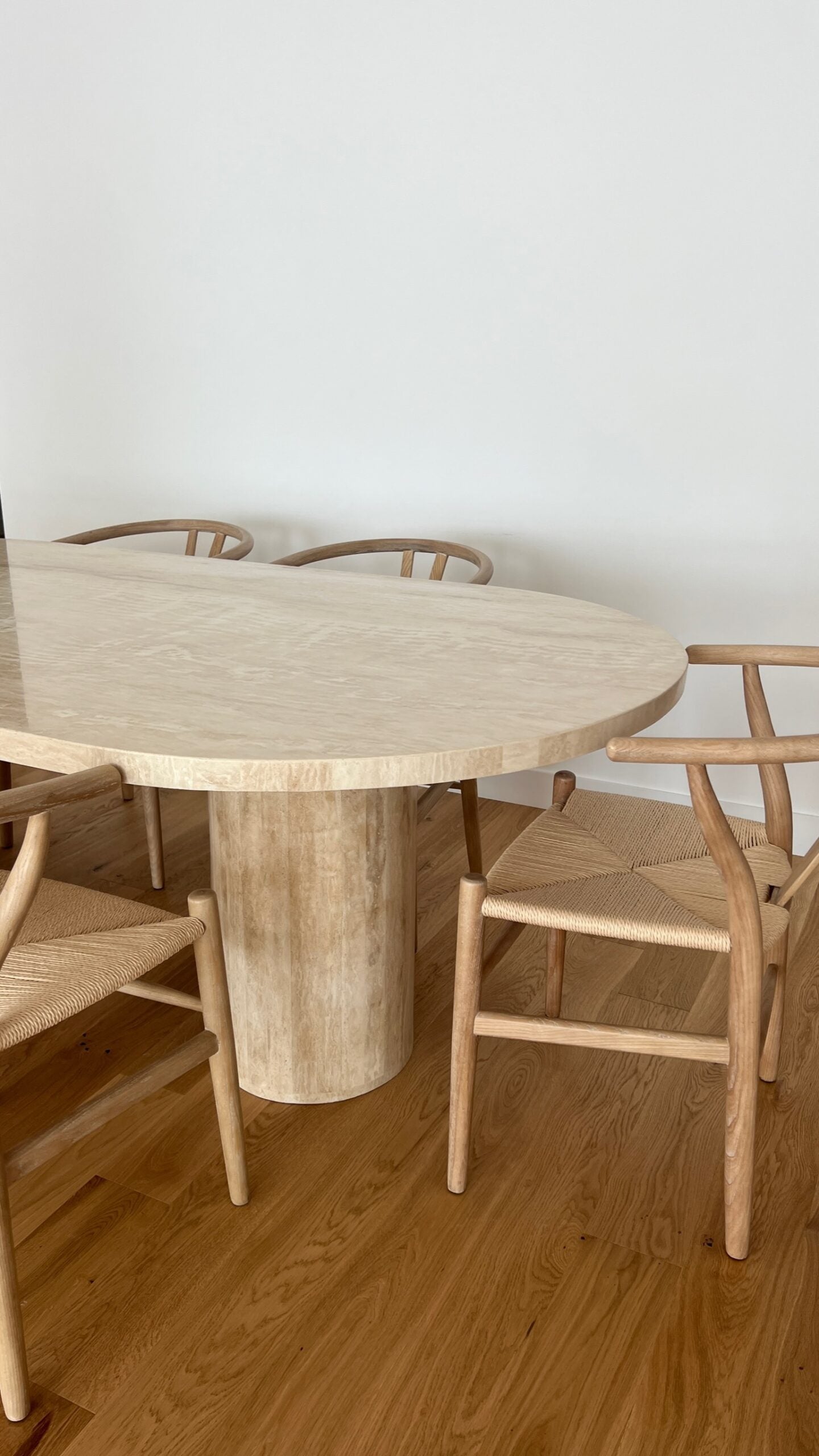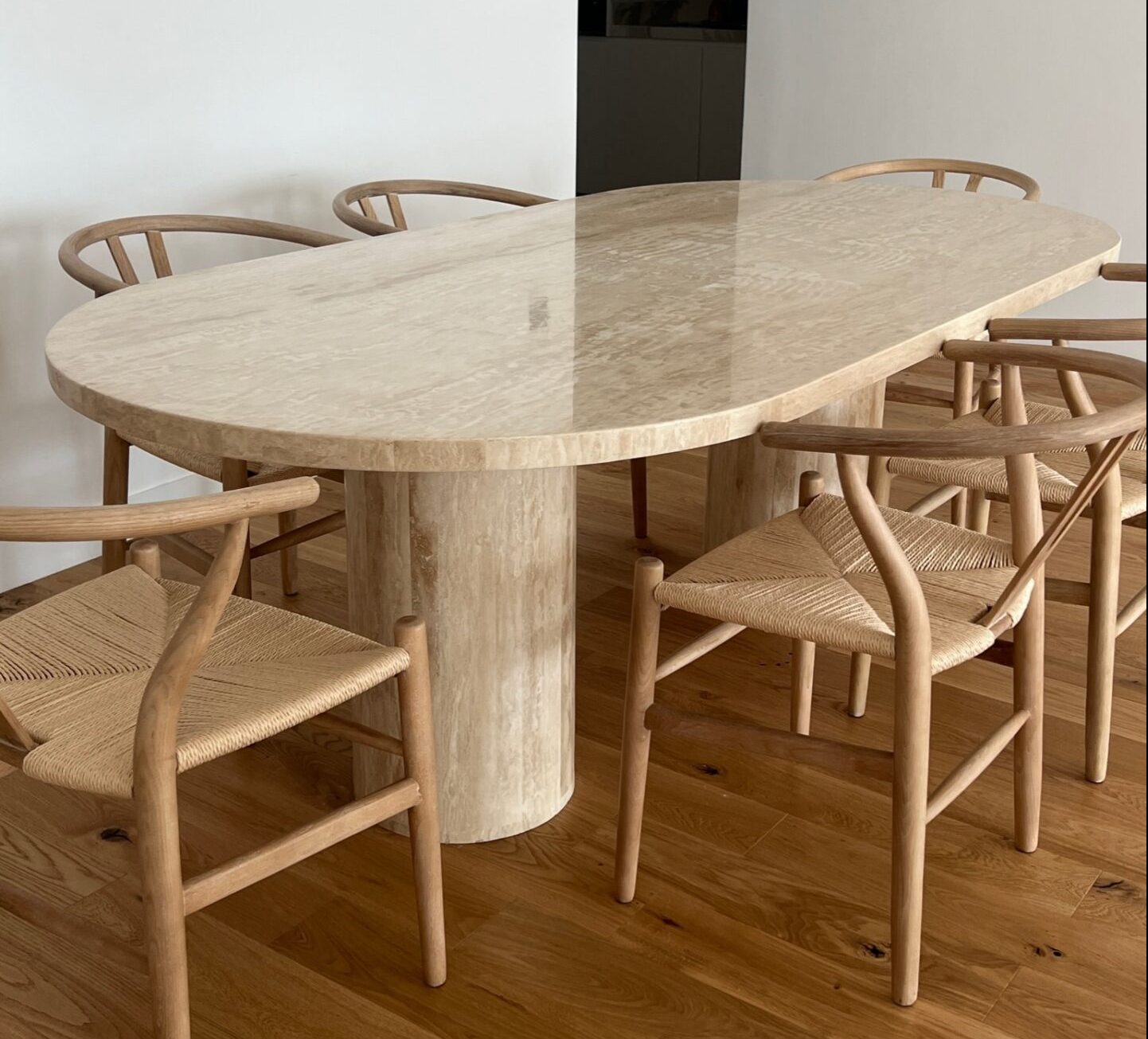 This stunning Mataoe Dining Table is hand carved from our beautiful travertine marble.
