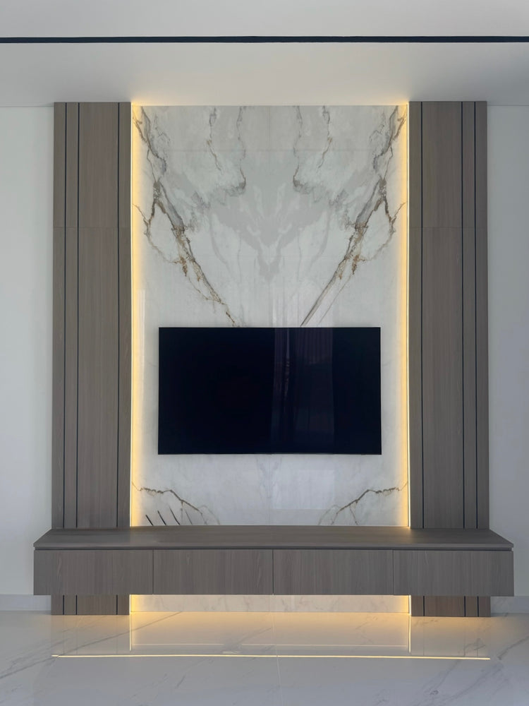 Sculptural, serene, and impeccably refined Maxine Media Wall is a true centrepiece designed to elevate your home with quiet luxury. Wrapped in rich wood finishes and framed by striking book matched marble veining, this media wall merges timeless materials with a modern architectural silhouette.