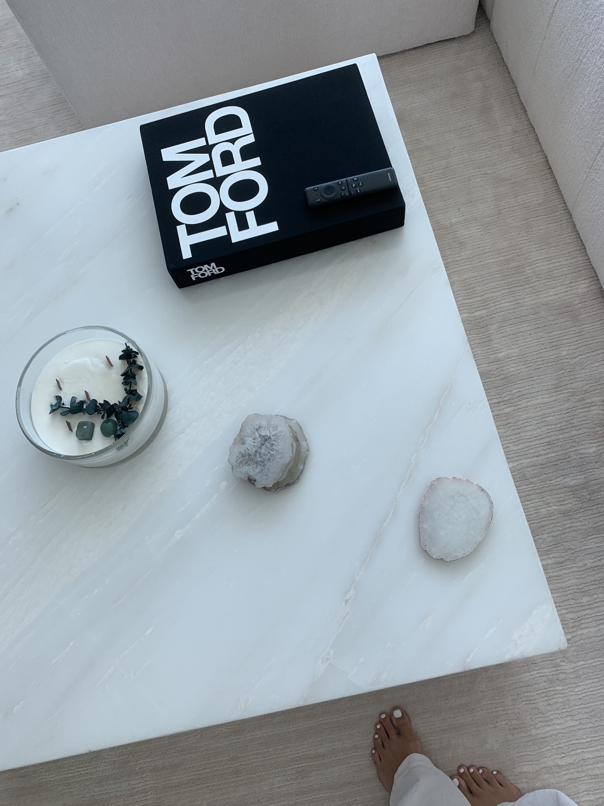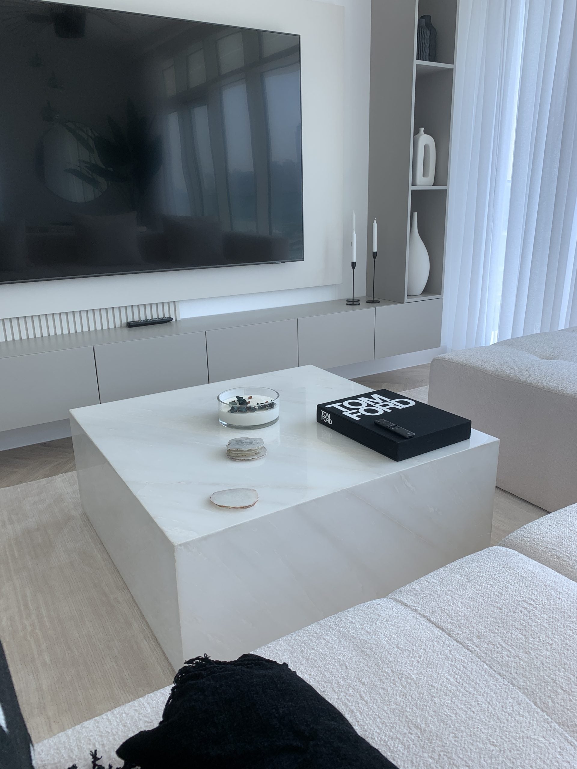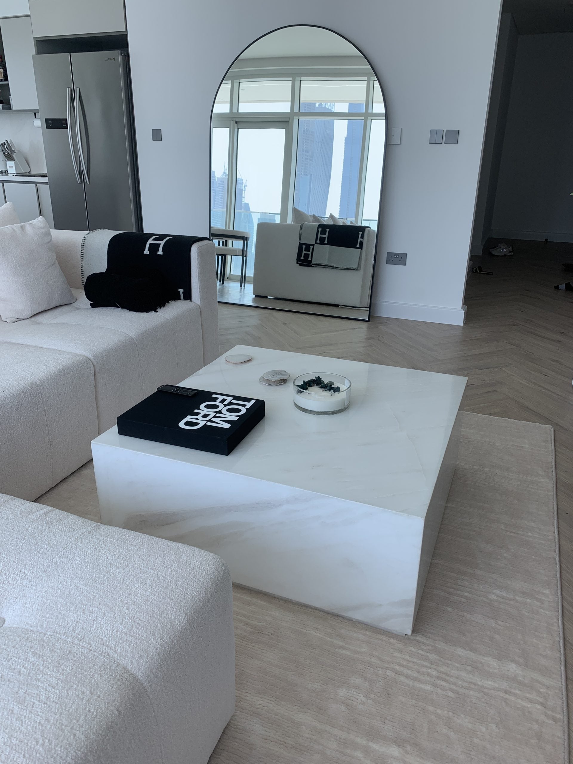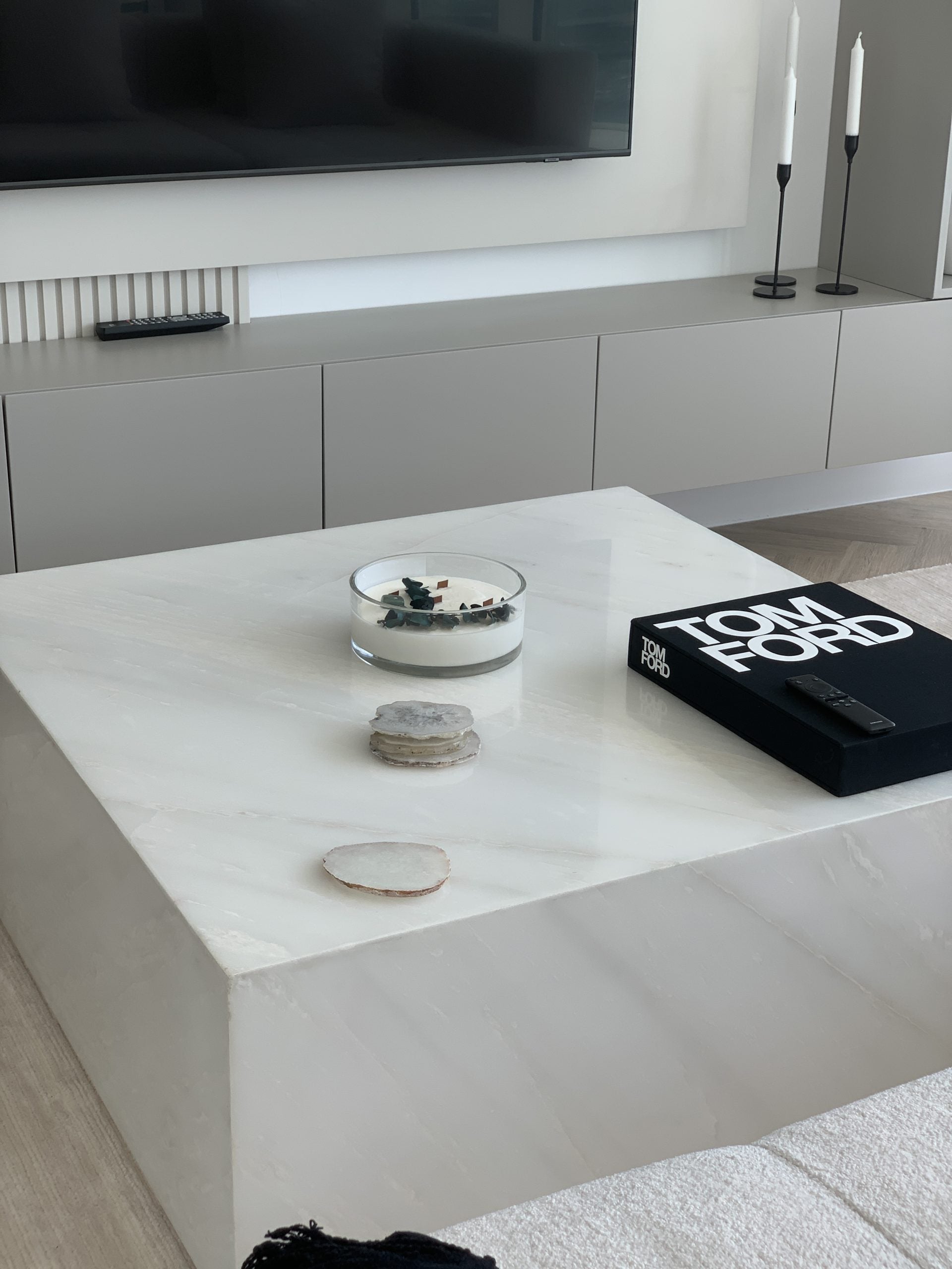 The Molly Coffee Block Table made from the finest Royal Jade. The perfect edition for any modern space, in gorgeous white and grey tones.