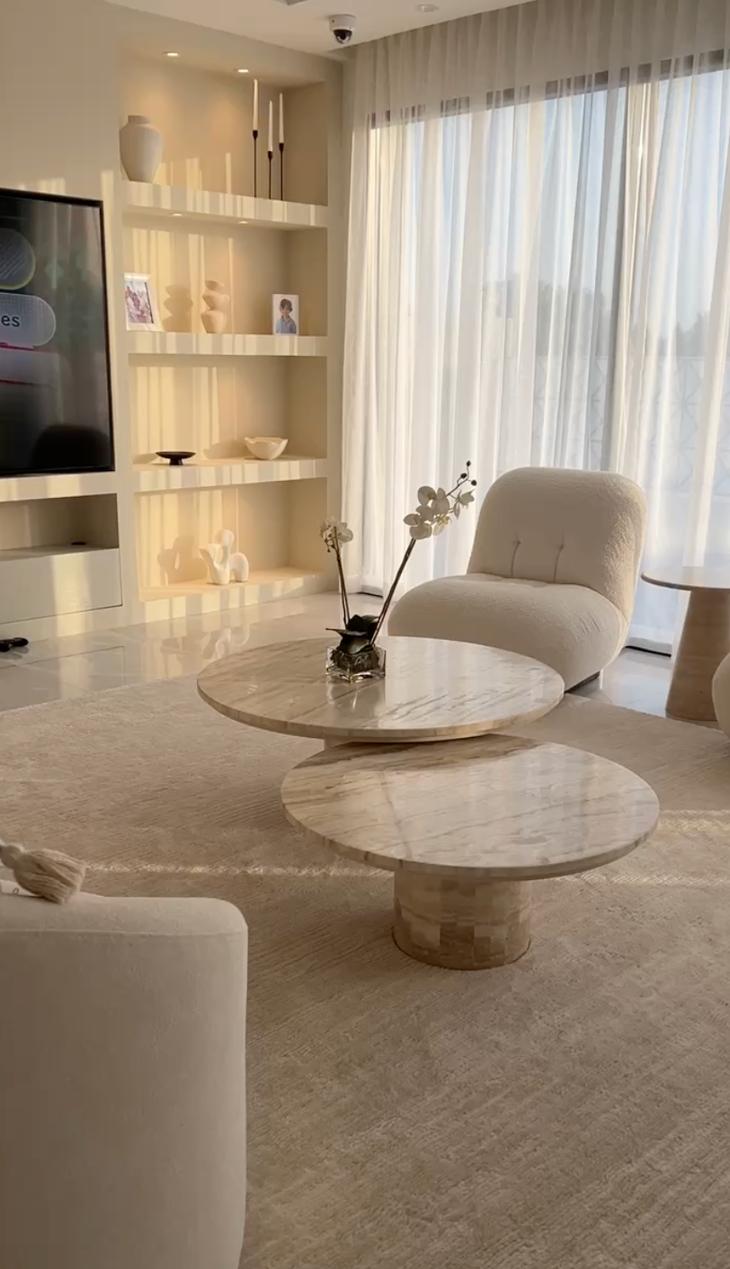 The Nadine Round Travertine Coffee Table comes in a set of two. It features a beautiful array of earthy tones and distinctive textures, including pits and voids that add character to the stone and exudes a timeless charm and natural elegance.