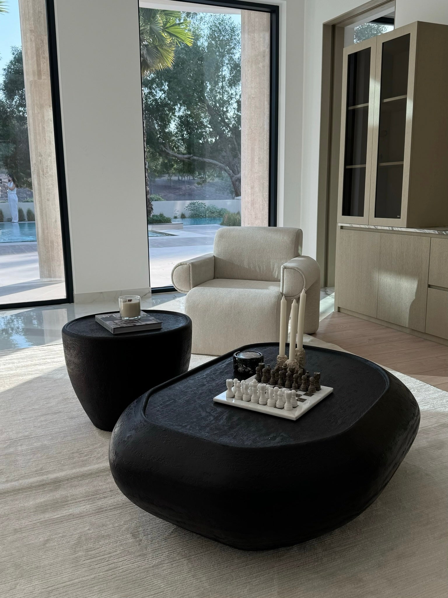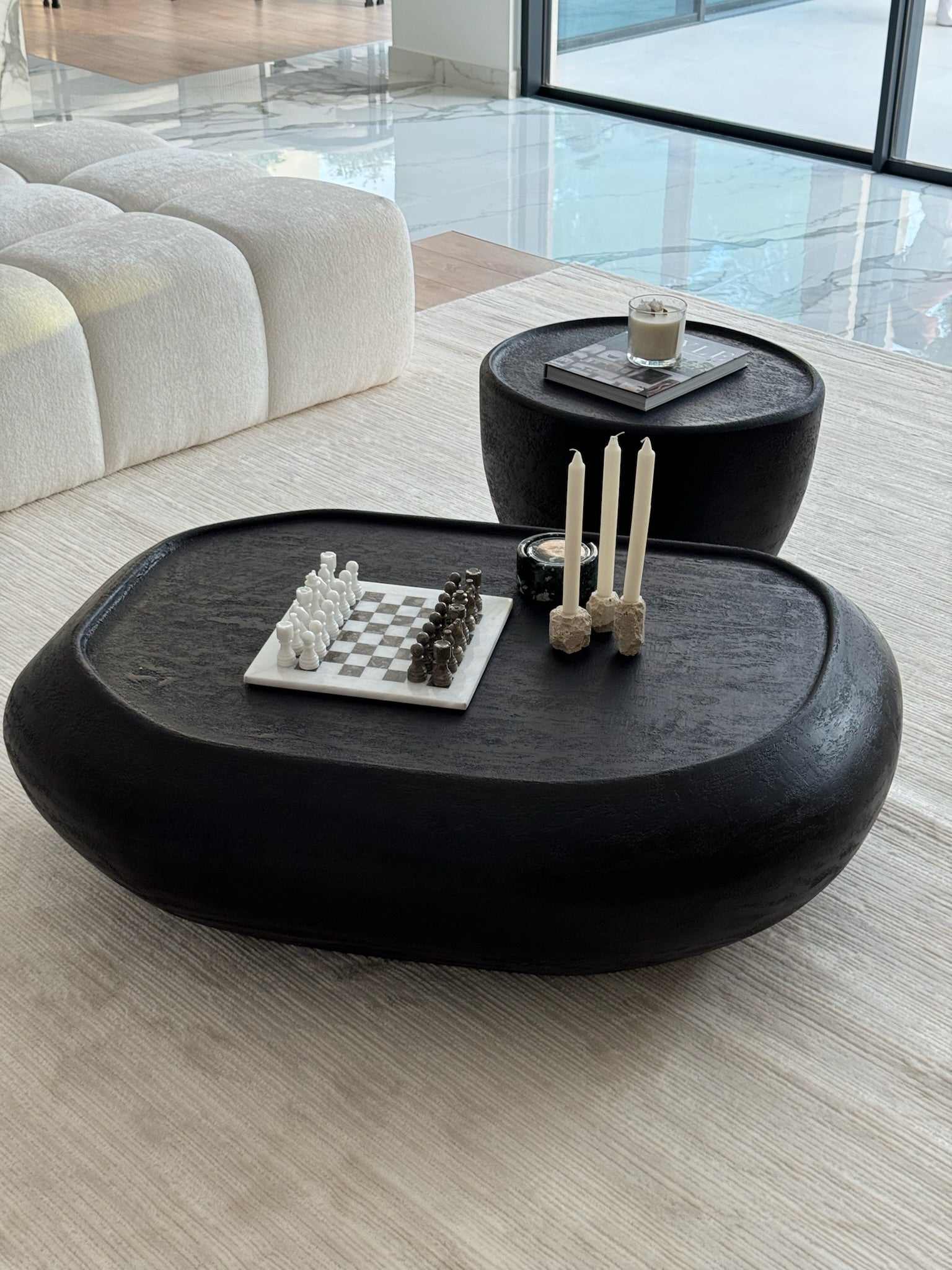 Introducing the Dreamy Duo an exceptional pair of black nesting coffee tables designed to elevate your living space with a touch of sophistication and modern allure. Crafted with precision, these tables feature a stunning textured finish that radiates understated elegance, adding a sense of depth and tactile beauty to your interiors.