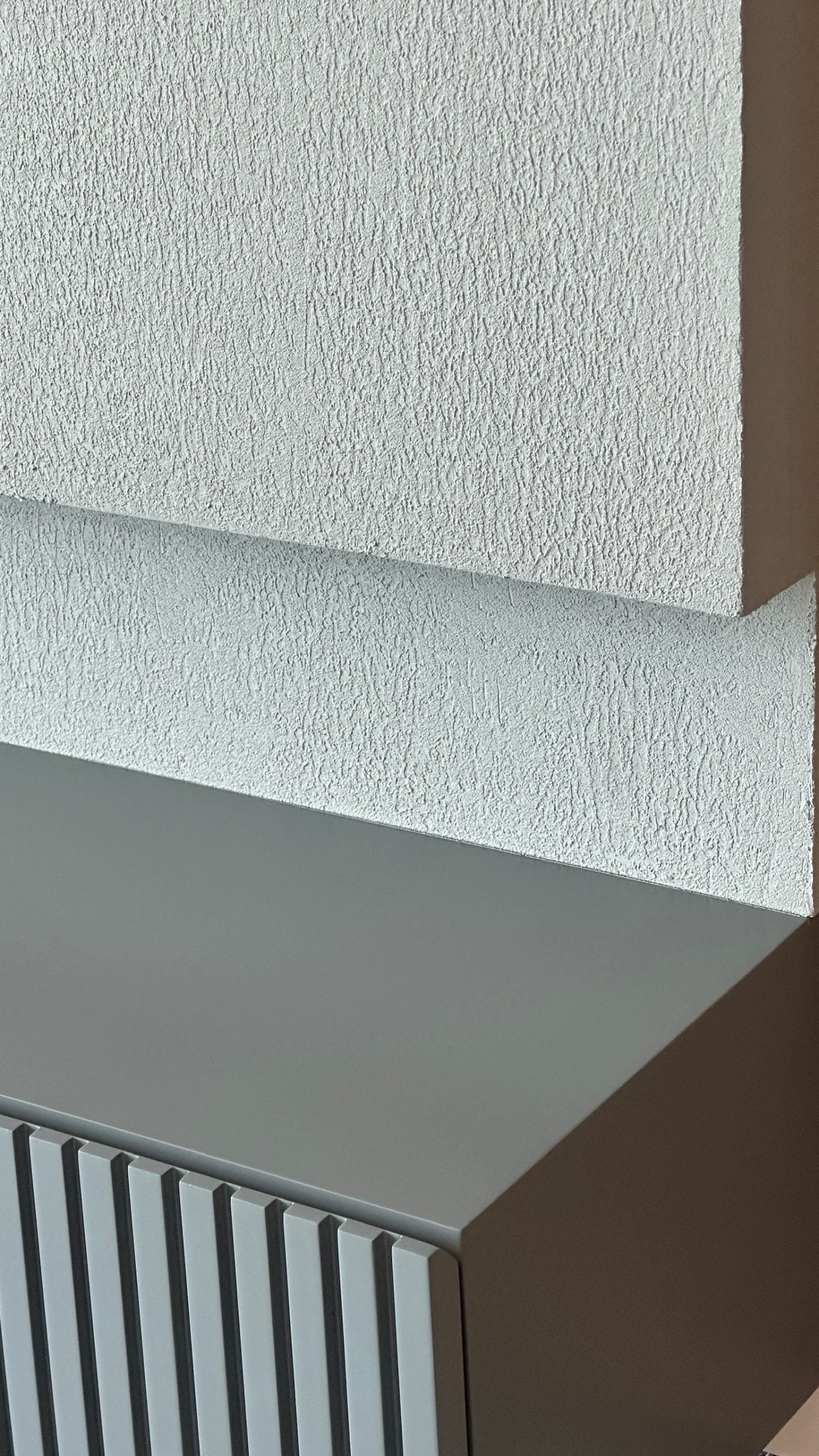The Nicole Media Wall's floating design adds a touch of modernity while keeping your space looking clean and uncluttered. It also provides a sleek, seamless look with the TV flushed to the textured panel.