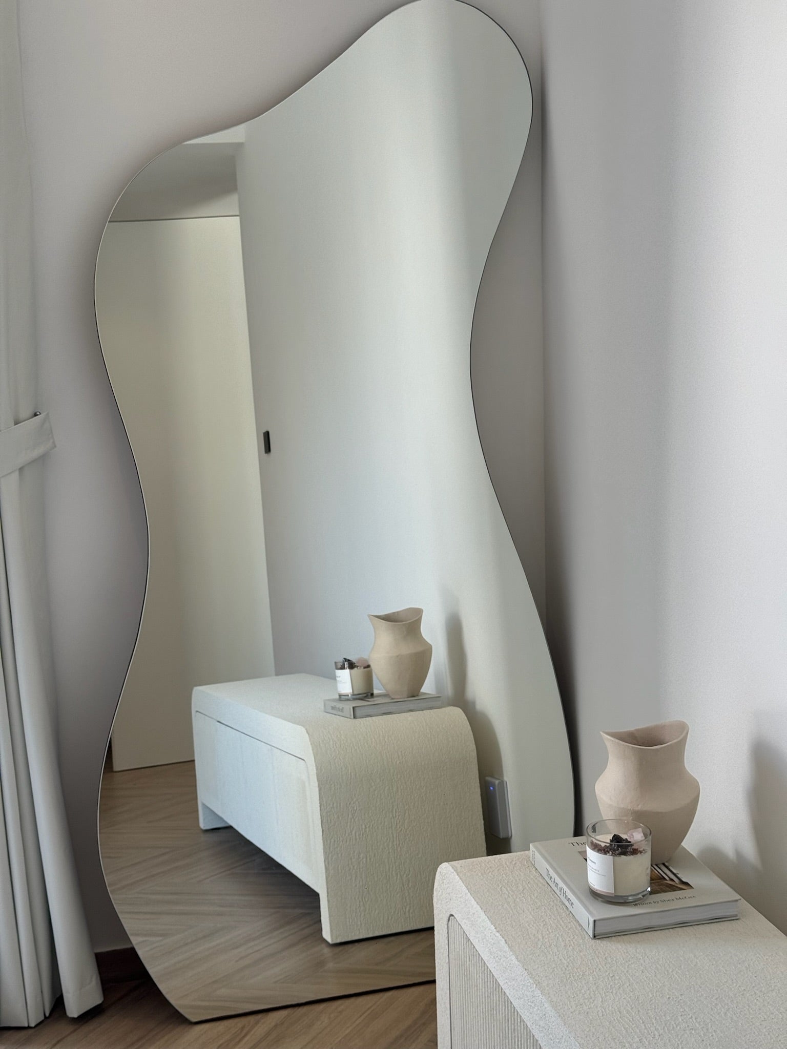 The Ocean Pond Mirror is the one of a kind, high quality mirror you've been looking for. With its unique shape and stunning curves, this mirror will make any room look good. Whether you're looking for a statement piece for your bathroom or bedroom, or just want to add some style to your office space, our Ocean Pond Mirror is perfect for any space!