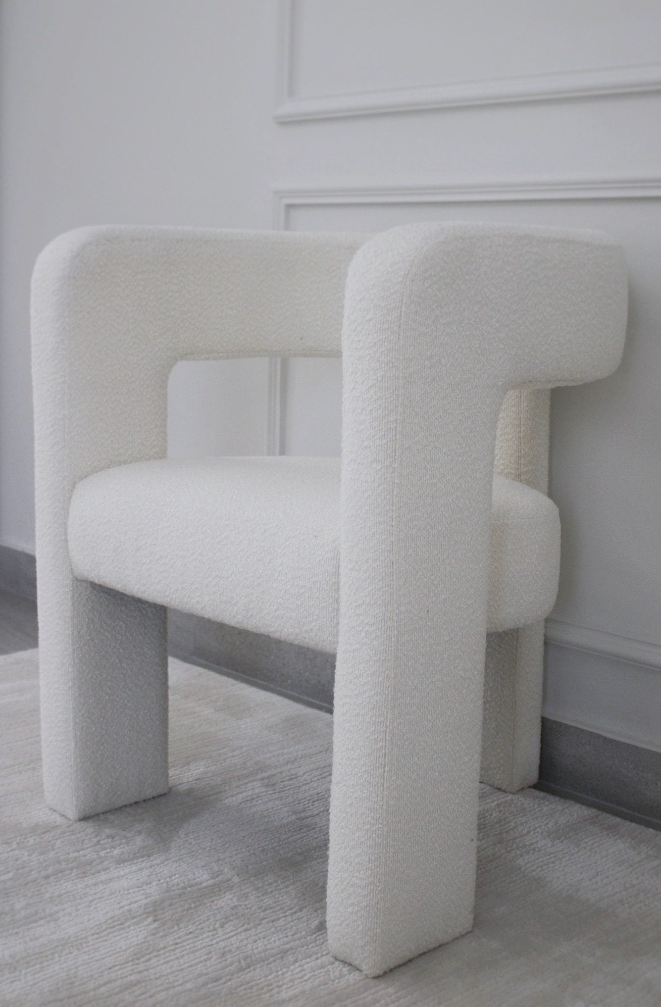Our stunning Paloma dining chair in light cream boucle is the perfect dining chair for contemporary living.