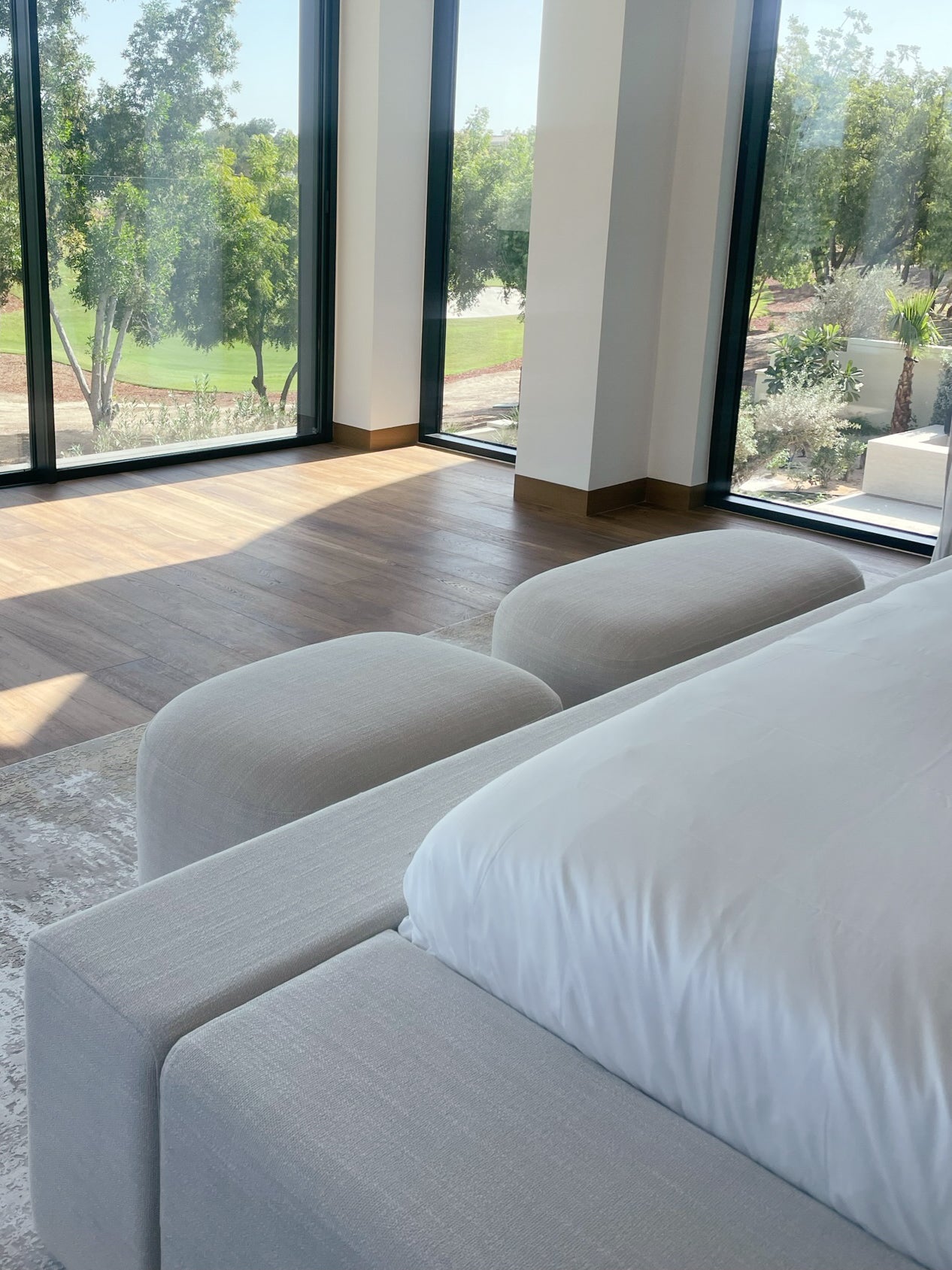 A statement piece that embodies both comfort and sophistication. Upholstered in high-quality luxurious fabric, this ottoman features a soft, cushioned top that invites relaxation, while its refined design enhances the aesthetic of any room. Perfectly suited for adding a touch of elegance to your living space, the is ideal as a decorative accent or additional seating, effortlessly complementing a variety of interior styles. Crafted with attention to detail, this ottoman brings timeless luxury into your home without the need for storage, focusing purely on beauty and comfort.