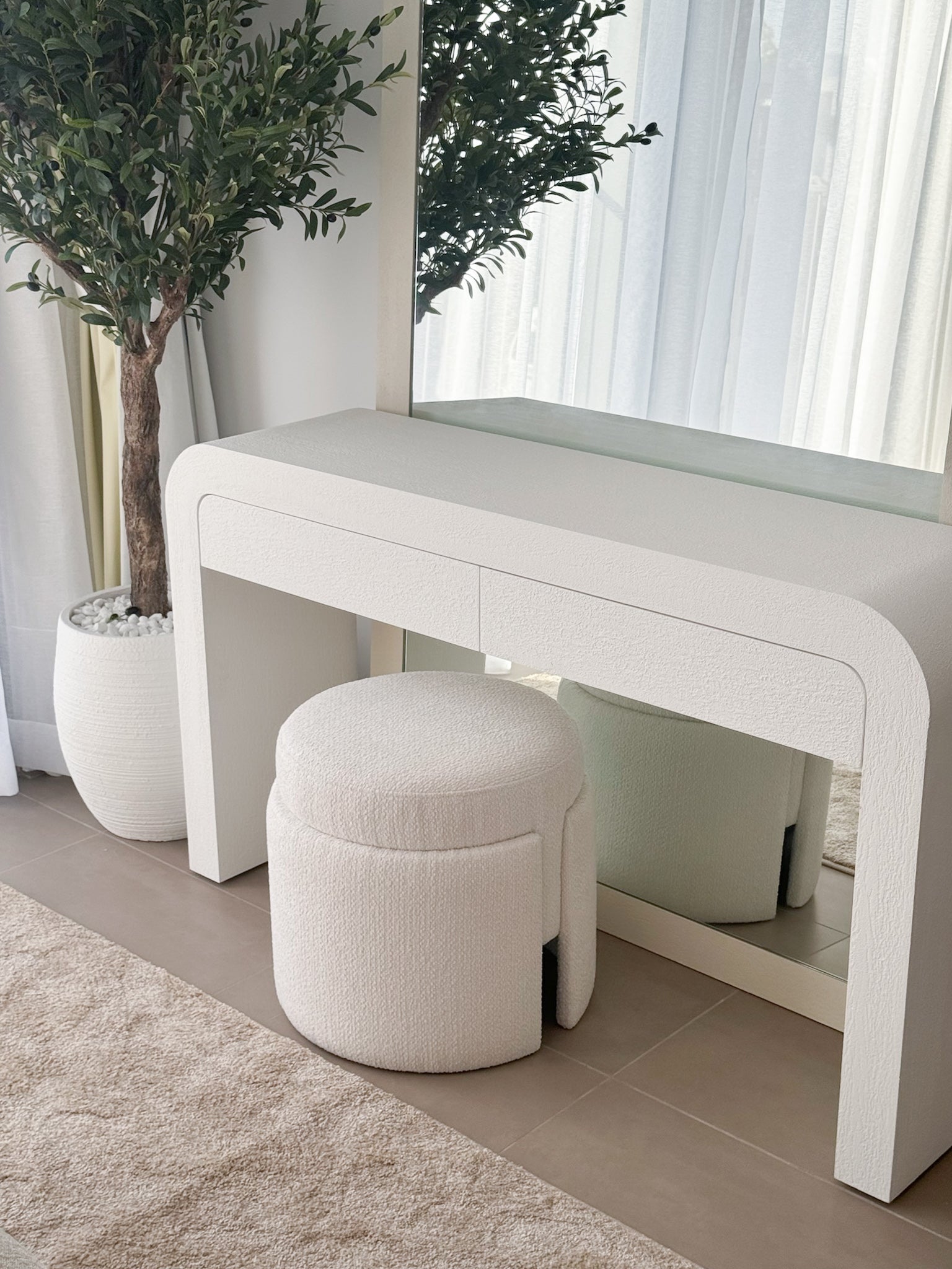 Add a touch of understated elegance to your space with our Cream Bouclé chair, the perfect blend of sophistication and practicality. Crafted from soft, luxurious bouclé fabric, this small chair offers both comfort and style, making it a versatile addition to any room. Its neutral cream hue effortlessly complements a range of interiors, while its compact size allows for easy placement in cozy corners or as an extra seating option. Whether used as a footrest, a stylish accent piece, or a functional table, this chair brings a refined, tactile quality to your décor, elevating your space with its timeless appeal.