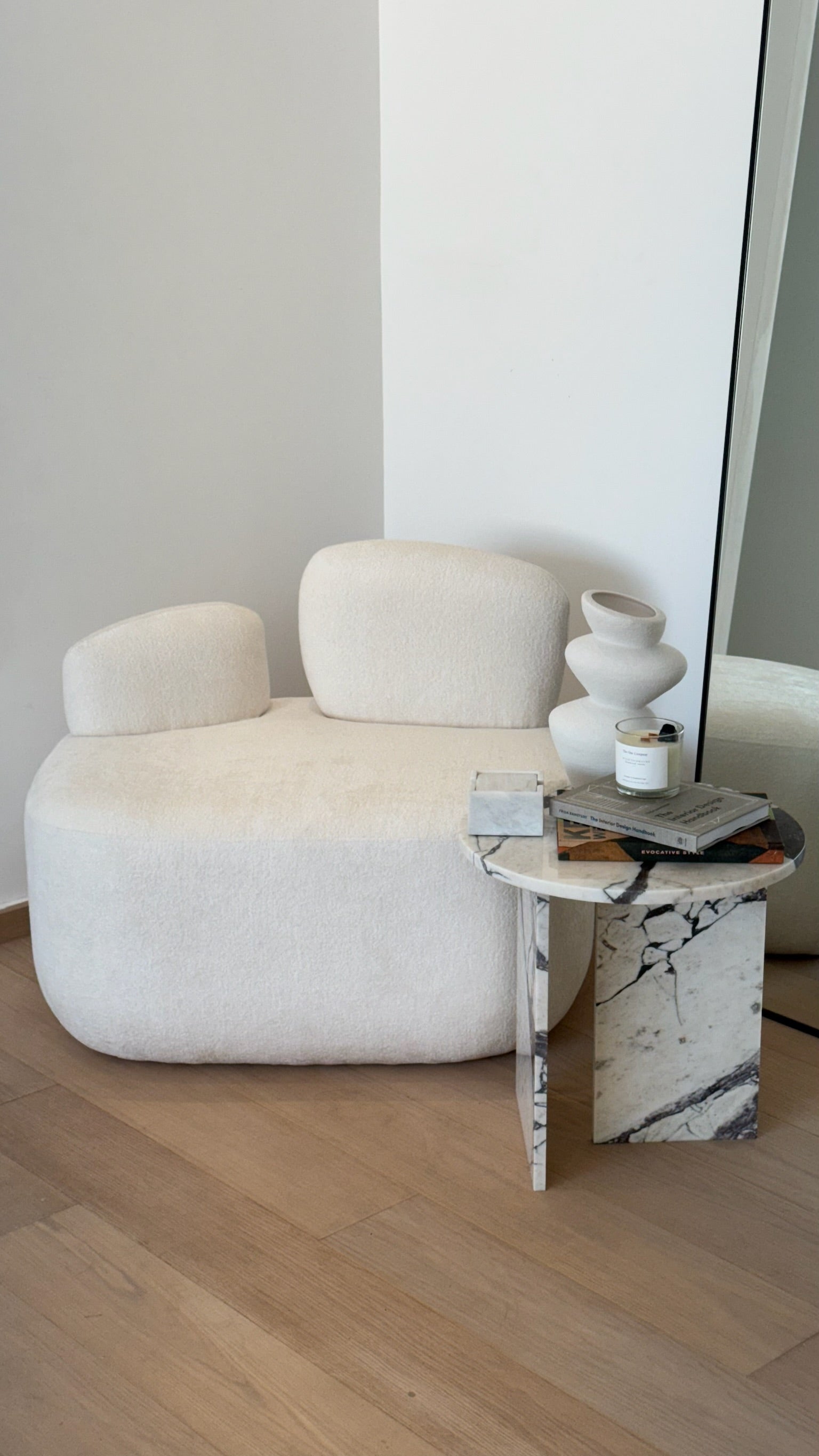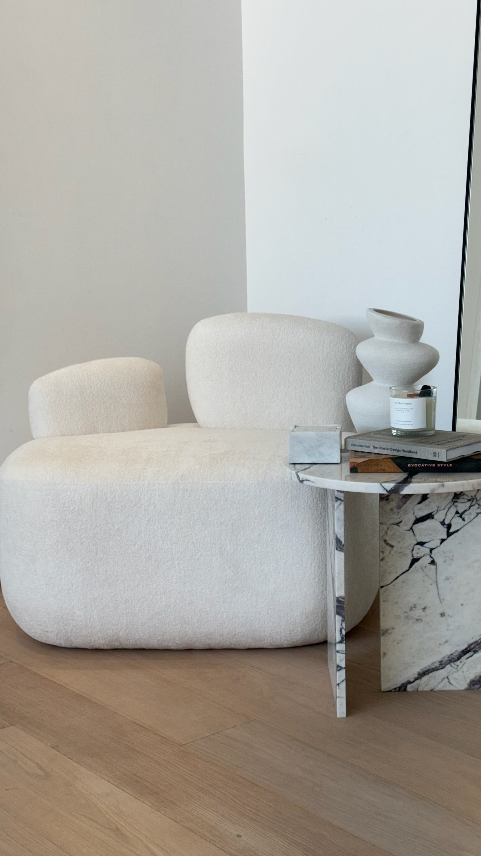 The Pebble Lounge Chair is a beautiful, modern chair with a minimalist design. It features a soft, textured fabric perfect for adding a touch of elegance to any living space. It includes a Pebble-like backrest--hence the name, and a cushioned seat for maximum comfort. The compact size makes it an ideal addition to smaller rooms or spaces where a cozy seating option is needed.