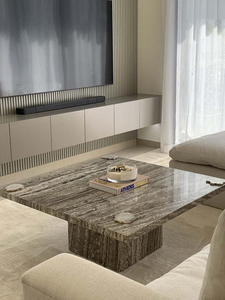 The Penelope Coffee Table, made from the finest Italian Travertine Marble in gorgeous silver and grey tones.