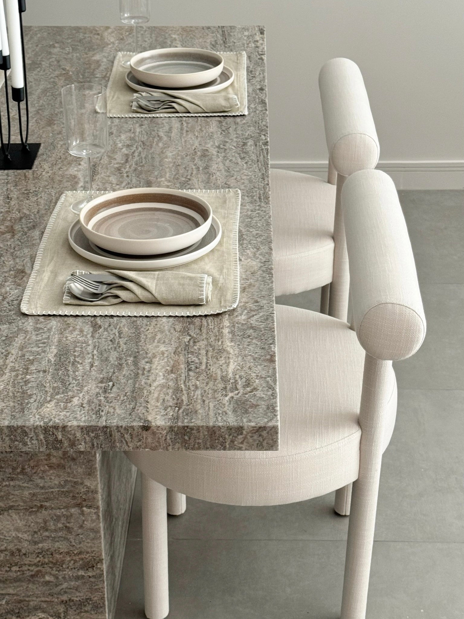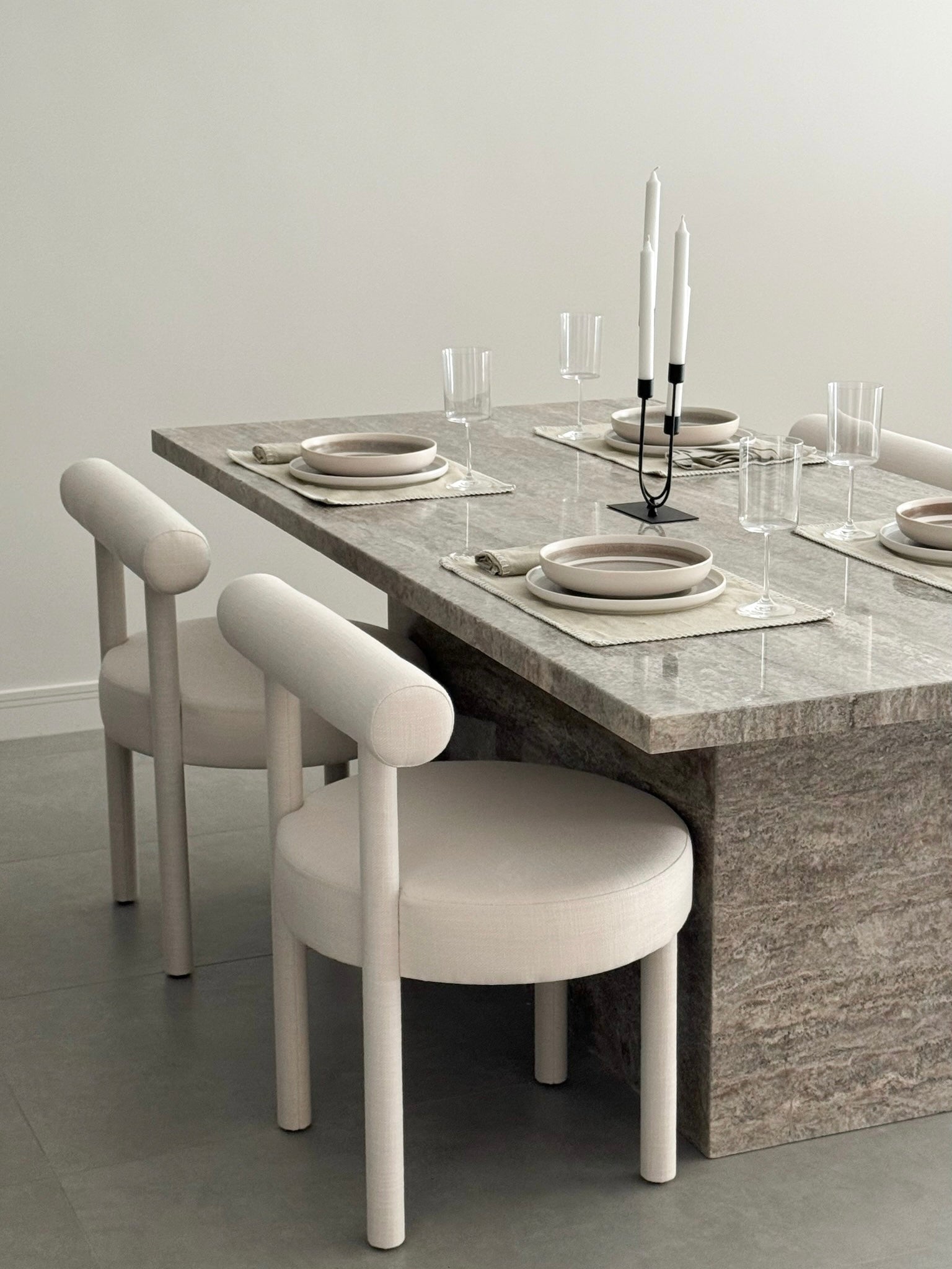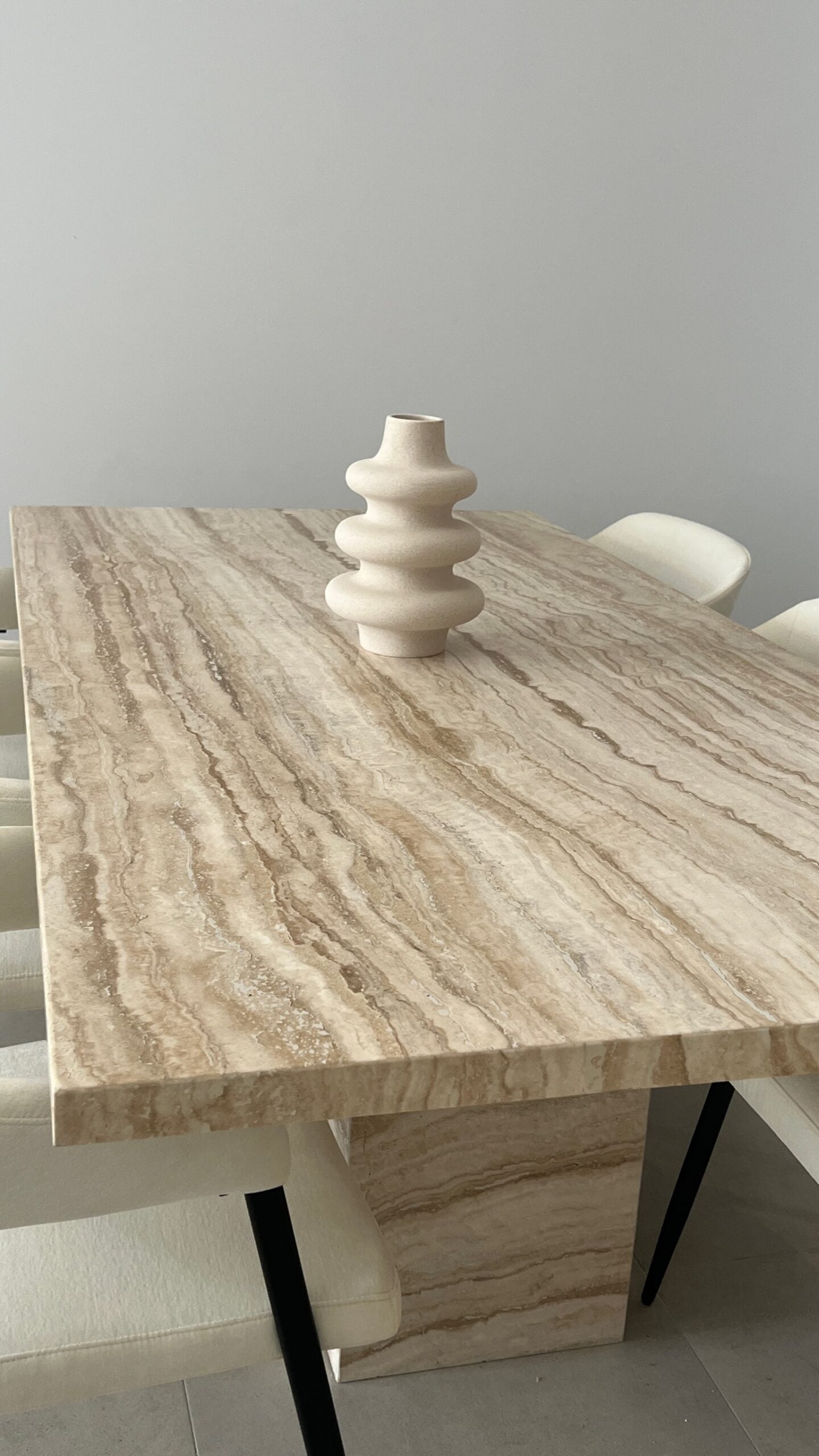 The Penelope Travertine Dining Table is a sophisticated piece that combines natural beauty with contemporary design, creating a perfect centerpiece for your dining space. Its clean lines and minimalist design, seamlessly integrates with various interior styles, from modern to classic. Crafted from high-quality travertine, known for its unique texture and natural color variations. This luxurious material adds a touch of sophistication and an inviting ambiance to your dining area.