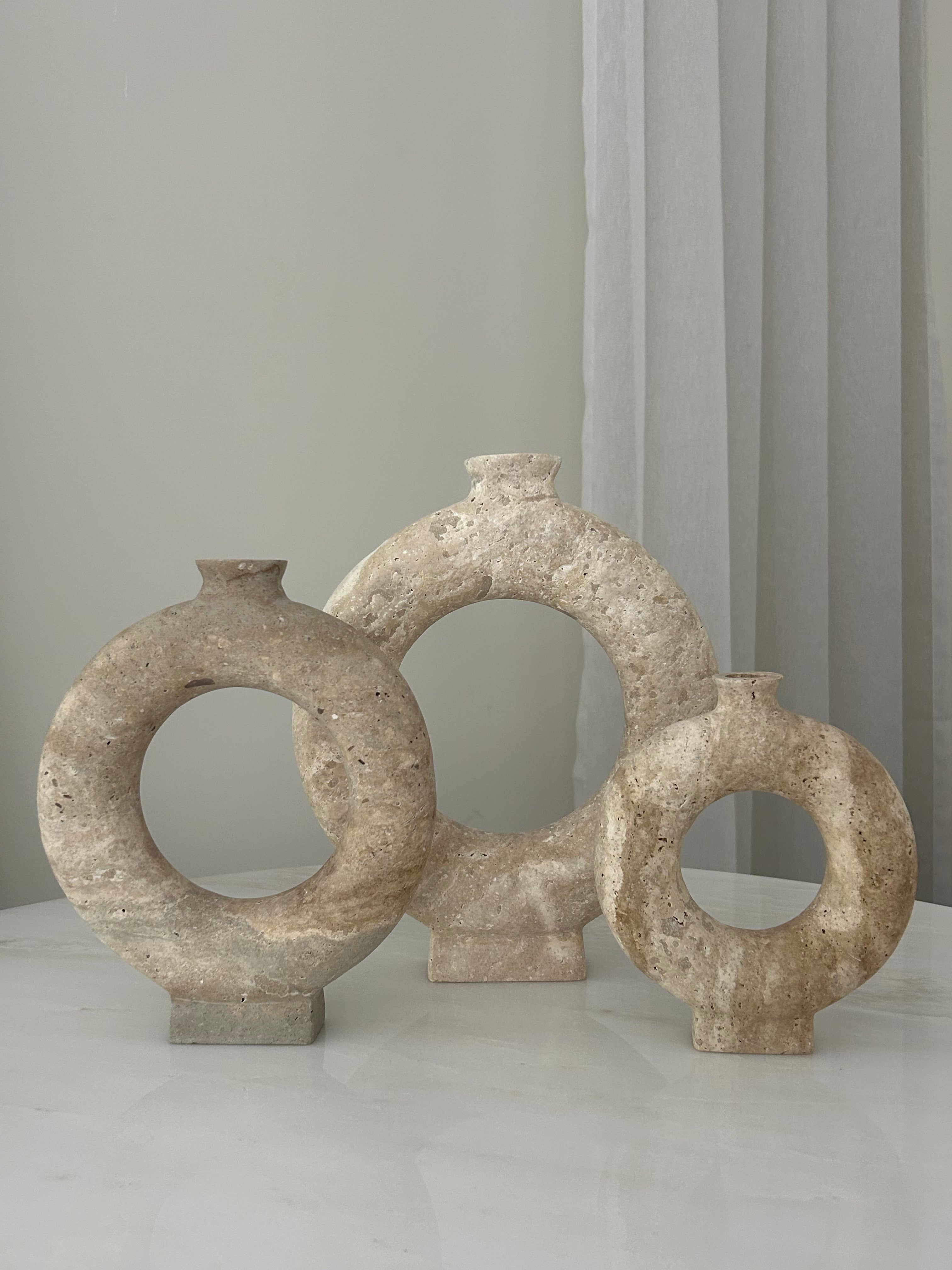 The Rae Beige Travertine Decor adds a touch of elegance and natural beauty to any space, known for its distinctive porous texture and earthy tones that makes it a perfect choice for home decor.