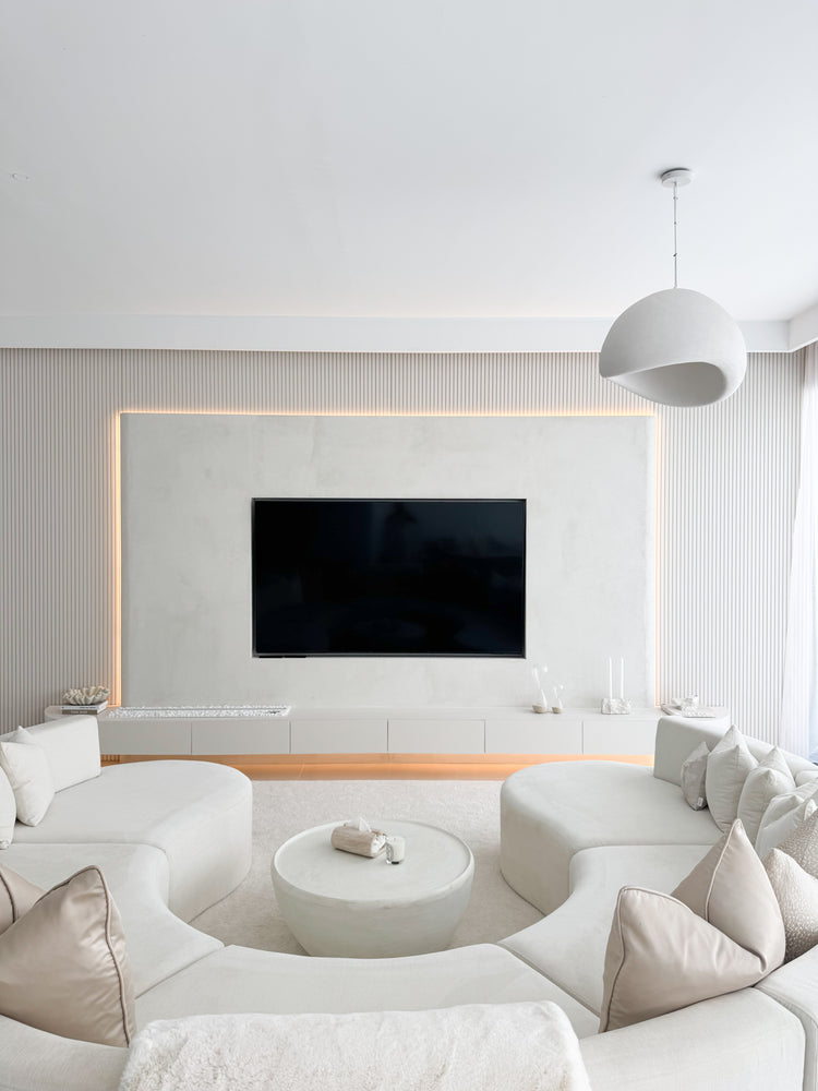 Riley Media Wall is a sculptural centerpiece designed for the discerning eye. Wrapped in soft, tonal textures and framed by ambient LED lighting, this sleek architectural installation seamlessly integrates technology with elevated interior design with optional fire place designs you can choose from. Its floating cabinetry offers discreet storage while maintaining a weightless silhouette, allowing your space to breathe in calm luxury.