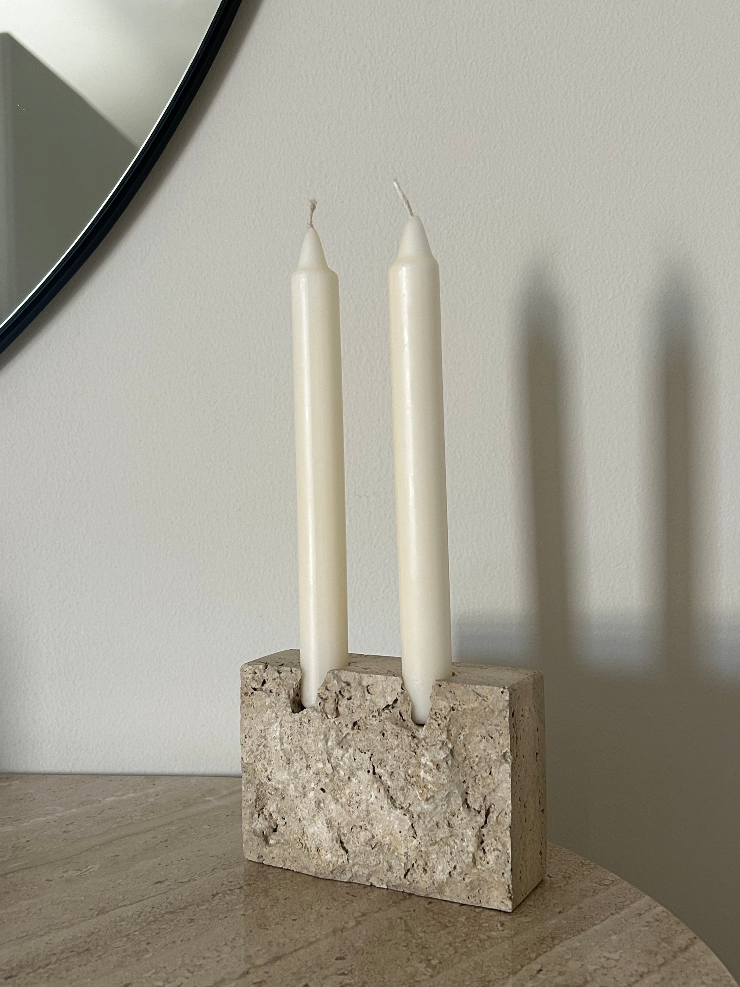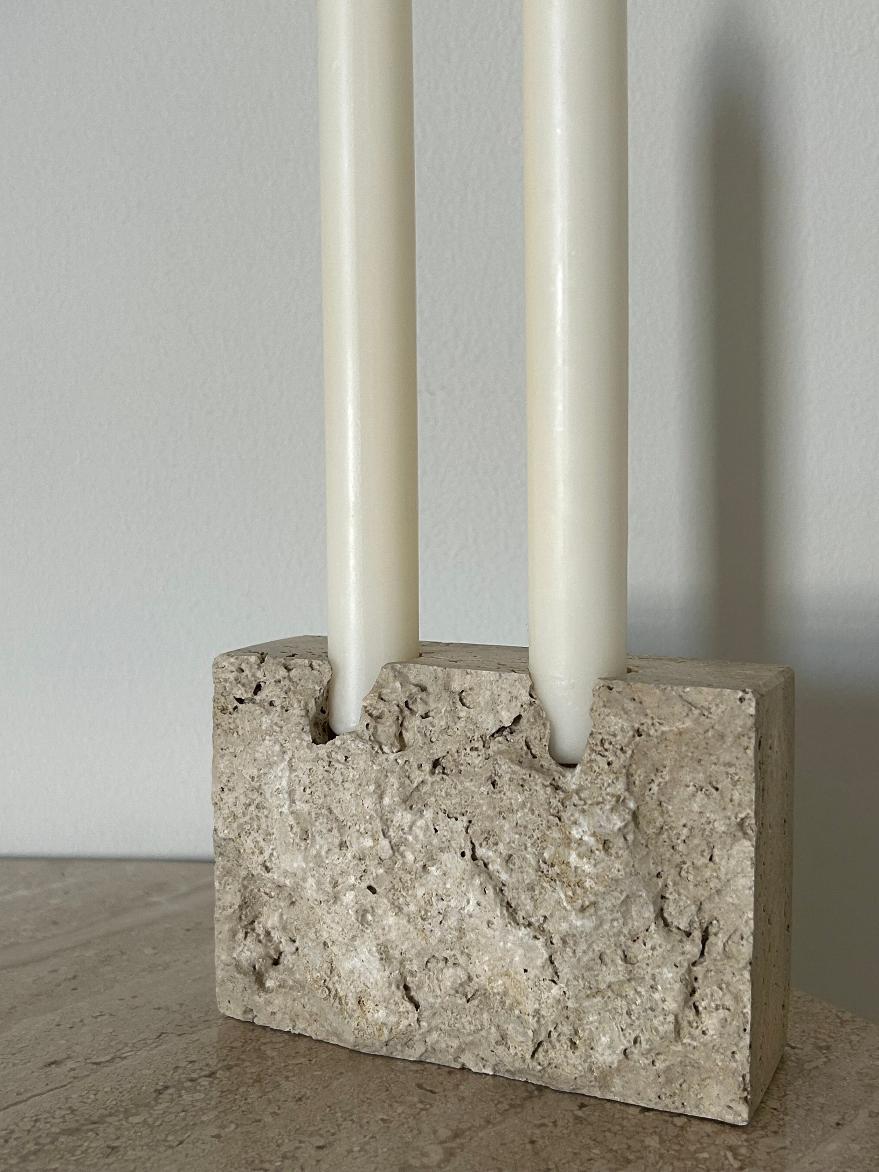 Bring the timeless beauty of natural stone into your home with our rustic travertine candle holder. This piece effortlessly combines a rustic charm with the elegance of travertine with its rugged, unfinished edges and natural imperfections enhancing the organic beauty of the stone making it a perfect addition to any decor style.