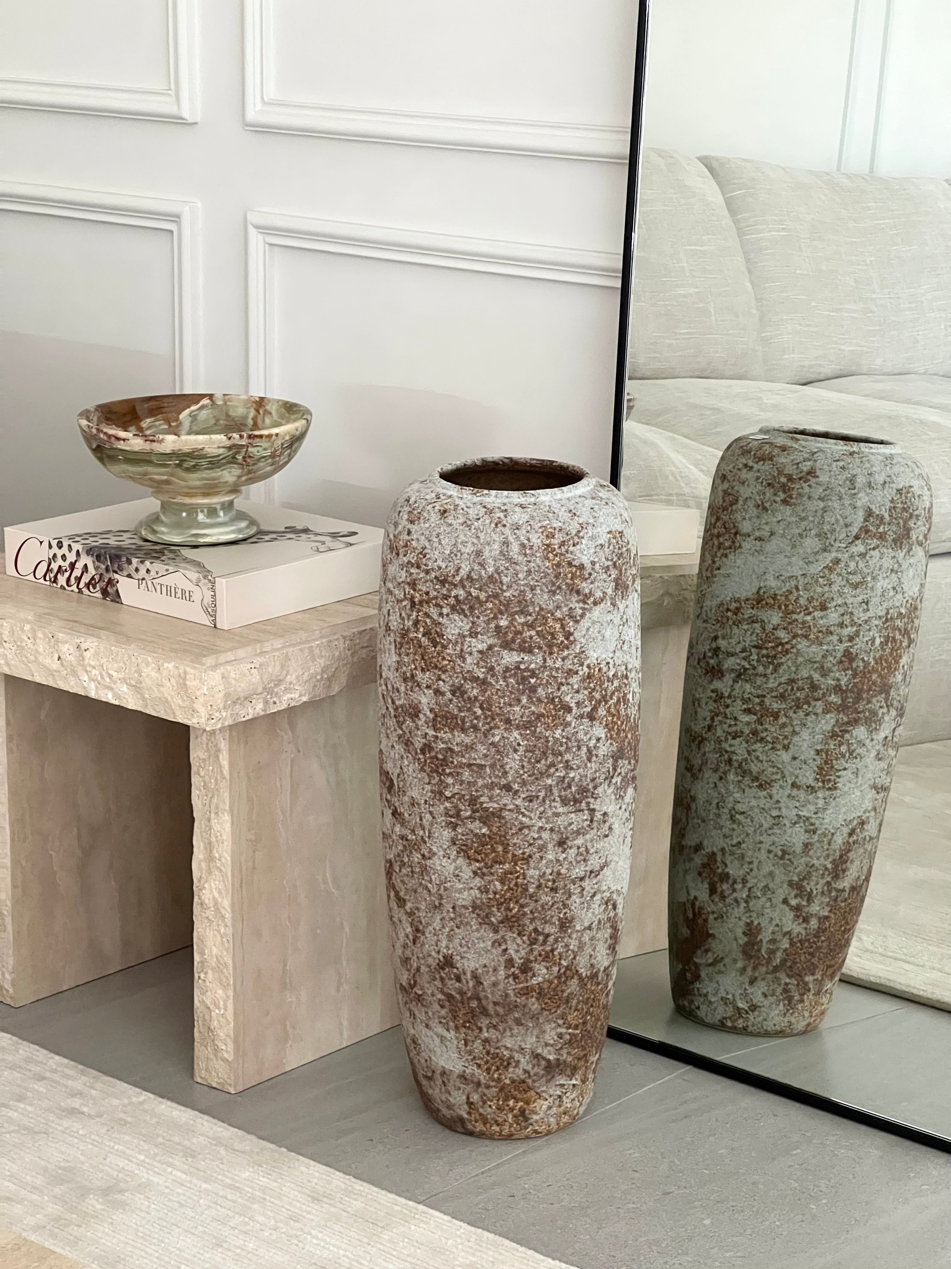 Introducing our Tall Textured Vase, a striking embodiment of rustic elegance and modern craftsmanship. Featuring a beautifully sculpted surface with rich earthy tones, this vase exudes natural charm and timeless appeal. The textured finish, with its organic, handcrafted quality, brings a sense of raw sophistication to any space. Its rustic allure is enhanced by the subtle variations in color and depth, creating a warm, inviting atmosphere wherever it’s placed. Perfect as a statement piece or a refined accent, this vase effortlessly blends earthy tones with luxurious design, adding an unmistakable touch of organic beauty and understated luxury to your home.