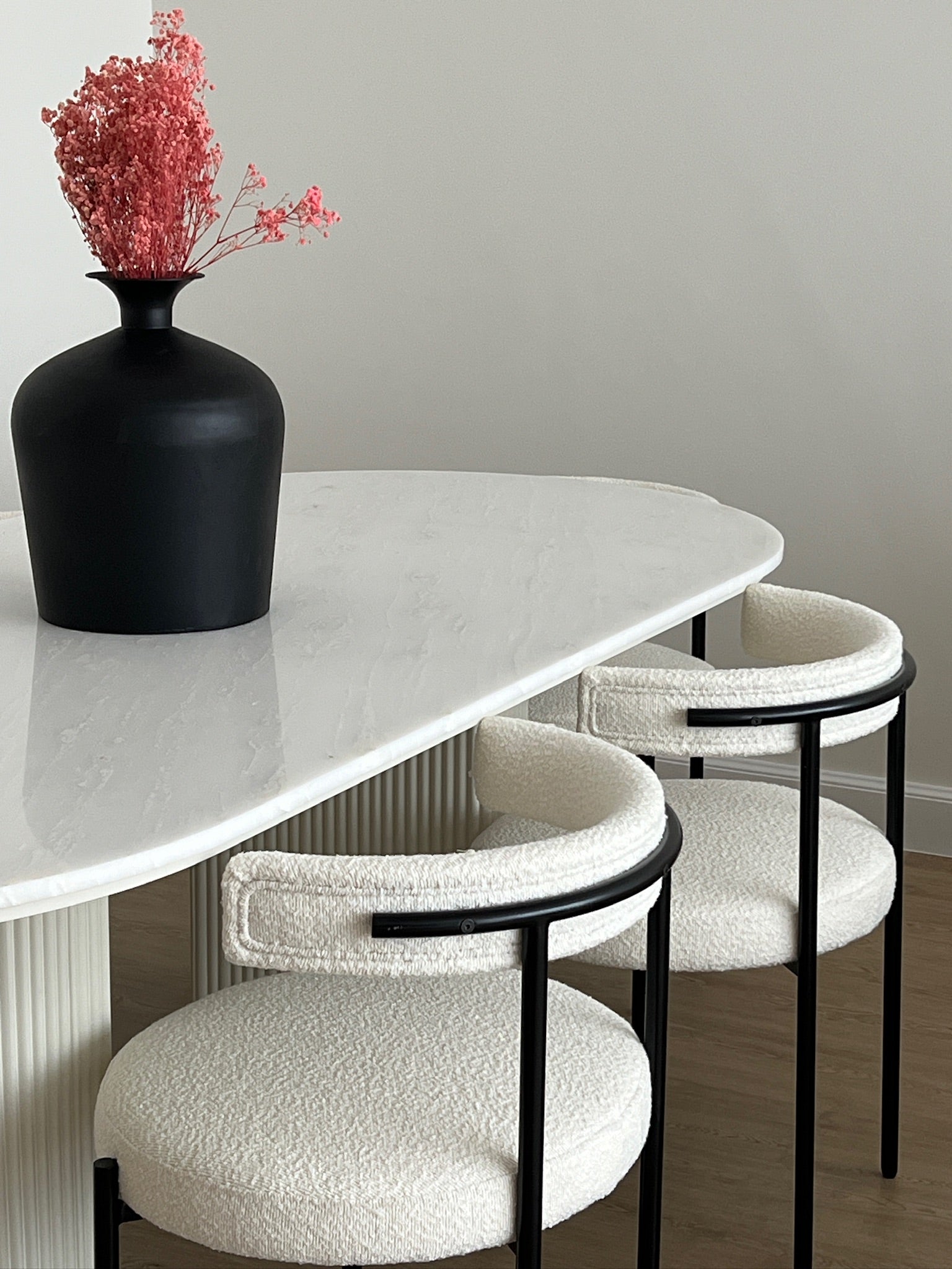 This gorgeous new design will enhance your dining area with its sleek finish. Adding texture and depth into your space with its beautiful natural white colour, this marble is the perfect addition to any home. This divine design features a wooden panelled base in a cool white colour to compliment the tones of this Jade white marble, this contemporary dining table creates a dreamy aesthetic to host your friends and family.