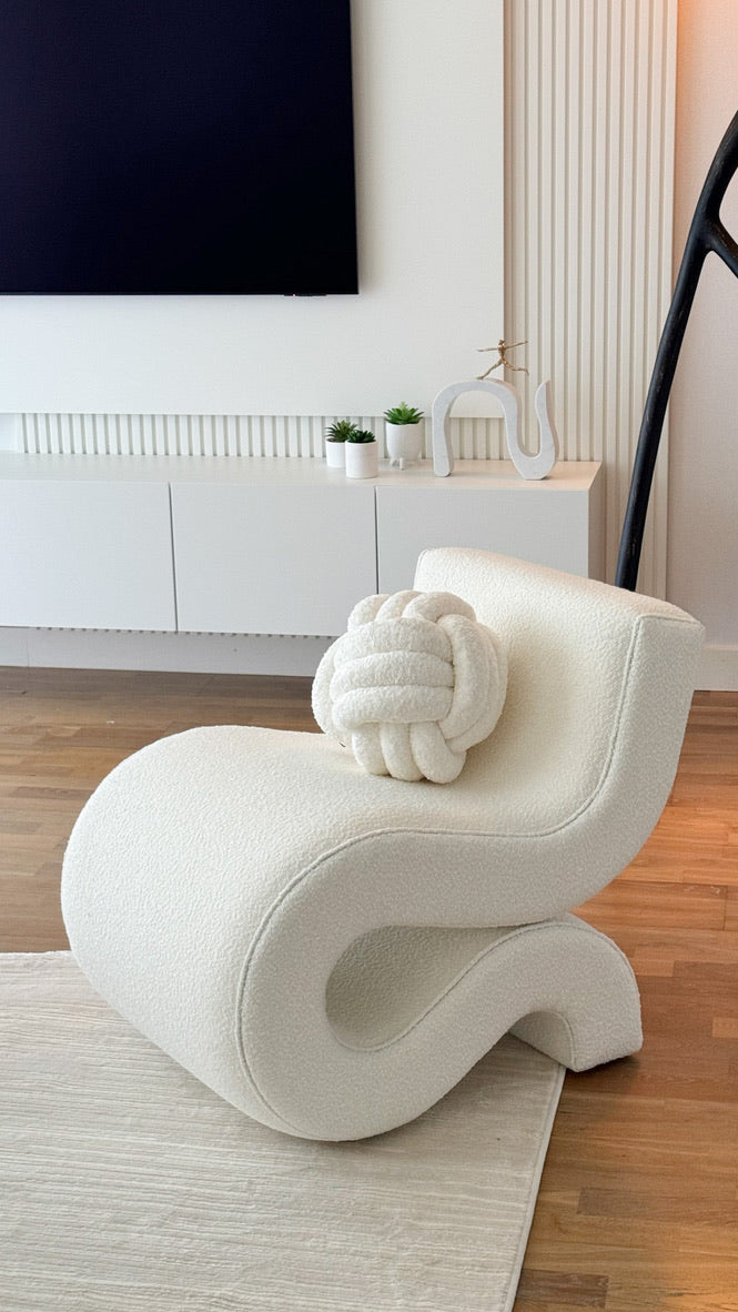 This modern look chair is made with solid wood and beautiful light cream boucle fabric for a chic and modern look.