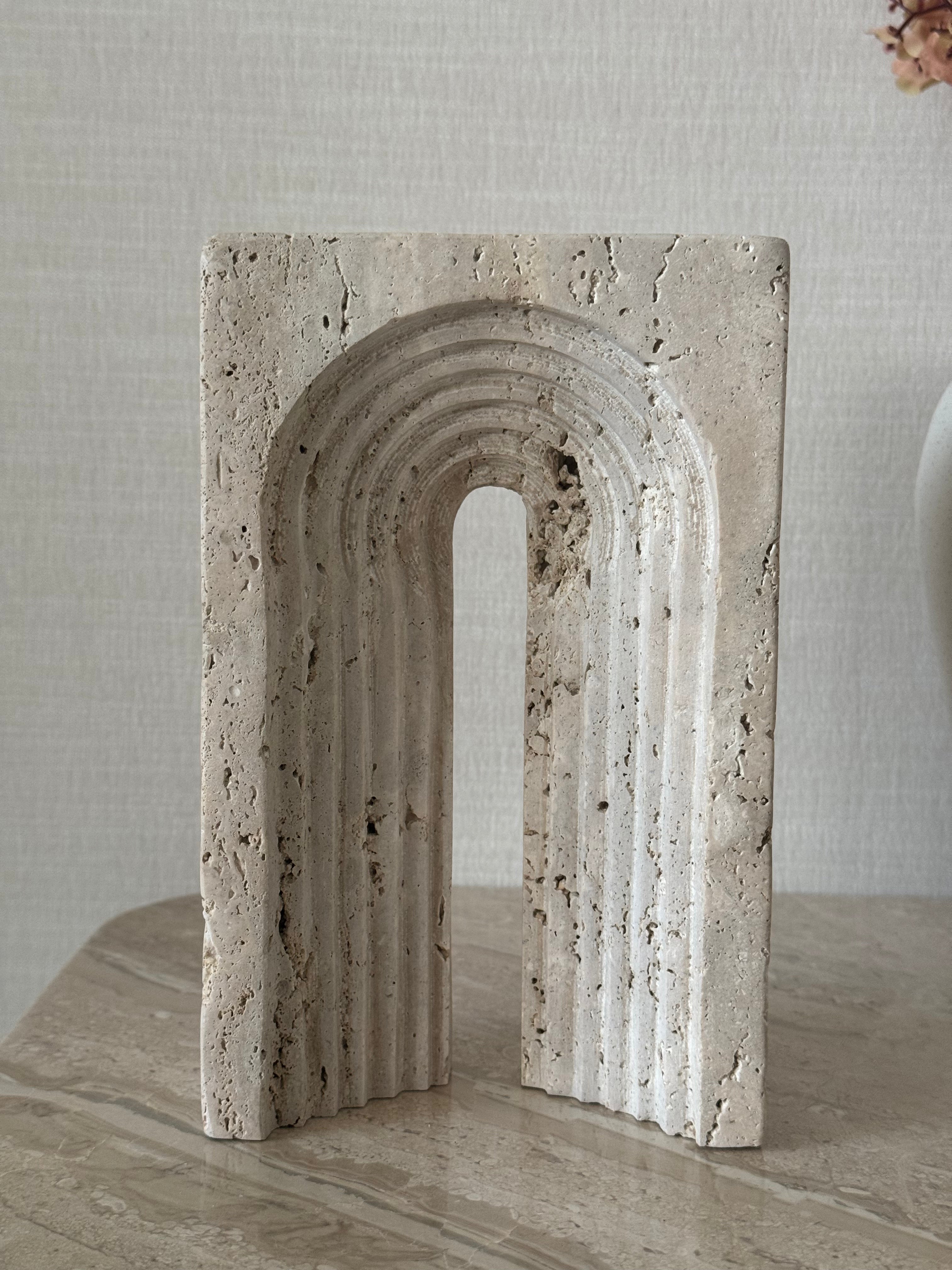 Add a touch of timeless luxury to your space with our travertine arched decor piece , a stunning work of art that blends natural beauty with expert craftsmanship. Crafted from premium travertine, this unique design features gracefully sculpted arched grooves that form a subtle rainbow pattern. The warm, creamy tones of the stone and the delicate curvature of the arches add both elegance and movement to any room, making it a perfect focal point for contemporary, modern, or classic interiors.