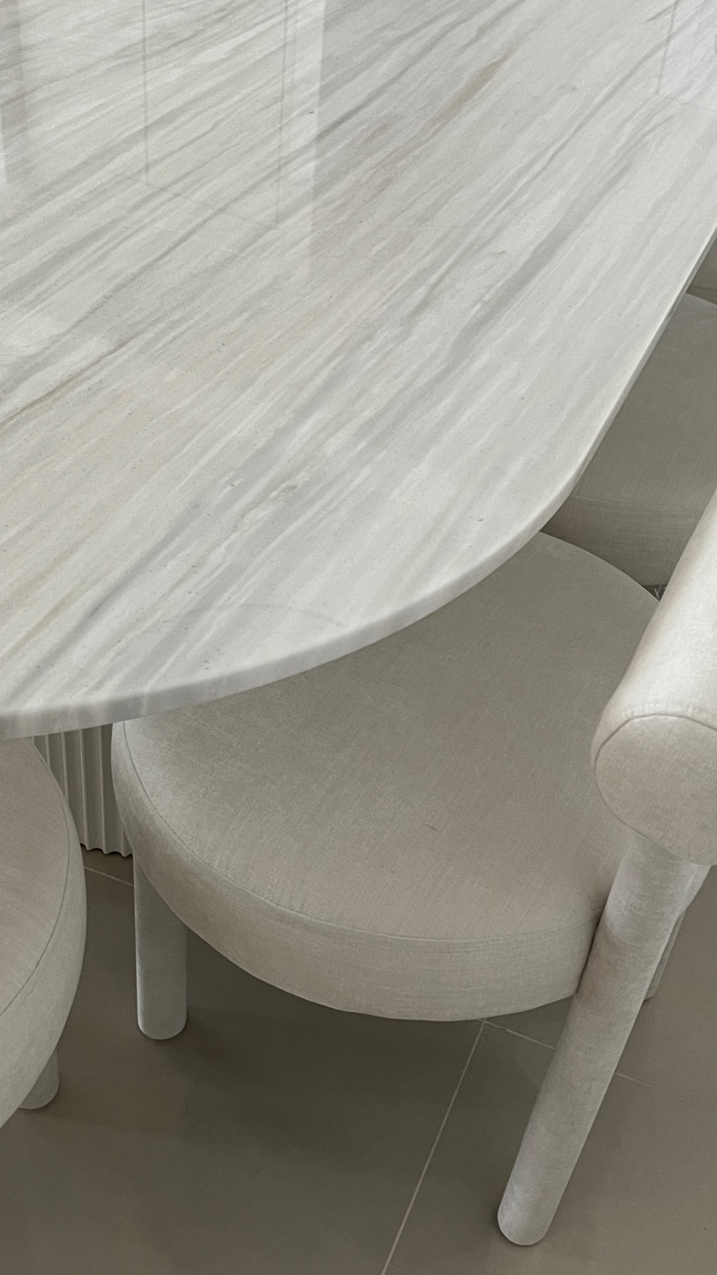 Introducing our Thalia Nesto Marble Dining Table. A beautiful oval design with inverted panel round legs, this simple yet unique design is sure to enhance your home. This gorgeous nesto marble provides a luxury look, with the most stunning grey tones.
