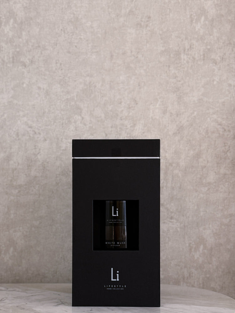Our 2500ml White Musk reed diffuser features a muted, grey glass bottle on a sleek black wooden tray. Hand-poured and finished with a polished silver cap, it blends Tuberose, Fig, Lily, Jasmine, Pear, and Musk for a fresh, lasting fragrance. Packaged in a luxurious gift box with a white accent band, it’s the perfect, elegant addition to any home and lasts over 12 months.