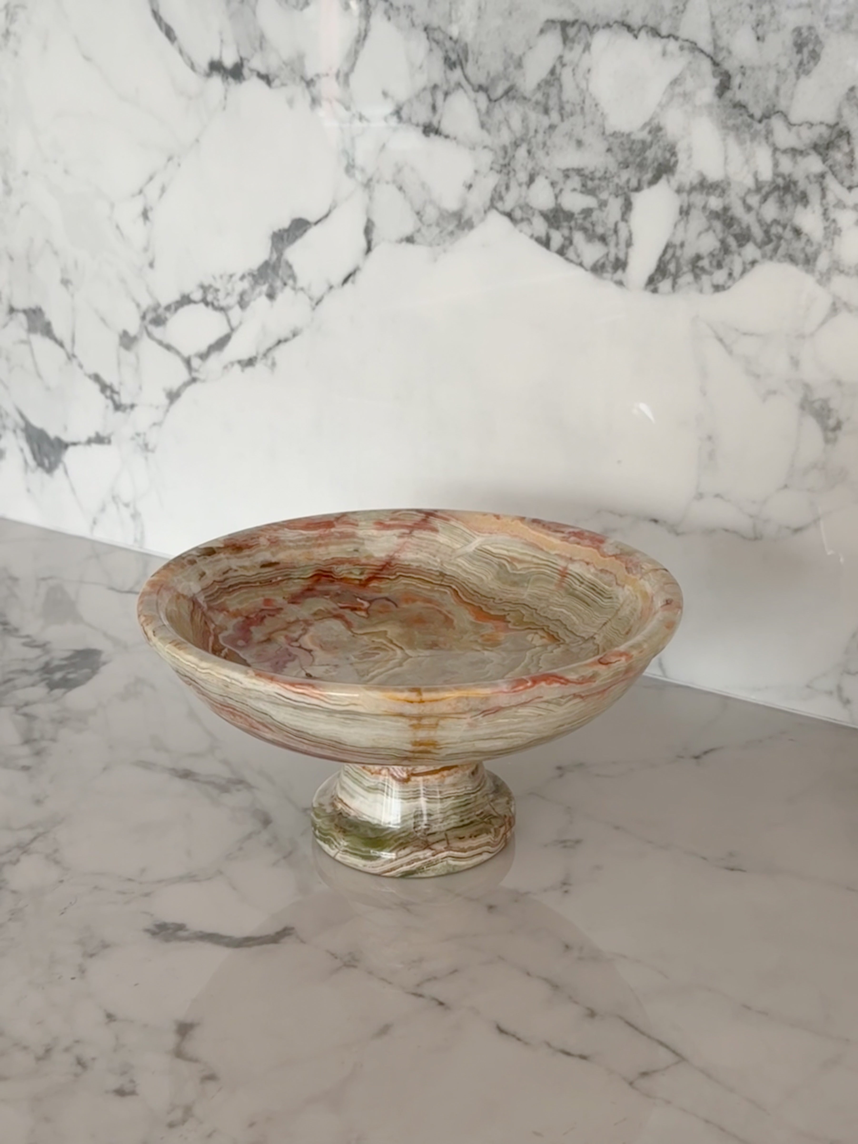 A luxurious addition to your home decor Lee Jade Green Onyx Fruit Bowl seamlessly combines elegance with functionality. Crafted from premium green onyx, this bowl features subtle green marble veins, creating a harmonious blend of colors that enhance its natural beauty.