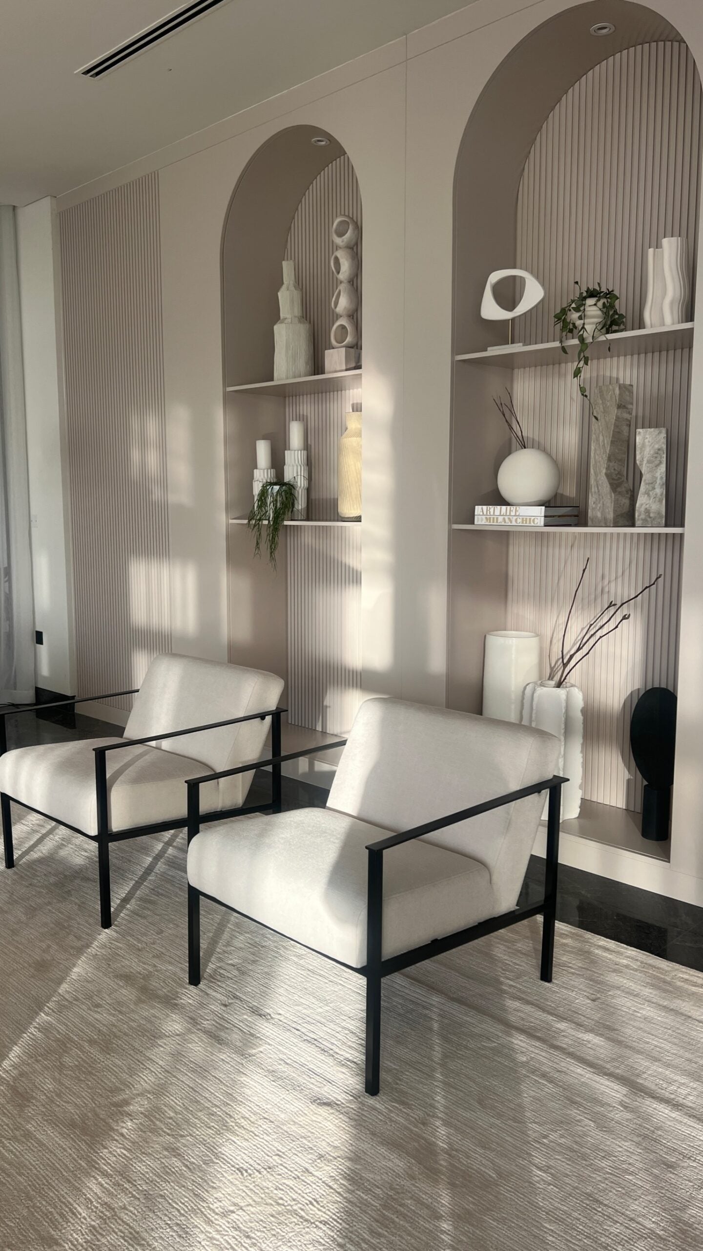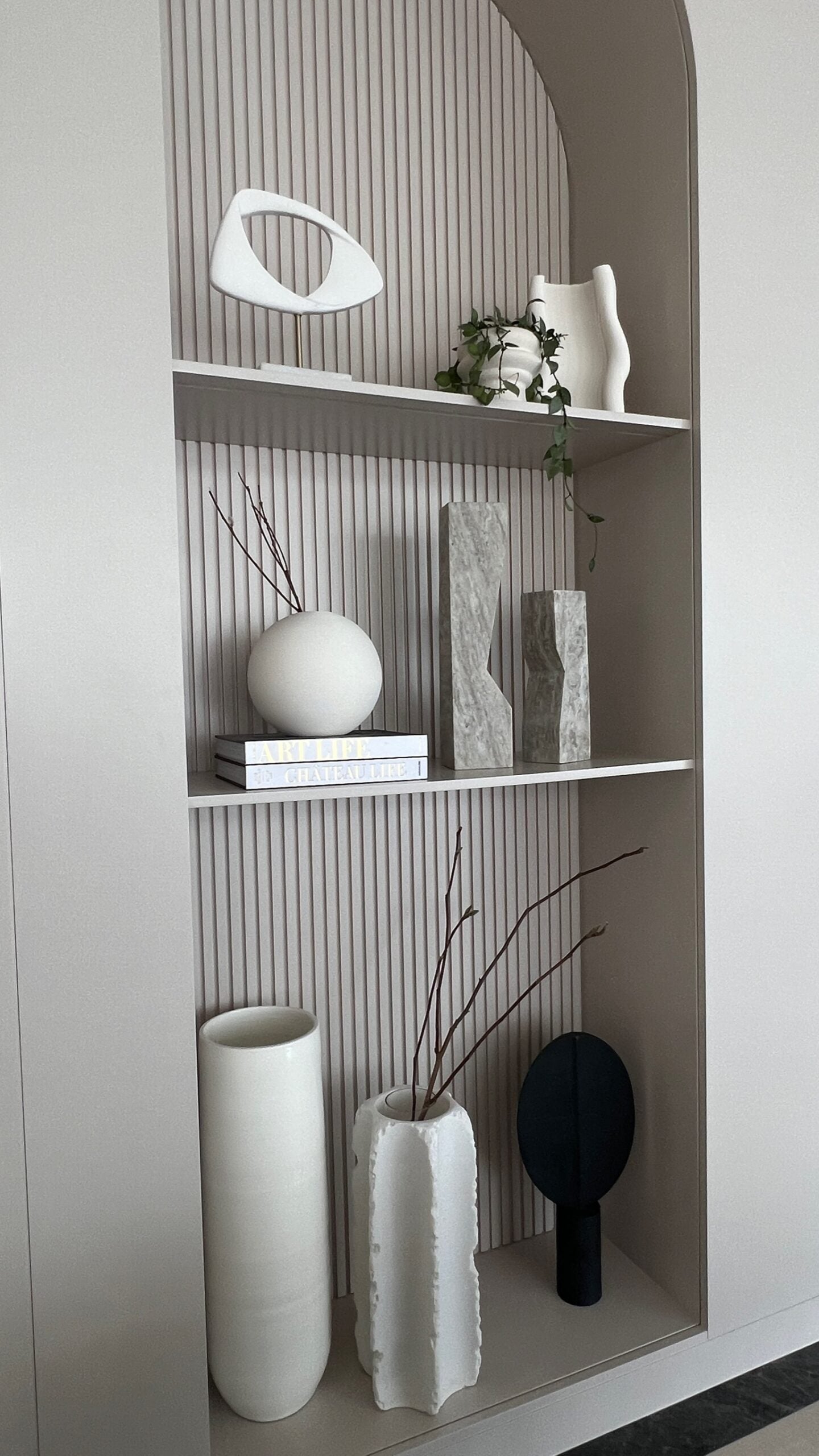 Prices start at 15,000 AED for our Wren Arch Shelving Wall.